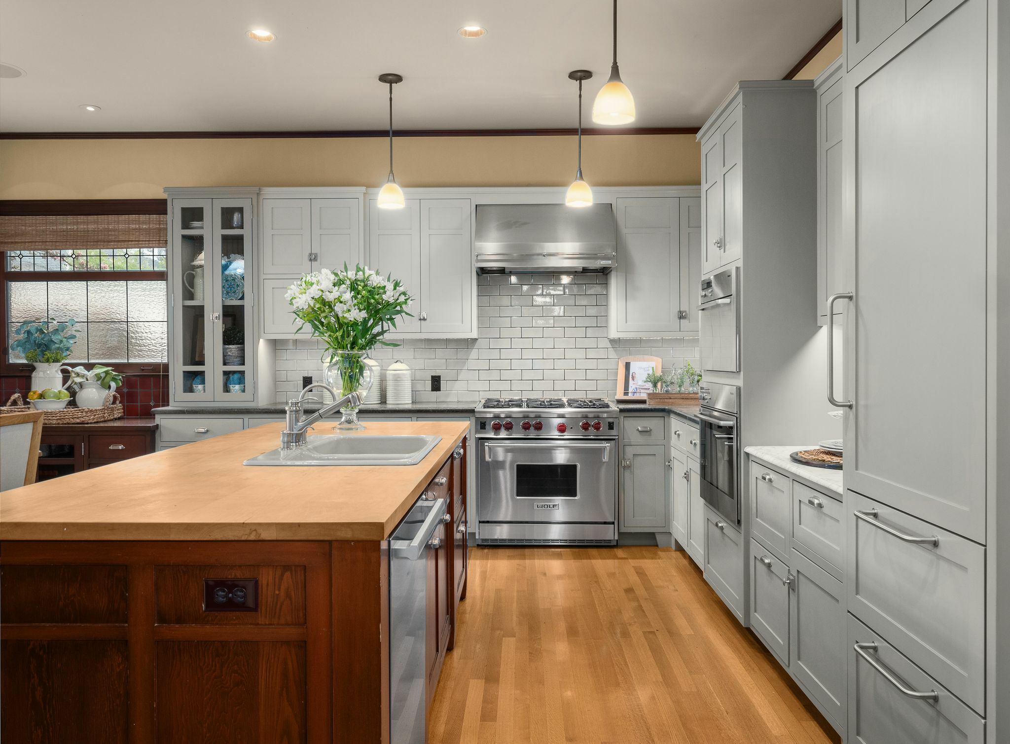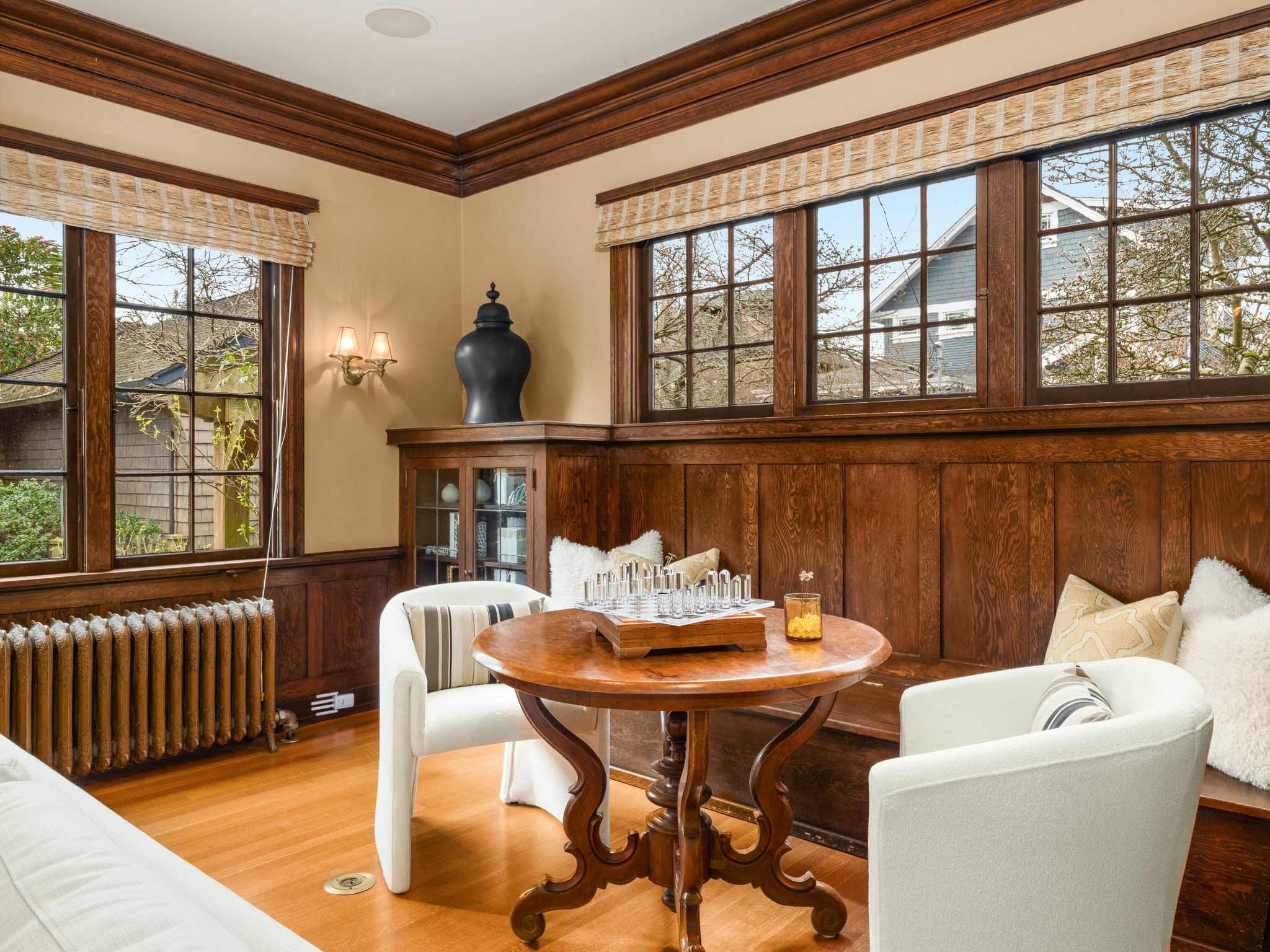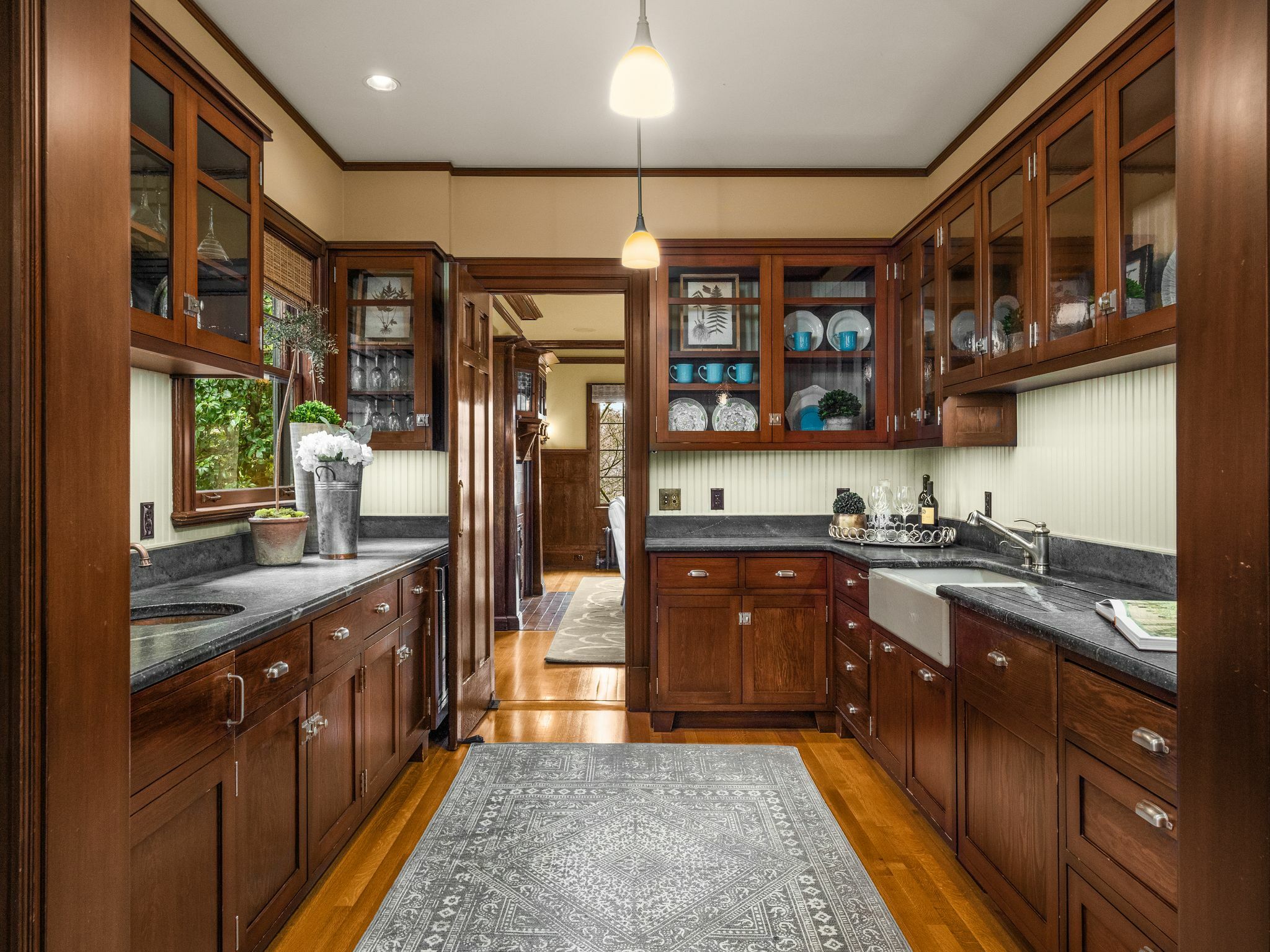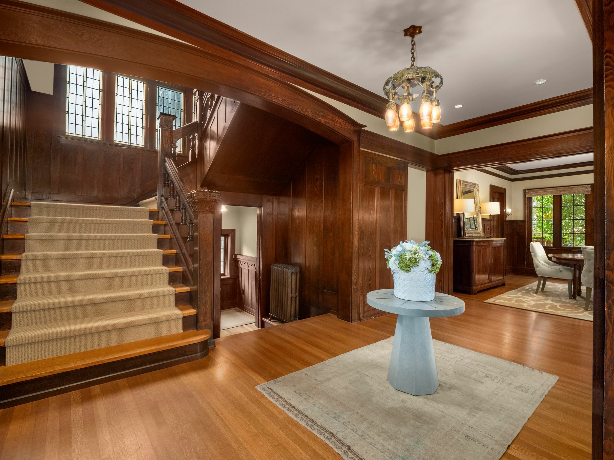 Exceptional 1909 craftsman home is a rare blend of exquisite period detail and modern convenience. Excellently preserved, this architecturally significant home proudly sits on a double lot above the street affording privacy, abundant natural light and views of Lake Washington and the Cascades. Built for a timber baron by Schack & Huntington, the house extols quality, with original wood paneling, hardwood floors, Quezal Art glass chandeliers, large windows and amenities that assure a comfortable lifestyle. Re-wired and re-plumbed in 2002. 2 car garage with 2 Tesla chargers and a 3rd parking spot. Beautiful and abundant gardens and private spaces. Excellent floorplan and grand original details, this classic home has stood the test of time!
