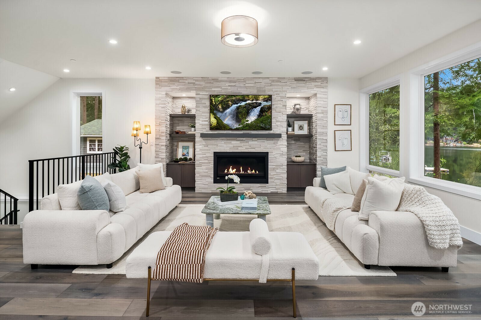 Gorgeous Ames Lake custom-built masterpiece featuring 100 feet of pristine no-bank waterfront set on large, private, flat lot. Surrounded in windows to take in the views. Great room flows to the chef’s dream kitchen with high-end appliances and walk-in pantry. Spacious covered deck for year-round enjoyment of the lake. Den/office just off the great room. Upper level features a stunning primary suite with spa bath all situated to take in the views, and two luxurious junior suites. Lower-level has a guest suite or 2nd office, full bath and bonus room that flows outside for ideal lakeside entertaining or just relaxing. Paddleboarding, fishing, boating are your backyard activities. A serene escape that is just minutes from Redmond & Bellevue.