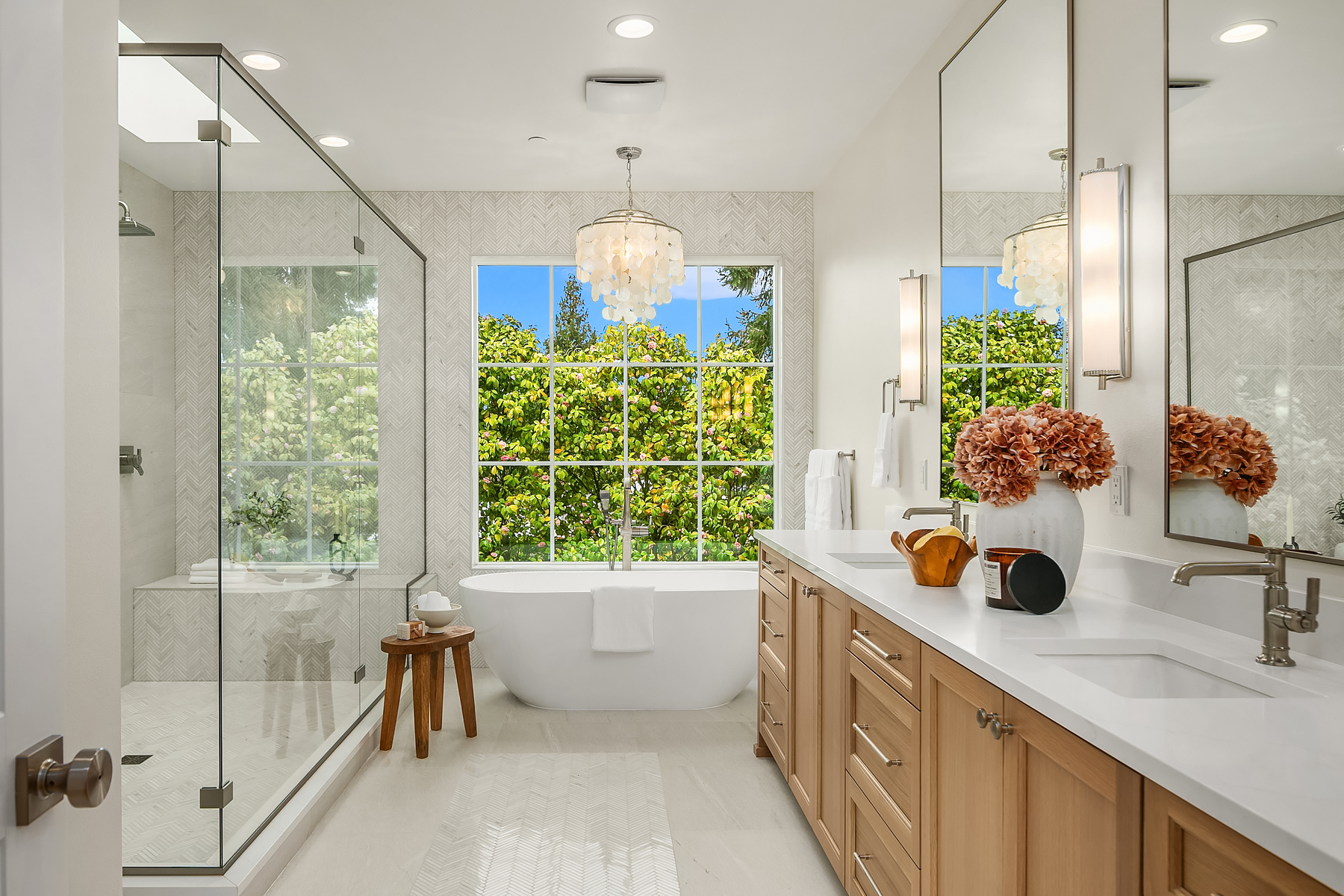 Enfort Homes presents, ‘The Everly’ a newly completed Cape Cod-inspired home envisioned by McCullough Architects. Situated on a sprawling 14,000+ sf lot in the coveted Houghton neighborhood, this residence offers abundant upgrades and voluminous sun-drenched interiors adorned with designer touches. An ideal layout including main floor en-suite + office, 4 beds upstairs plus gym and bonus room with kitchenette. Luxuriate in the well-appointed primary suite featuring five-piece spa bath with heated floors and a huge walk-in-closet with custom organizers. Gatherings extend to covered outdoor living room outfitted with 4 infrared heaters, gas fireplace, built-in speakers and private fully-fenced yard. Oversized 4-car garage, A/C, solar and more