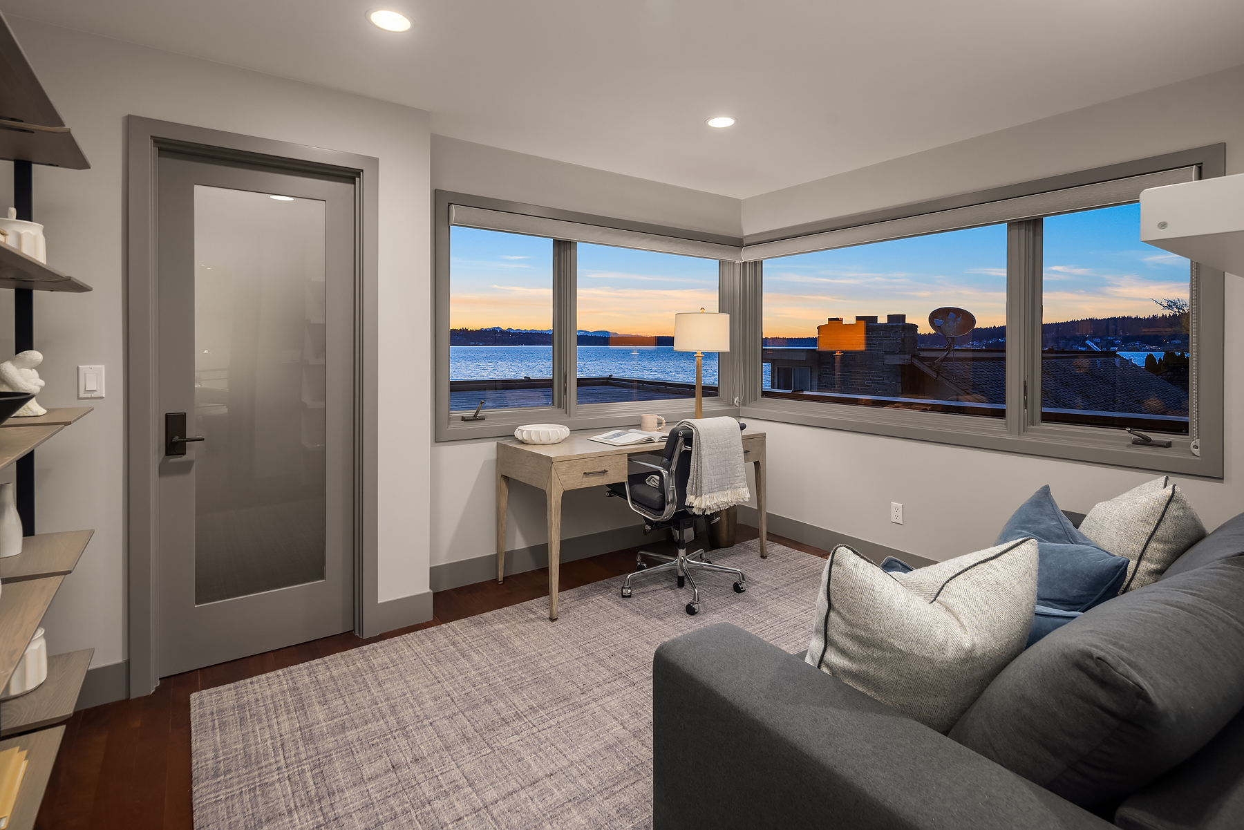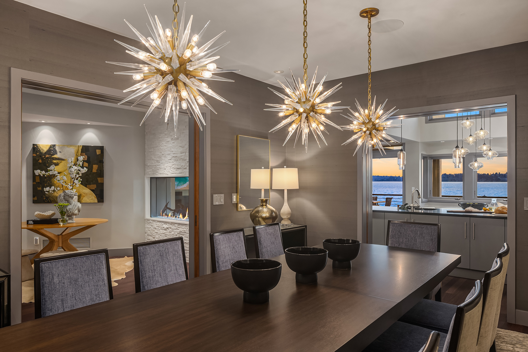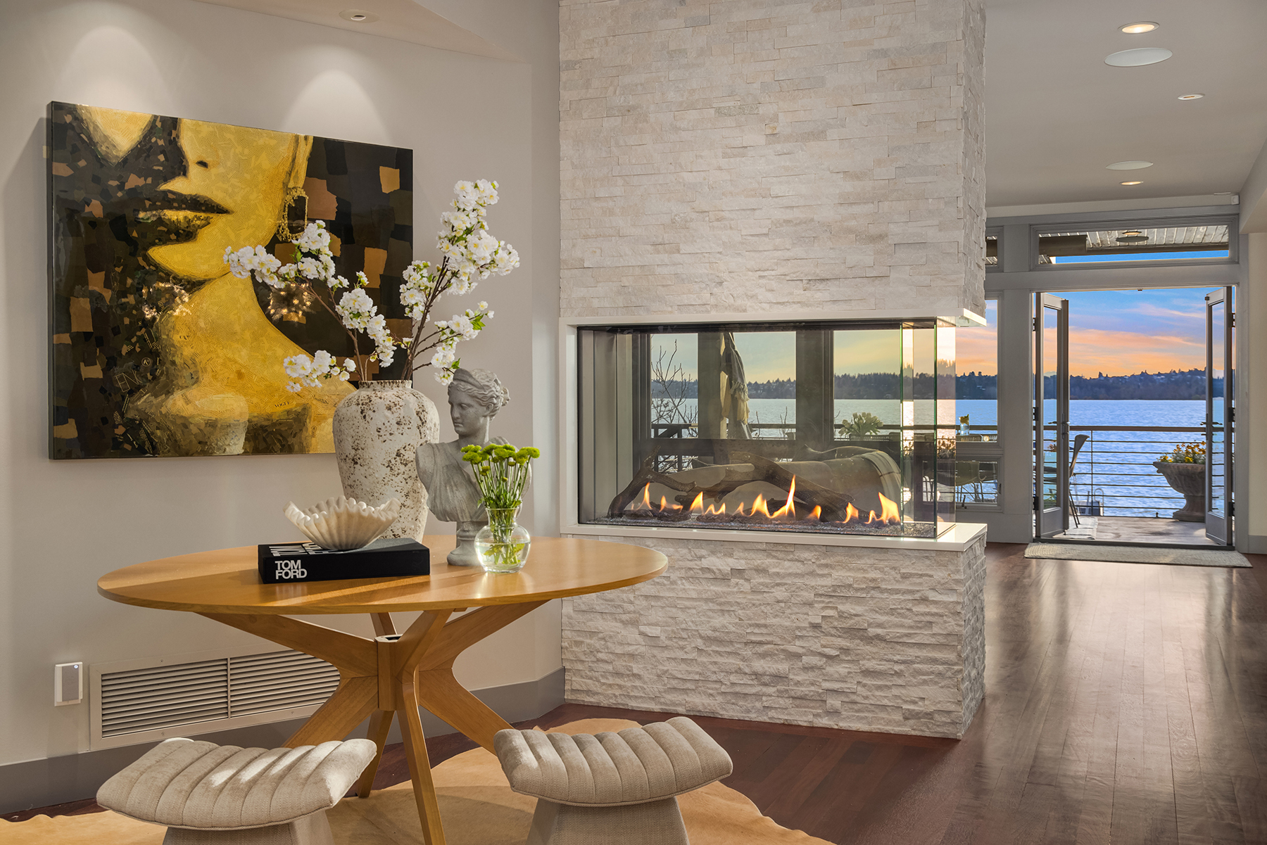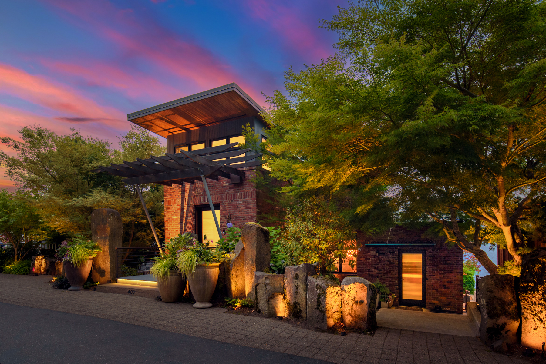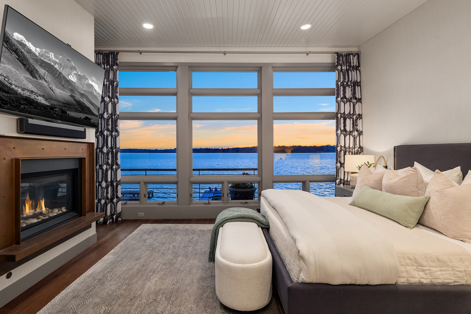 Lakeside serenity & modern sophistication! Designed by Thielsen Architects, this Lake WA wtf estate, off West of Market’s gold coast, is a NW industrial modern hm w/views of Seattle, Olympic Mtns & Lake WA. 6550 SF built w/concrete & structural steel. The 5539 SF main home incls open-concept living, 4 BR 3.5 BA, a chef’s kitchen w/caterer’s wing, primary suite & spa-like BA, rec room, guest suite & kitchenette, multiple view decks & int/ext entertaining areas, incl lakeside patio w/pizza oven - perfect for summer gatherings! Det 2 BR 2 BA, 1011 SF guest home w/cathedral ceilings, wall of windows & rooftop deck. A 4-car garage, new dock & priv upper garden w/fruit trees & raised beds all of which make this an unparalleled waterfront retreat.