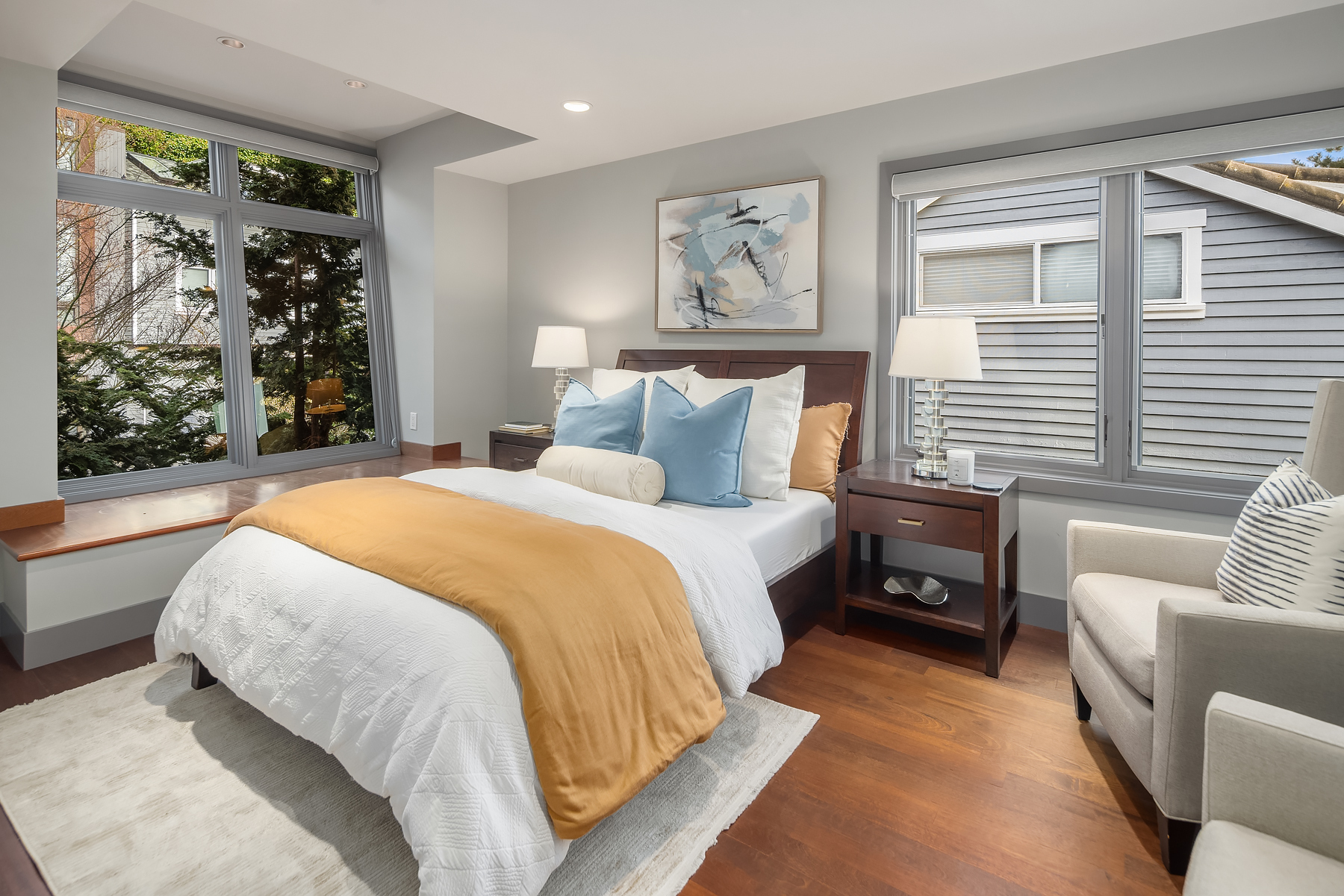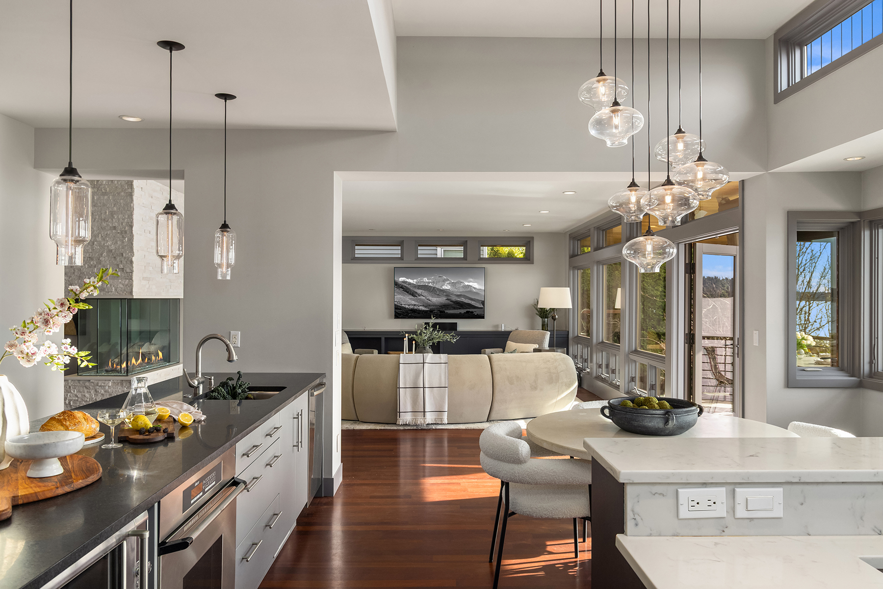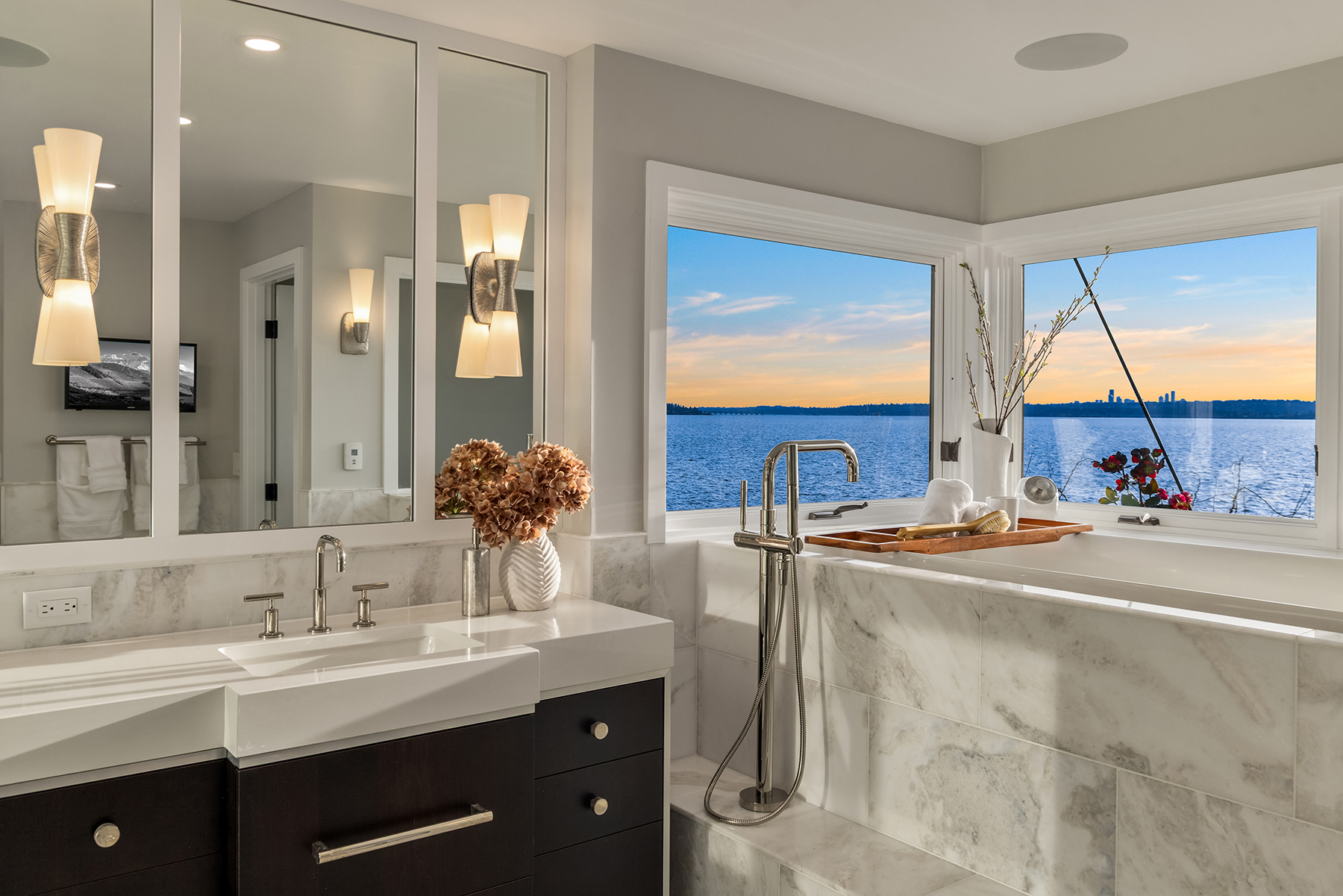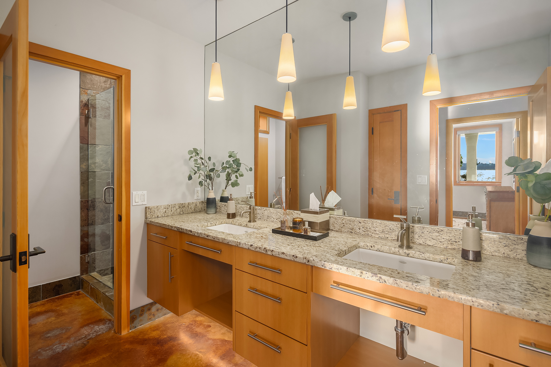 Lakeside serenity & modern sophistication! Designed by Thielsen Architects, this Lake WA wtf estate, off West of Market’s gold coast, is a NW industrial modern hm w/views of Seattle, Olympic Mtns & Lake WA. 6550 SF built w/concrete & structural steel. The 5539 SF main home incls open-concept living, 4 BR 3.5 BA, a chef’s kitchen w/caterer’s wing, primary suite & spa-like BA, rec room, guest suite & kitchenette, multiple view decks & int/ext entertaining areas, incl lakeside patio w/pizza oven - perfect for summer gatherings! Det 2 BR 2 BA, 1011 SF guest home w/cathedral ceilings, wall of windows & rooftop deck. A 4-car garage, new dock & priv upper garden w/fruit trees & raised beds all of which make this an unparalleled waterfront retreat.