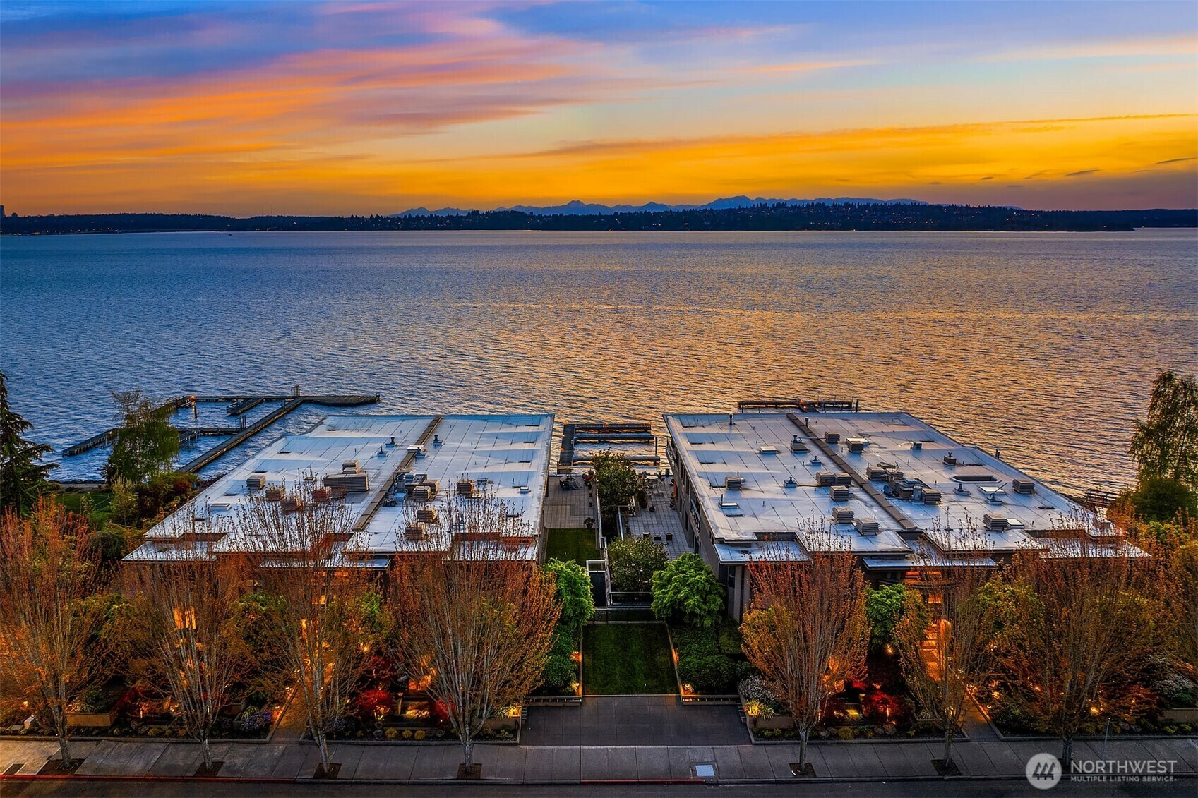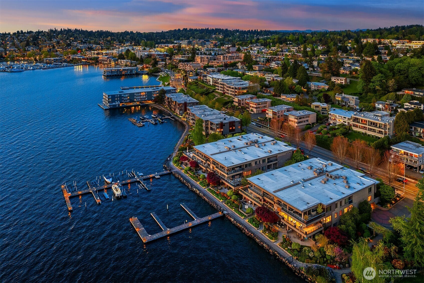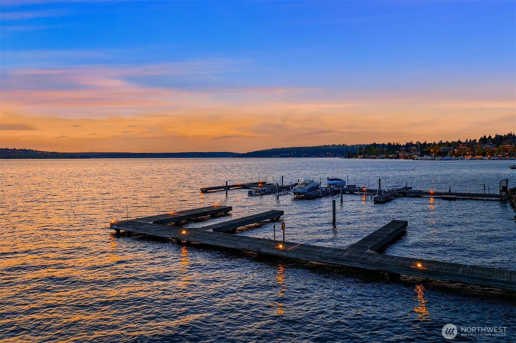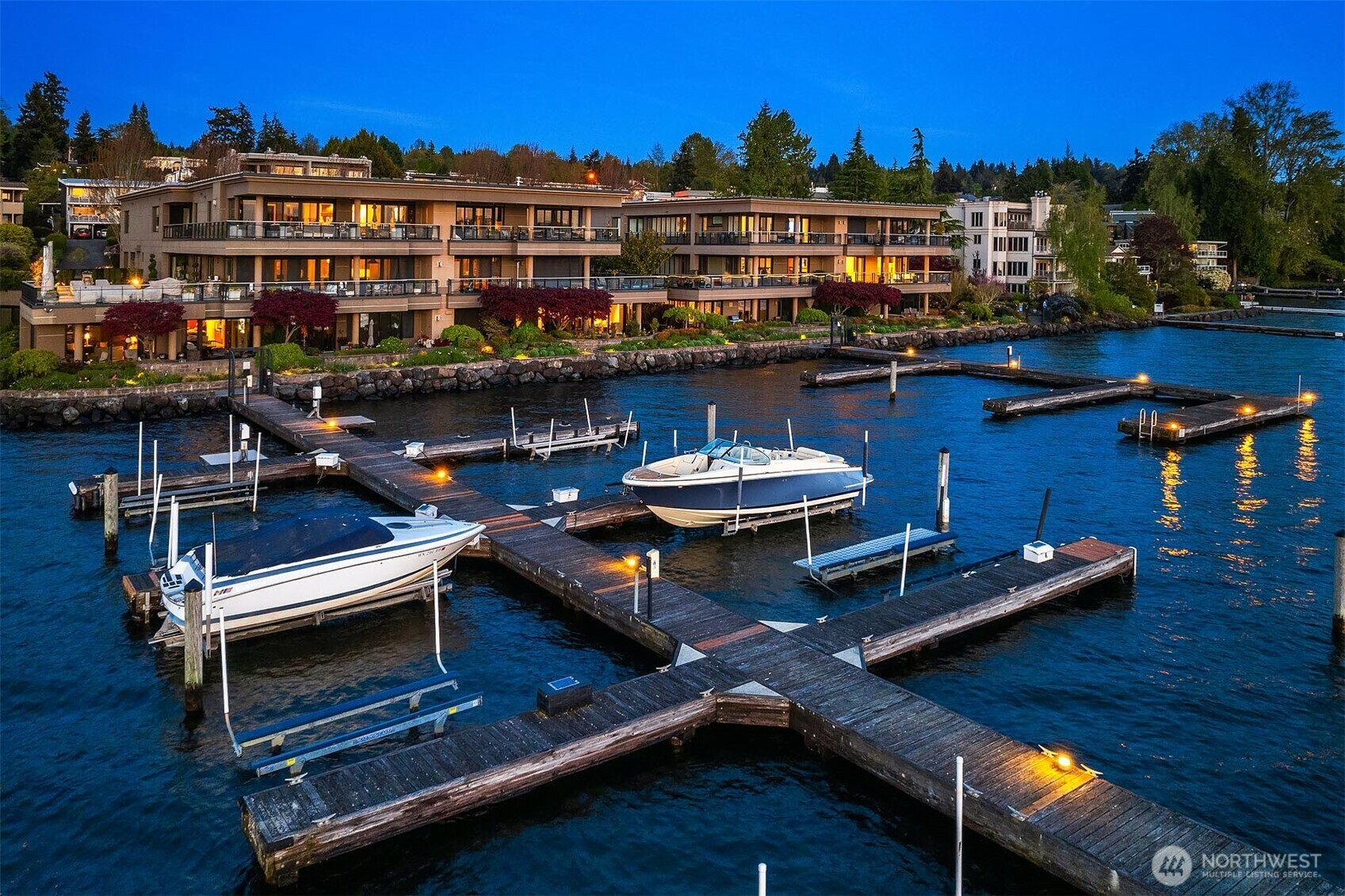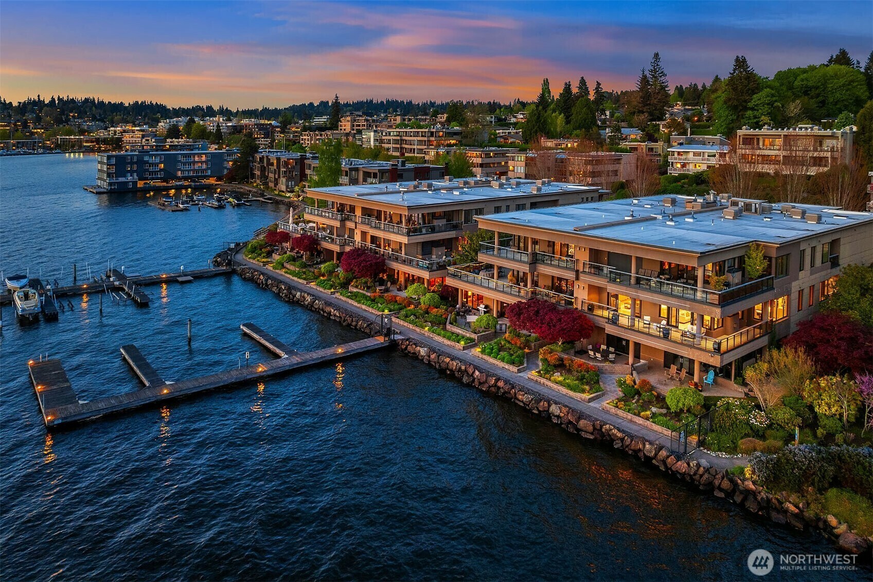 Waters Edge is a Premier Luxury Community on the shores of LK Wash w/ 280' of community shoreline. One of only a few concrete & steel buildings in Kirkland. $700K remodel of main living space was inspired by one of the pioneers of abstraction in Western Art, Russian painter/ theorist Wassily Kandinsky and designer Kay Stewart. Underlit glass counter created by Glassworks of Seattle. Open floorpan to maximize entertainment spaces and sweeping lake, city & mtn views. End unit, walls of windows and high ceilings. Lakeside patio. Deeded moorage w/10,000 lb boat lift. Unit opens directly into the your parking spaces for total convenience with an electric charger. Minutes to all DT Kirkland has to enjoy- shopping, dining, parks and so much more.