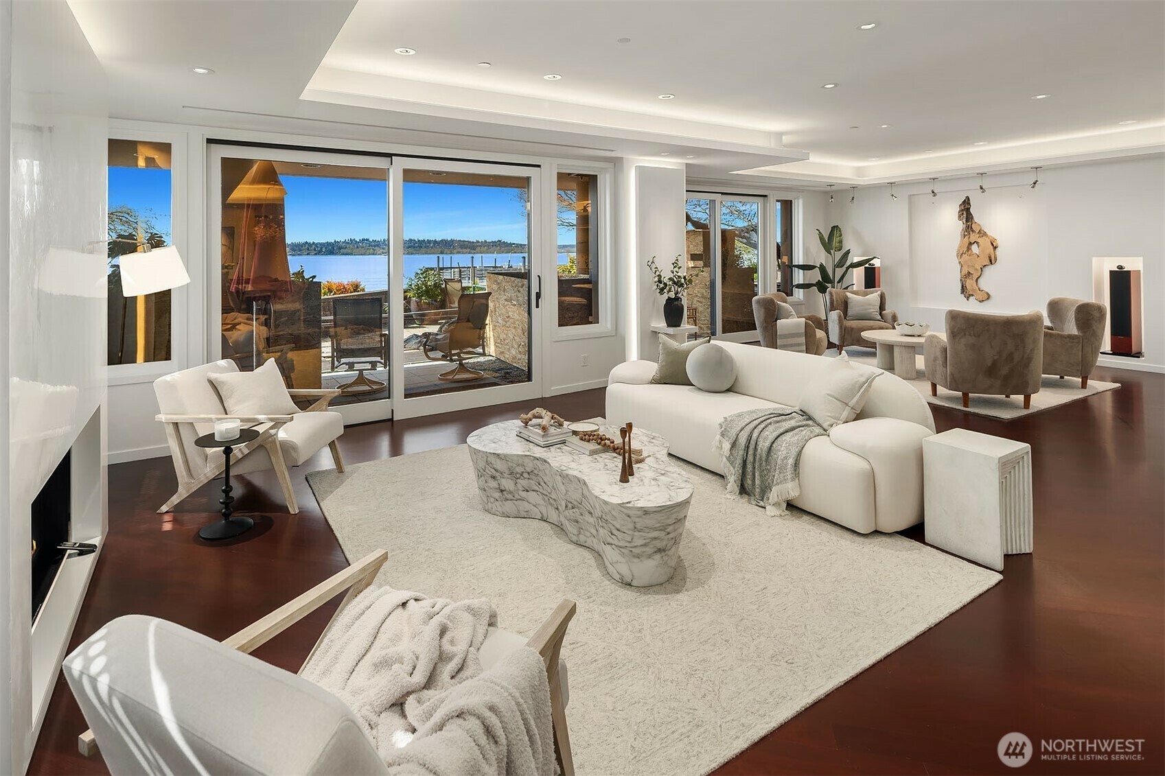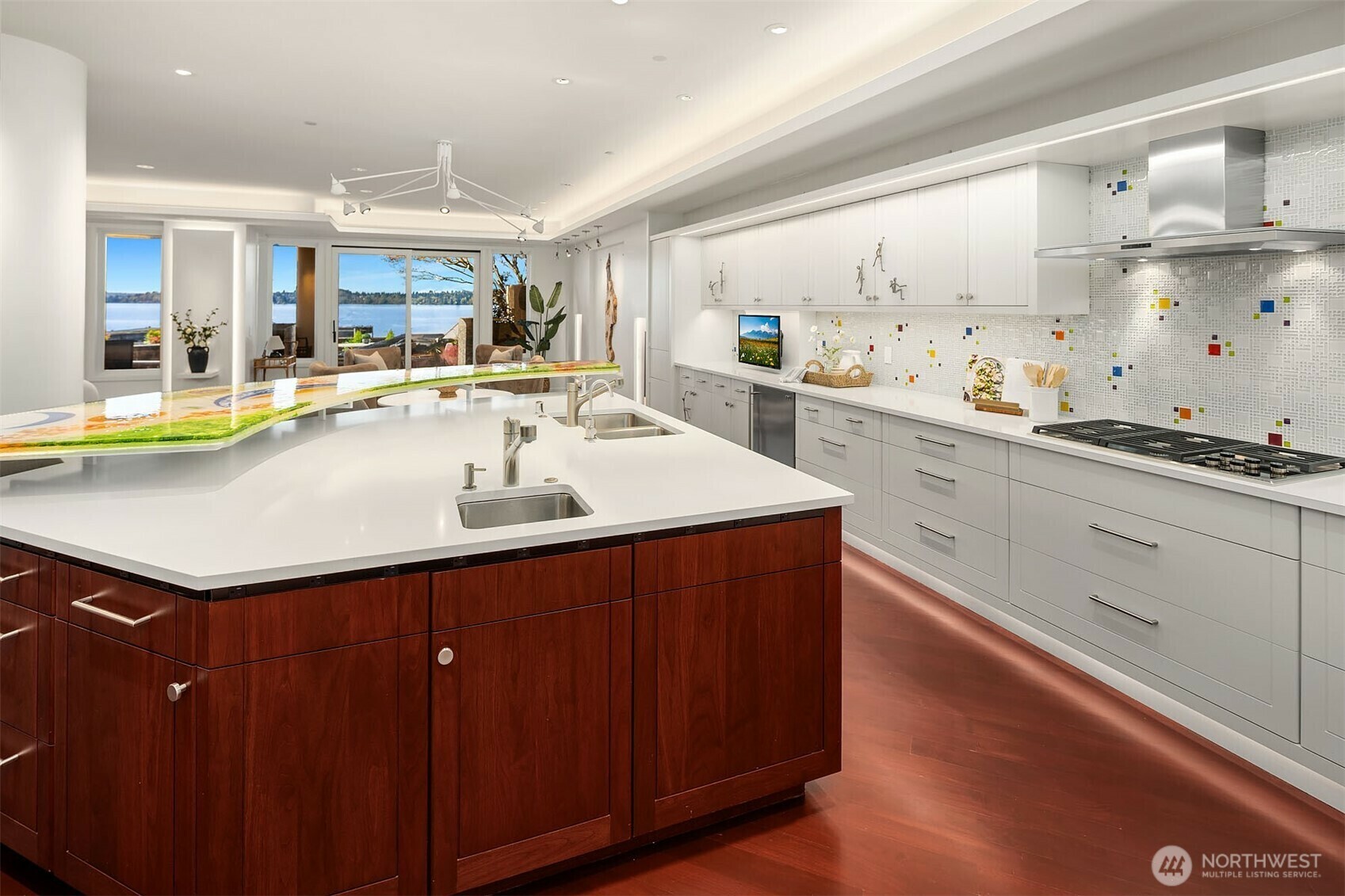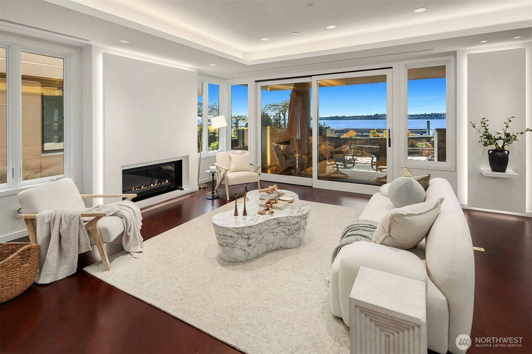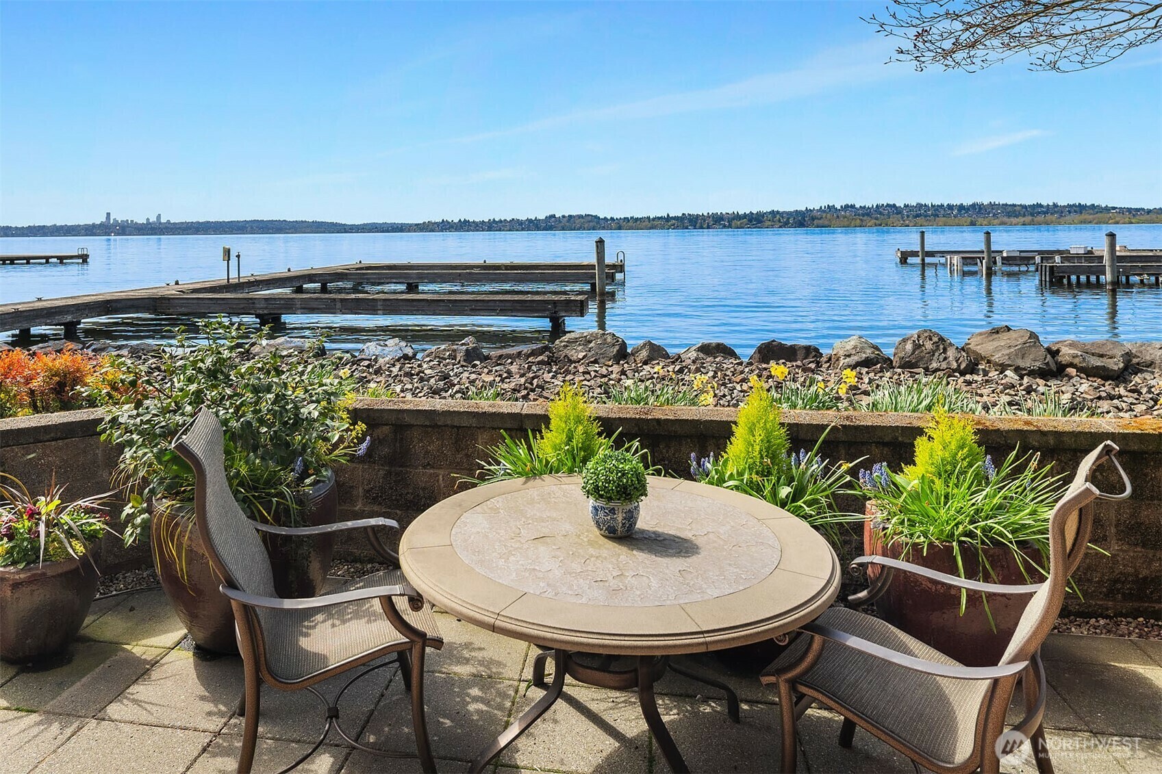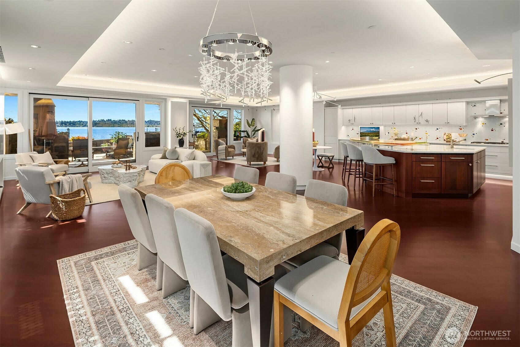 Waters Edge is a Premier Luxury Community on the shores of LK Wash w/ 280' of community shoreline. One of only a few concrete & steel buildings in Kirkland. $700K remodel of main living space was inspired by one of the pioneers of abstraction in Western Art, Russian painter/ theorist Wassily Kandinsky and designer Kay Stewart. Underlit glass counter created by Glassworks of Seattle. Open floorpan to maximize entertainment spaces and sweeping lake, city & mtn views. End unit, walls of windows and high ceilings. Lakeside patio. Deeded moorage w/10,000 lb boat lift. Unit opens directly into the your parking spaces for total convenience with an electric charger. Minutes to all DT Kirkland has to enjoy- shopping, dining, parks and so much more.
