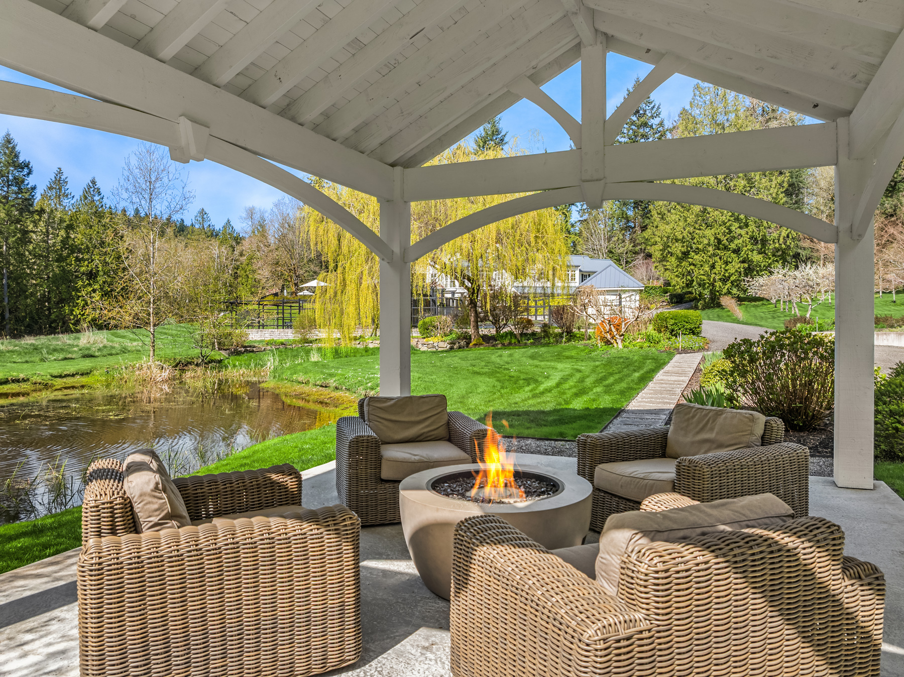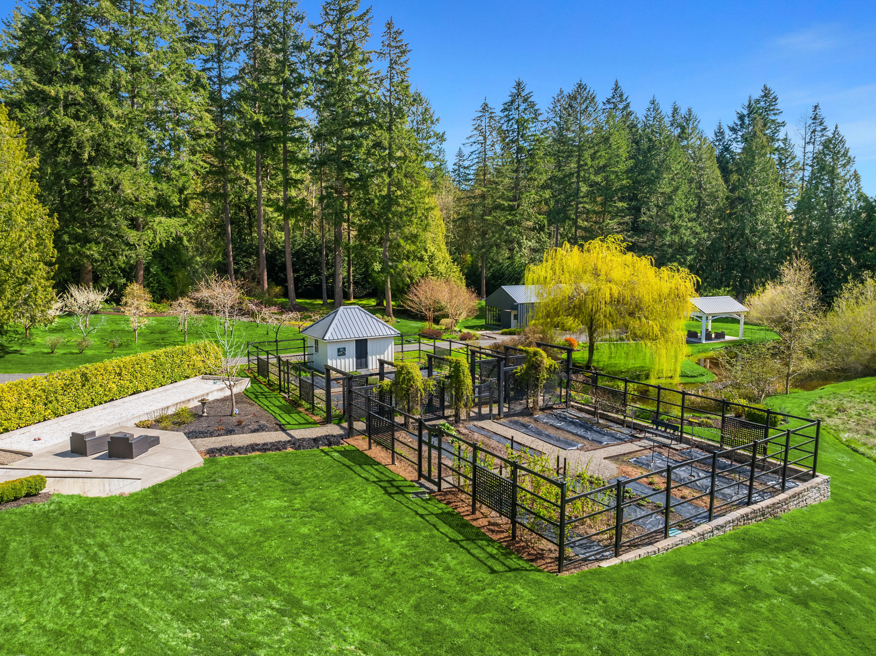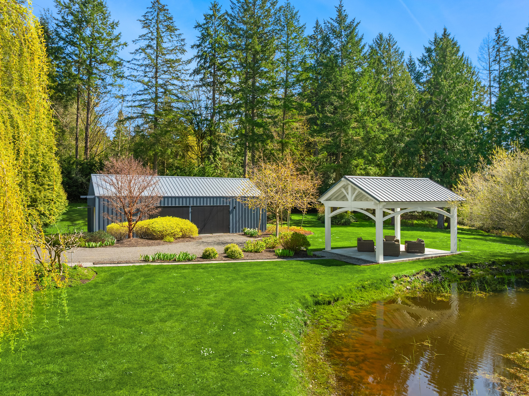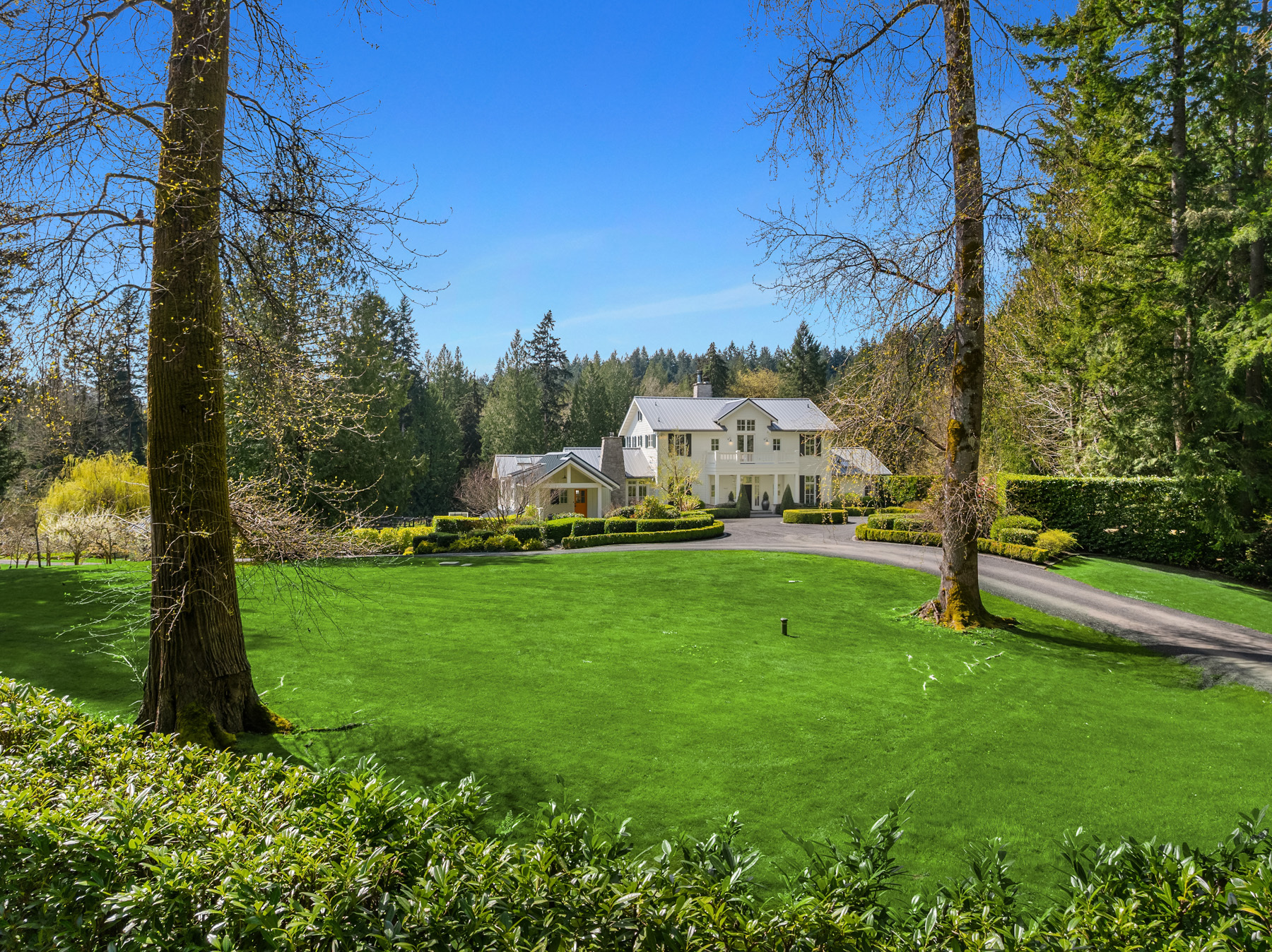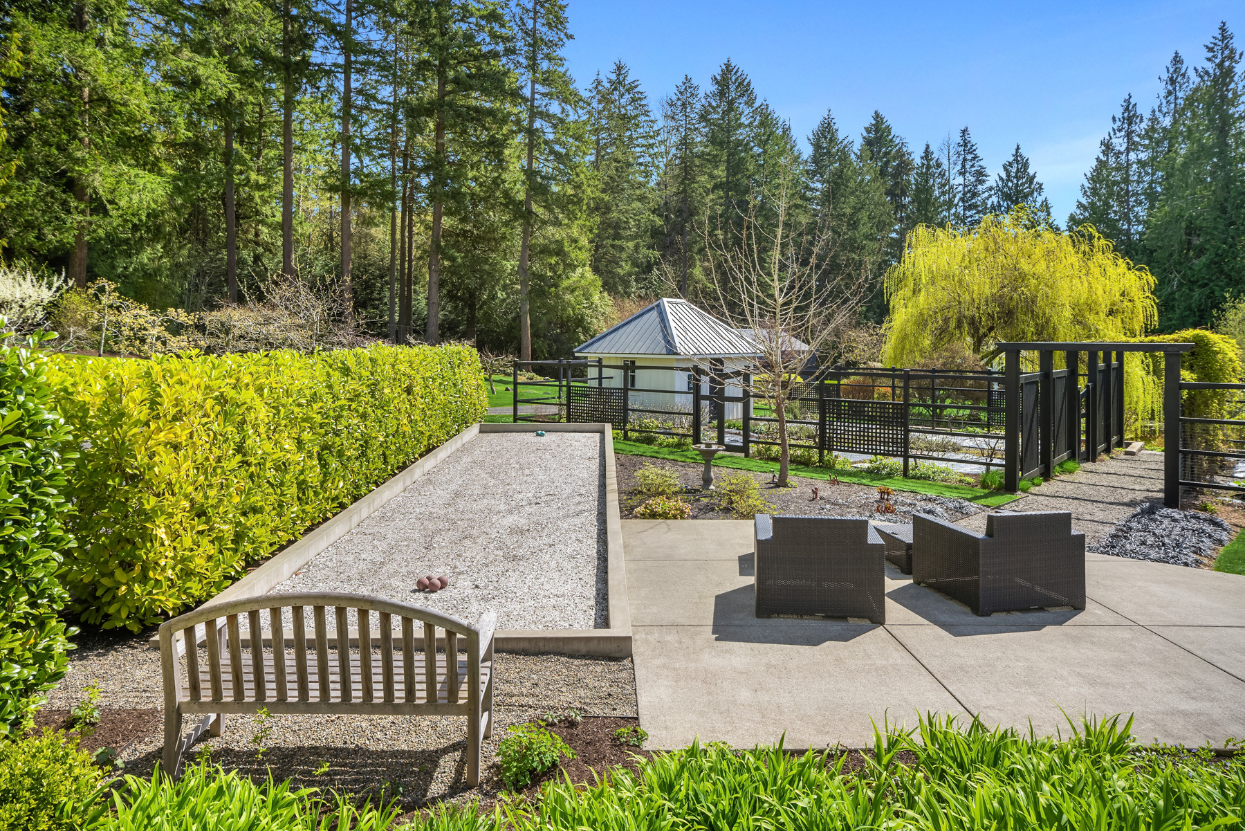 This gracious and timeless estate, set on 9.97 sunny acres, offers privacy yet is a short drive to the ferry and town. Custom built with exquisite attention to detail, the home features an open and sophisticated layout, with a main floor primary suite, 3 additional ensuite bedrooms and an attached 3-car garage. French doors lead from the living, dining and family rooms to the south facing patio, with an outdoor fireplace and swimming pool. The chef’s kitchen features a 60”Viking stove, a glass front Sub-Zero refrigerator and a dreamy pantry. Explore this special property with its peaceful territorial views and stunning gardens, a seasonal pond and an orchard with fruit trees, a bocce ball court and a modern shop/studio rebuilt in 2020.