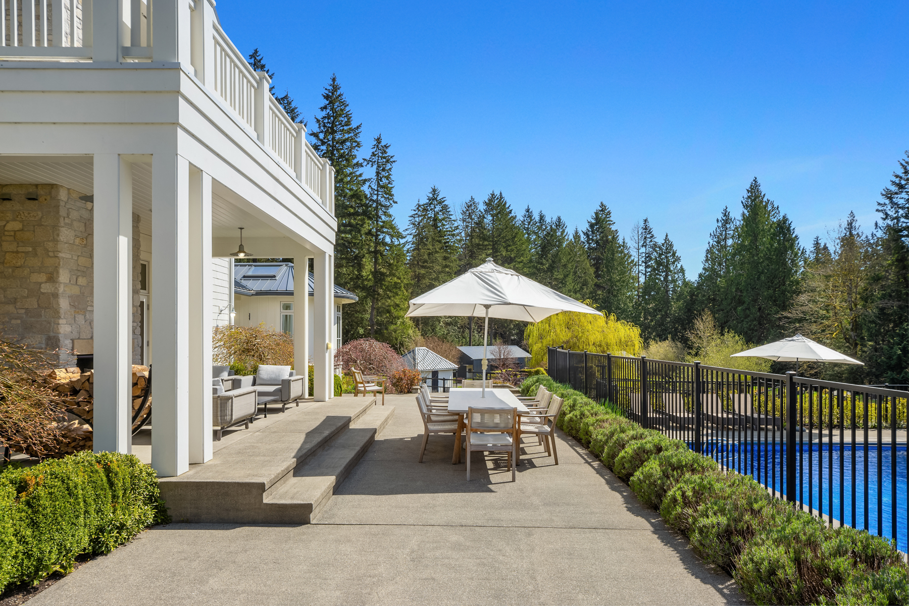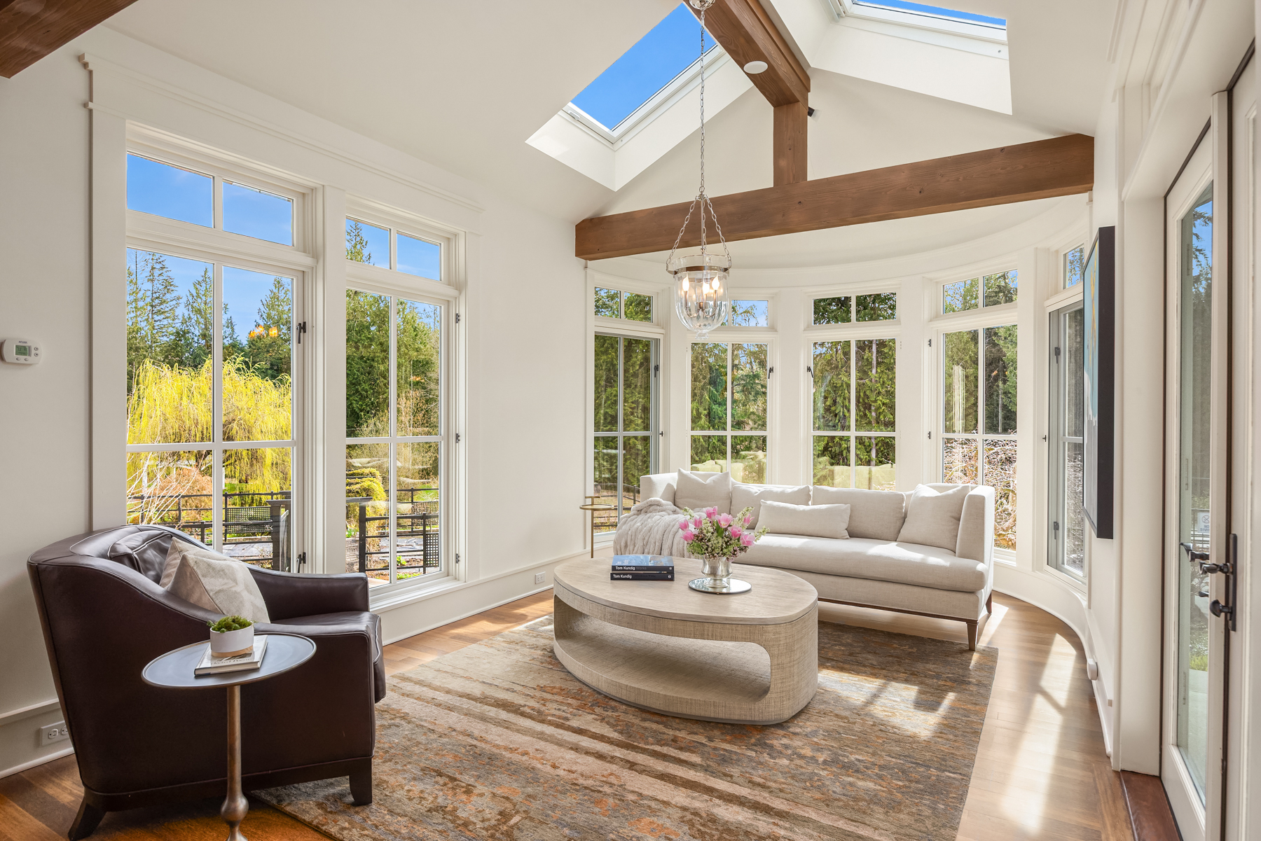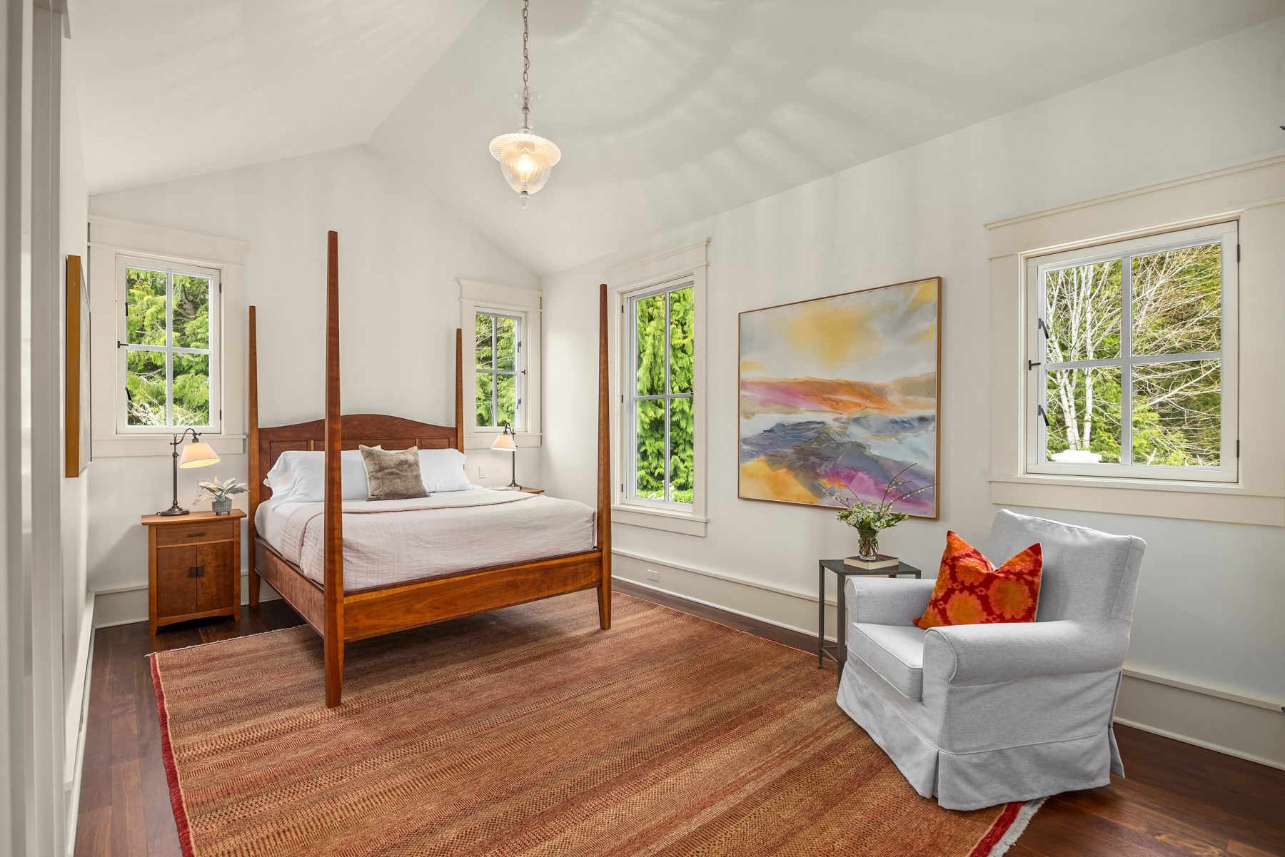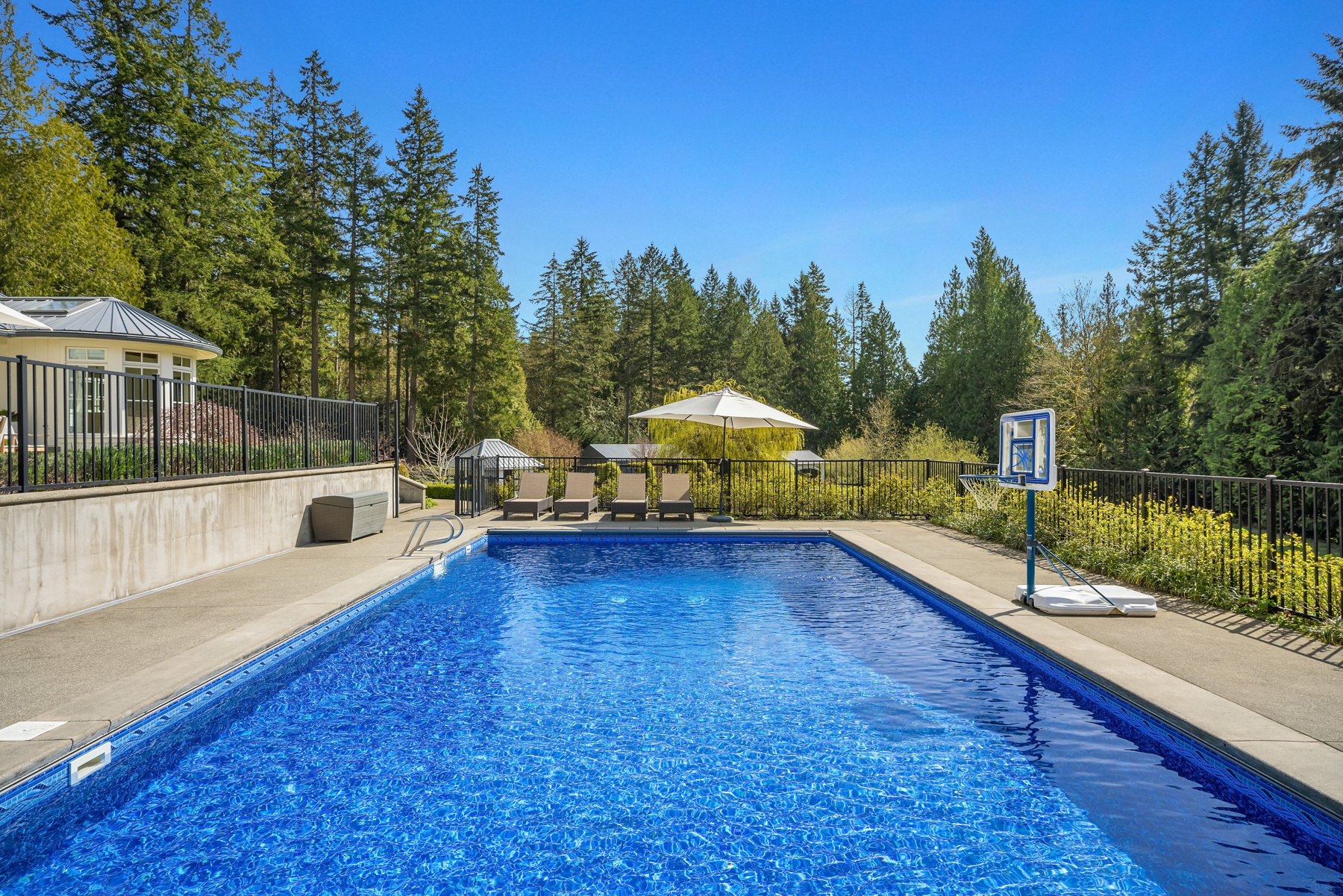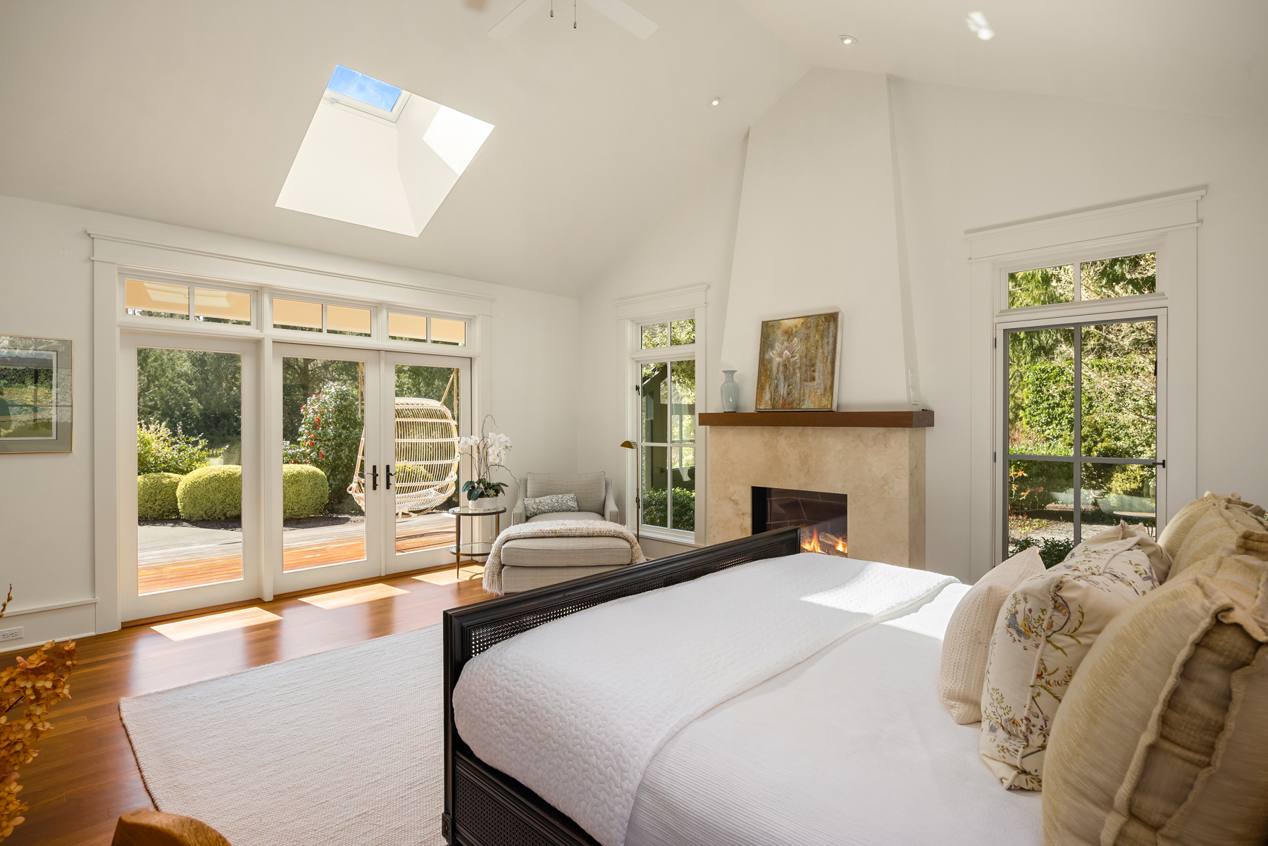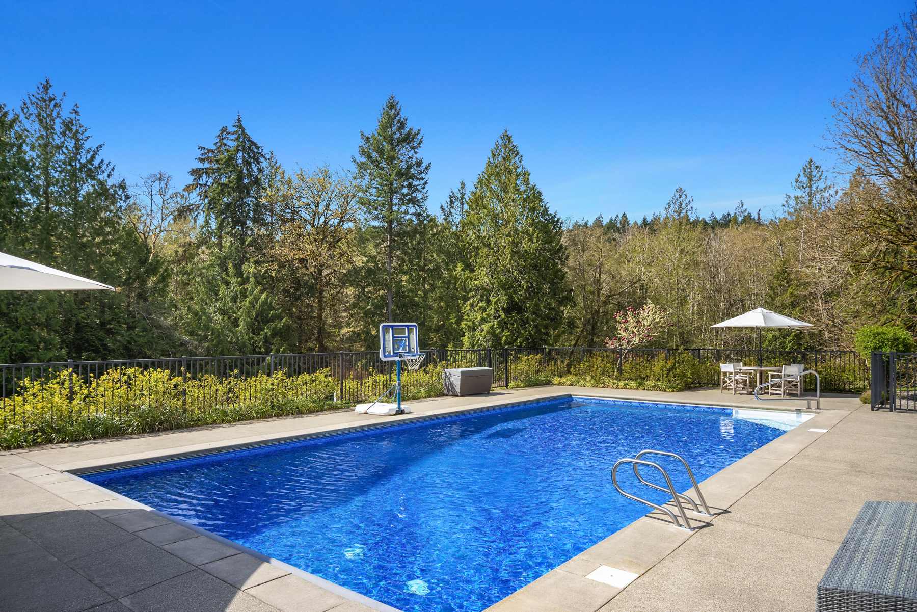 This gracious and timeless estate, set on 9.97 sunny acres, offers privacy yet is a short drive to the ferry and town. Custom built with exquisite attention to detail, the home features an open and sophisticated layout, with a main floor primary suite, 3 additional ensuite bedrooms and an attached 3-car garage. French doors lead from the living, dining and family rooms to the south facing patio, with an outdoor fireplace and swimming pool. The chef’s kitchen features a 60”Viking stove, a glass front Sub-Zero refrigerator and a dreamy pantry. Explore this special property with its peaceful territorial views and stunning gardens, a seasonal pond and an orchard with fruit trees, a bocce ball court and a modern shop/studio rebuilt in 2020.