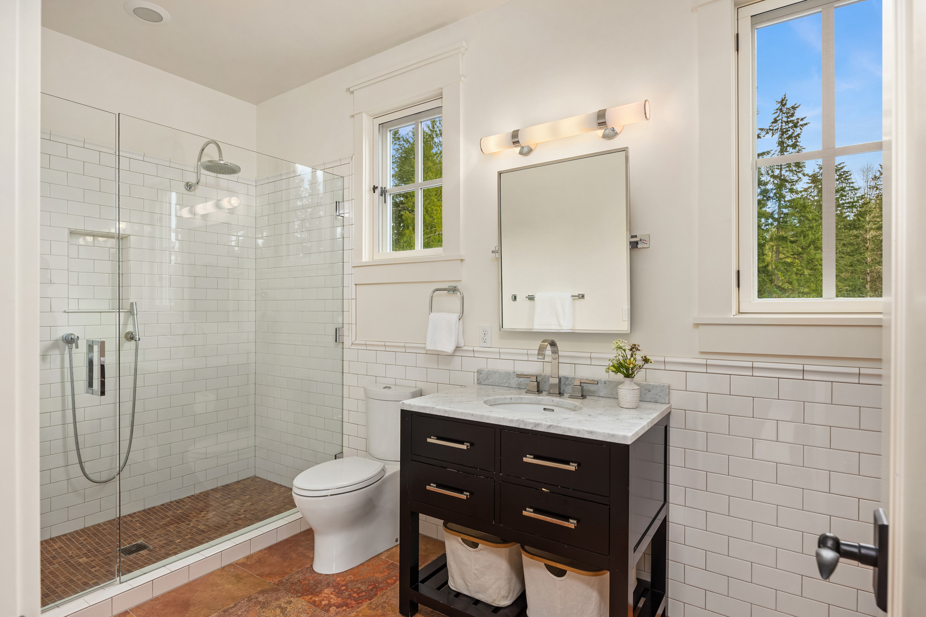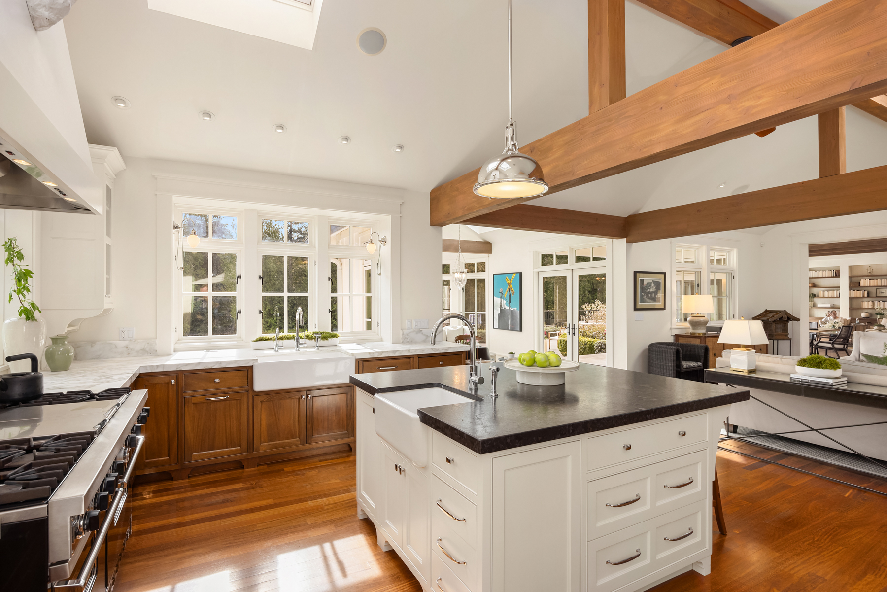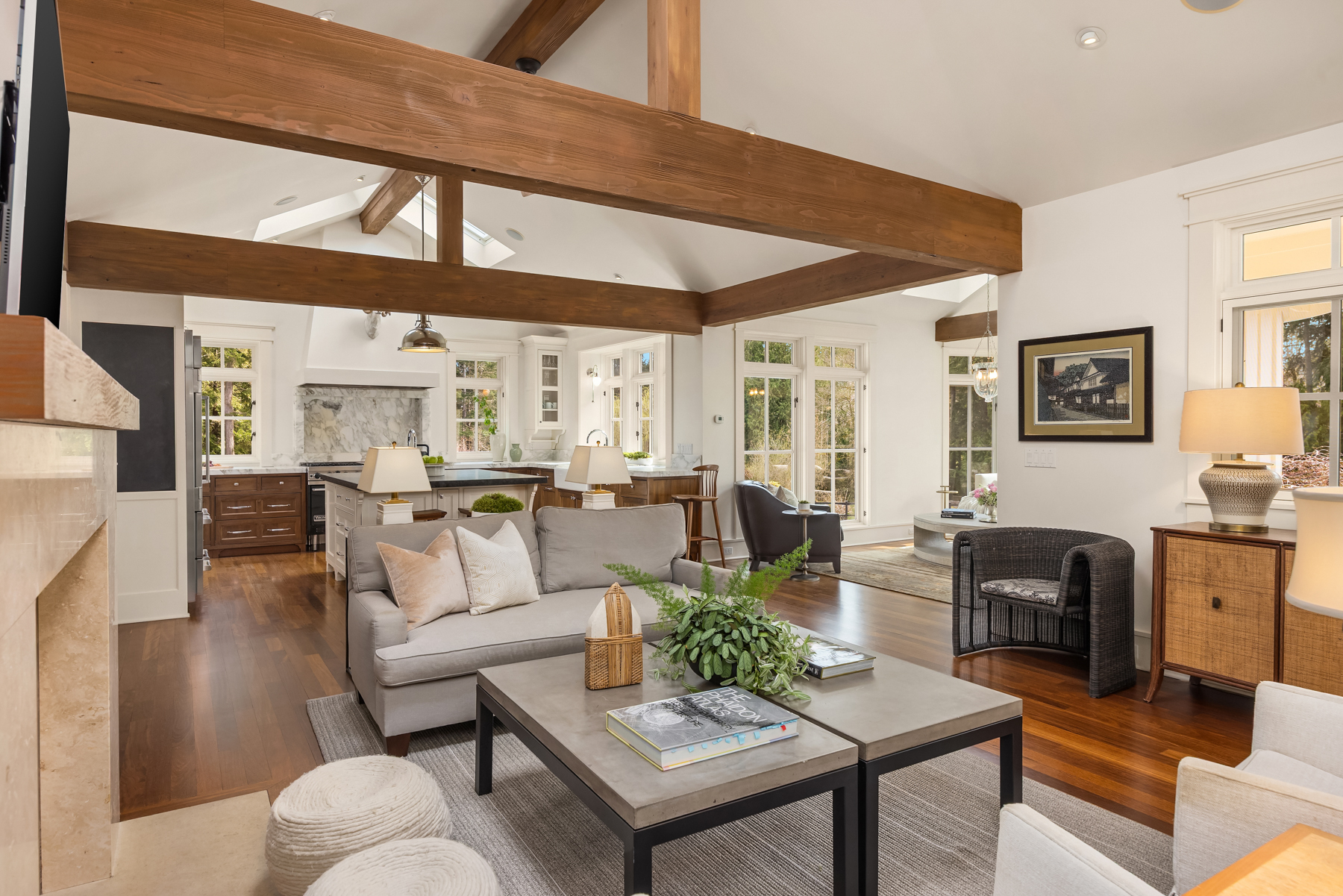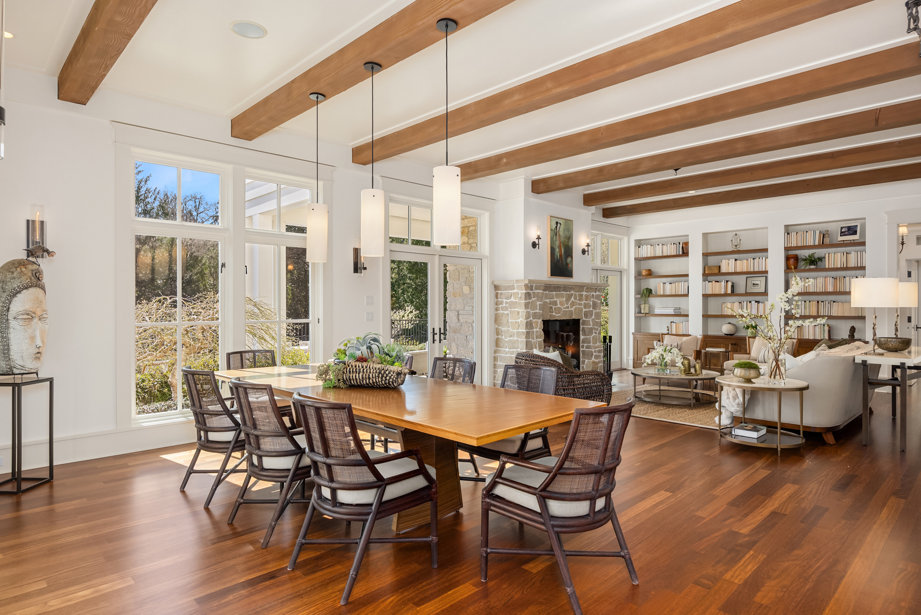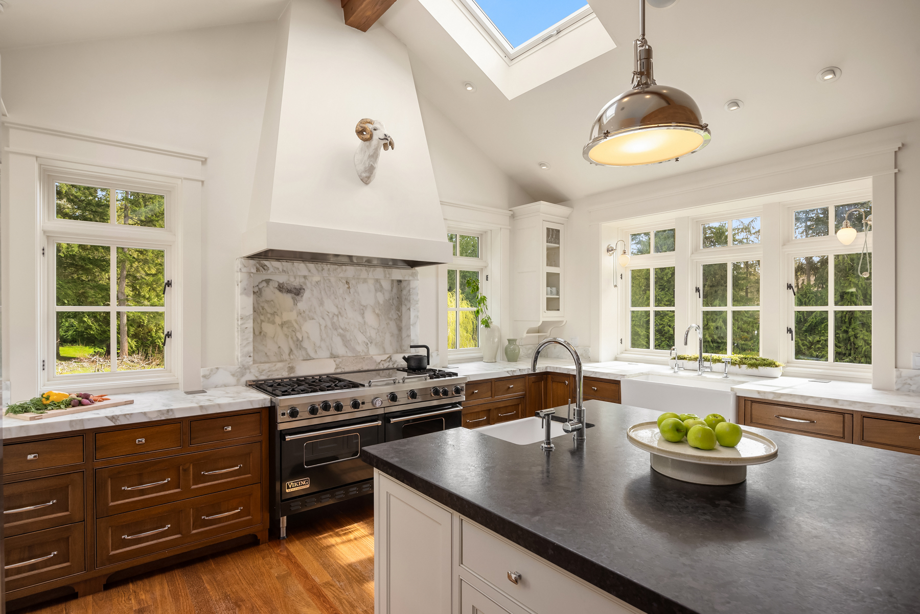 This gracious and timeless estate, set on 9.97 sunny acres, offers privacy yet is a short drive to the ferry and town. Custom built with exquisite attention to detail, the home features an open and sophisticated layout, with a main floor primary suite, 3 additional ensuite bedrooms and an attached 3-car garage. French doors lead from the living, dining and family rooms to the south facing patio, with an outdoor fireplace and swimming pool. The chef’s kitchen features a 60”Viking stove, a glass front Sub-Zero refrigerator and a dreamy pantry. Explore this special property with its peaceful territorial views and stunning gardens, a seasonal pond and an orchard with fruit trees, a bocce ball court and a modern shop/studio rebuilt in 2020.