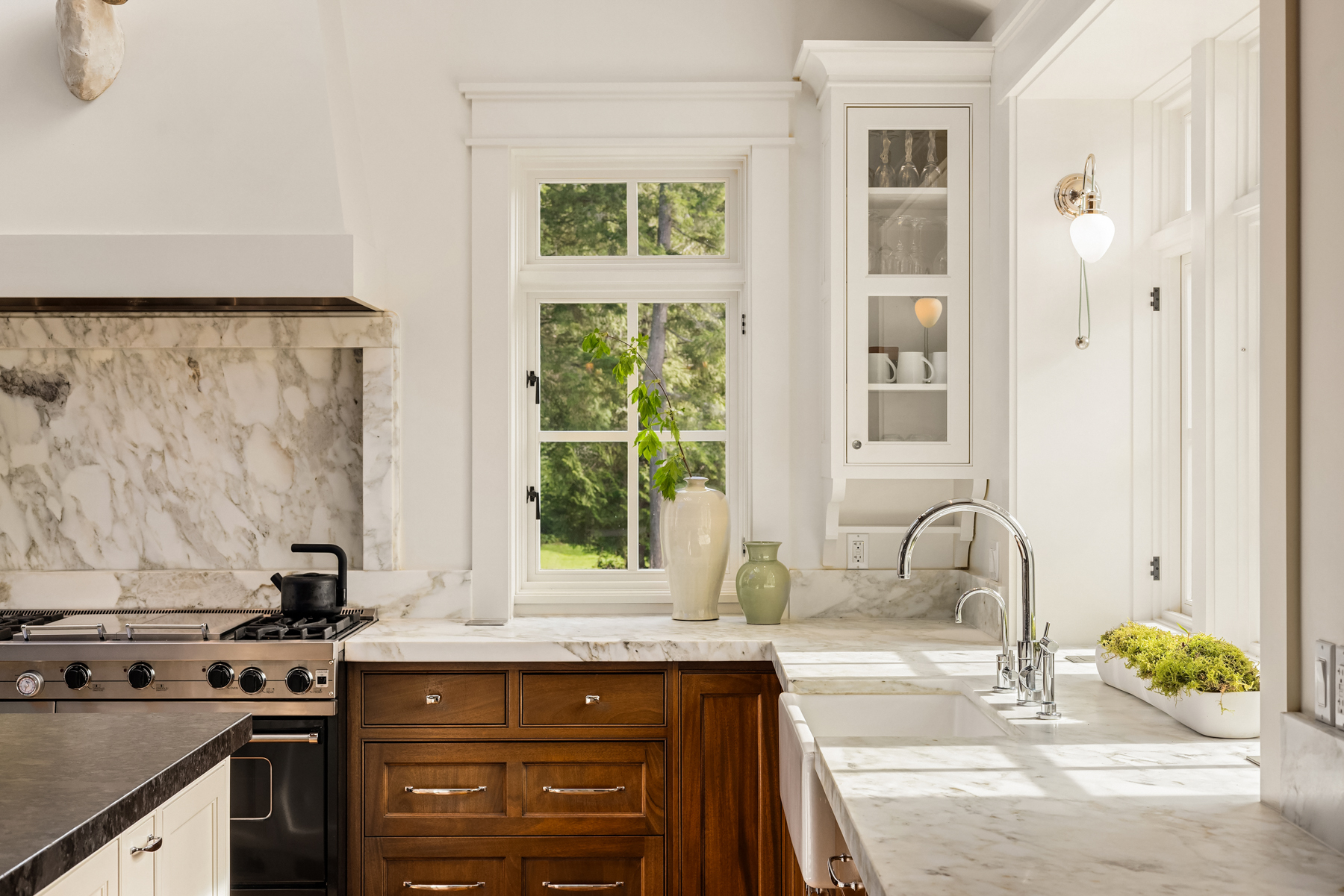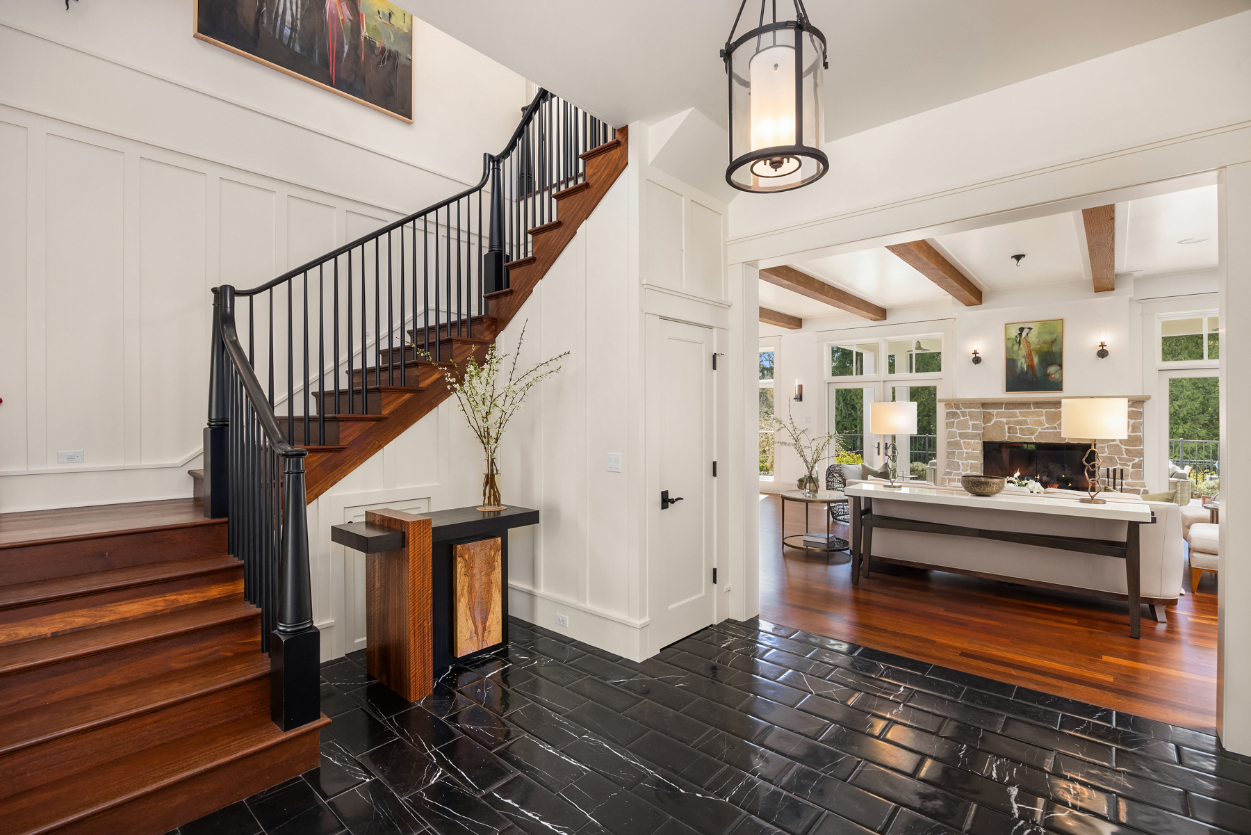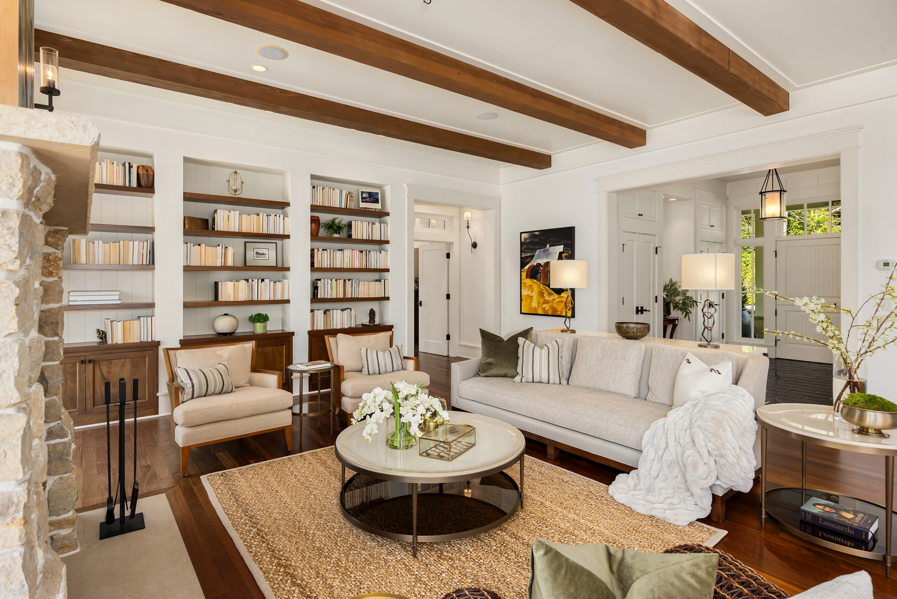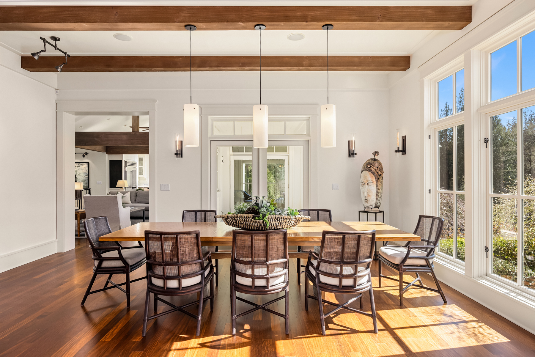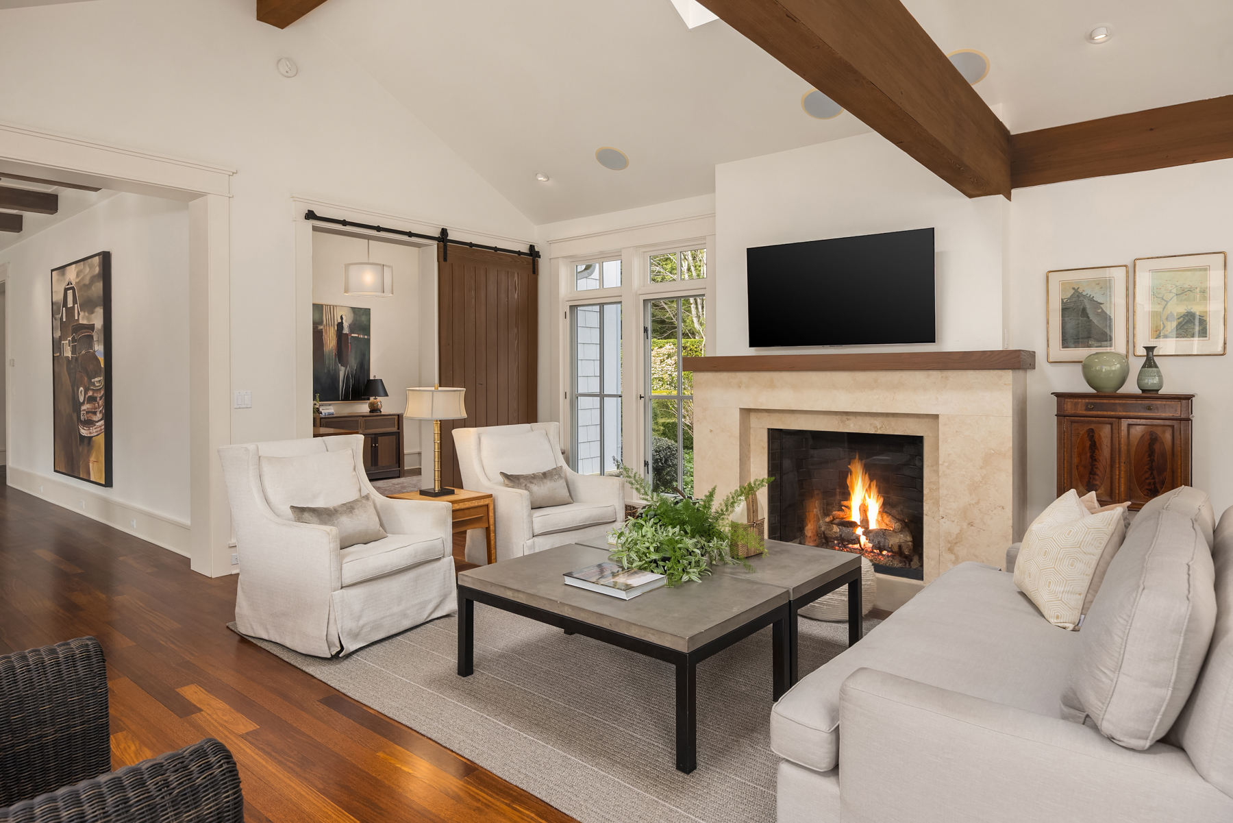 This gracious and timeless estate, set on 9.97 sunny acres, offers privacy yet is a short drive to the ferry and town. Custom built with exquisite attention to detail, the home features an open and sophisticated layout, with a main floor primary suite, 3 additional ensuite bedrooms and an attached 3-car garage. French doors lead from the living, dining and family rooms to the south facing patio, with an outdoor fireplace and swimming pool. The chef’s kitchen features a 60”Viking stove, a glass front Sub-Zero refrigerator and a dreamy pantry. Explore this special property with its peaceful territorial views and stunning gardens, a seasonal pond and an orchard with fruit trees, a bocce ball court and a modern shop/studio rebuilt in 2020.