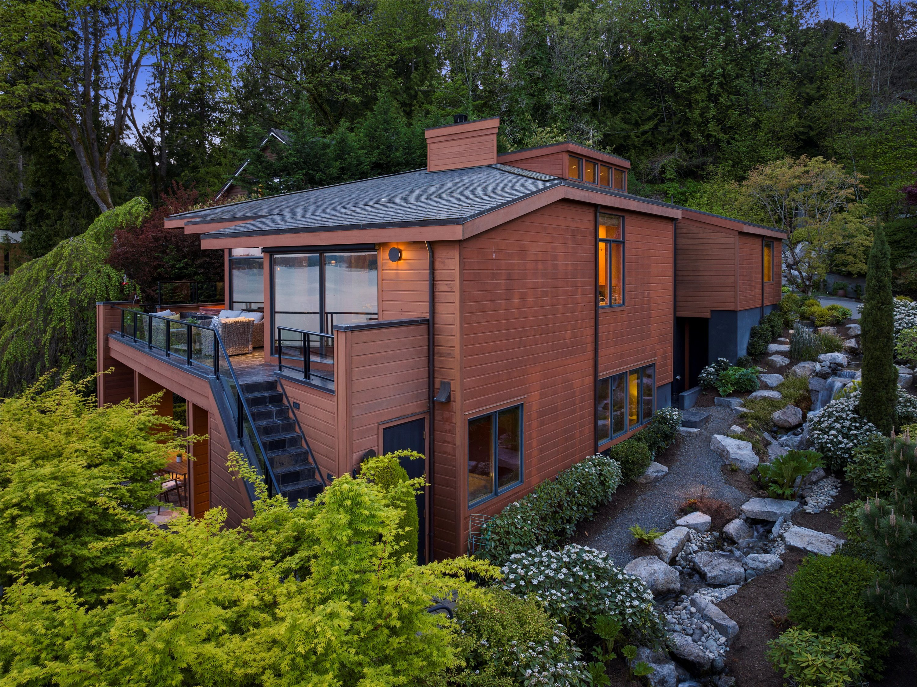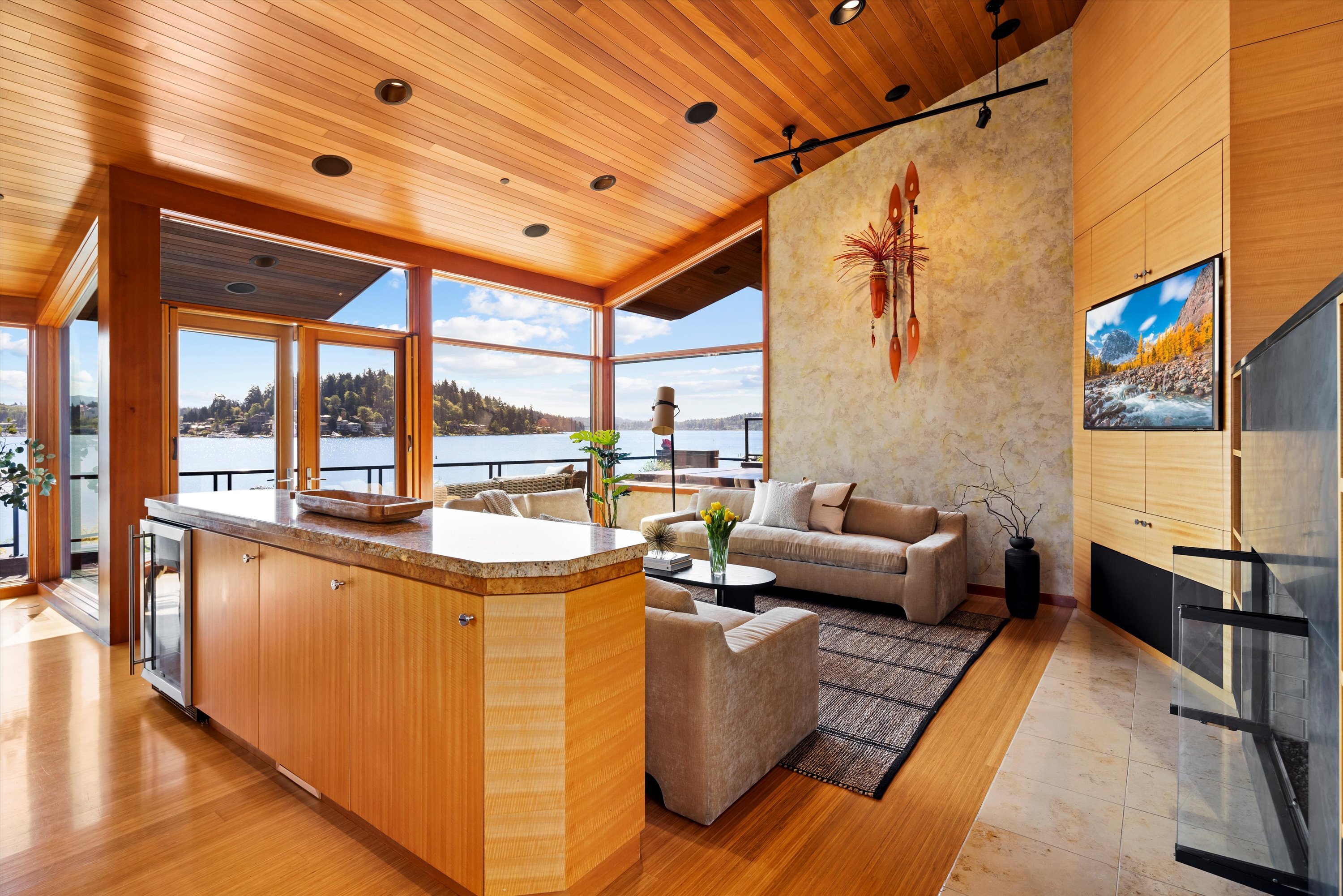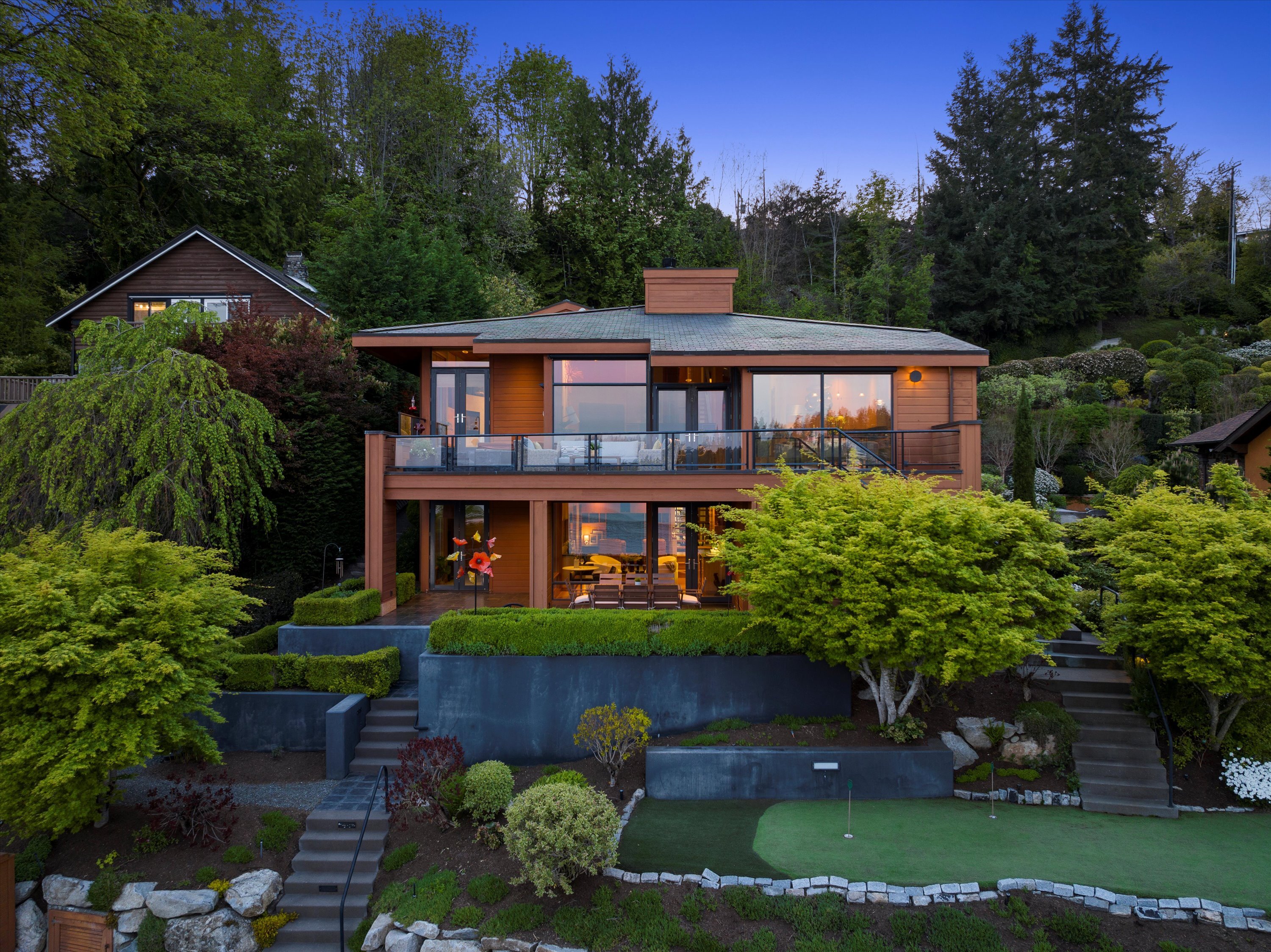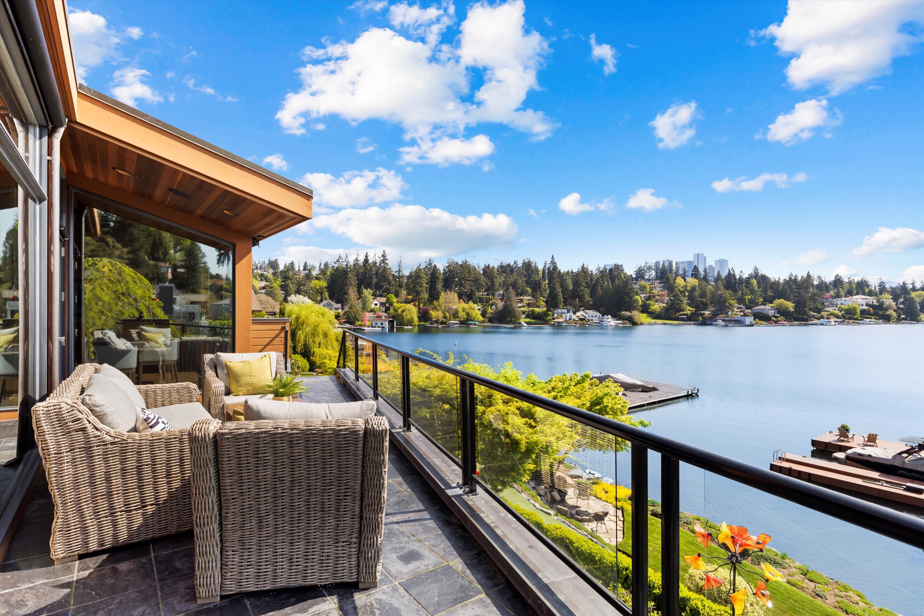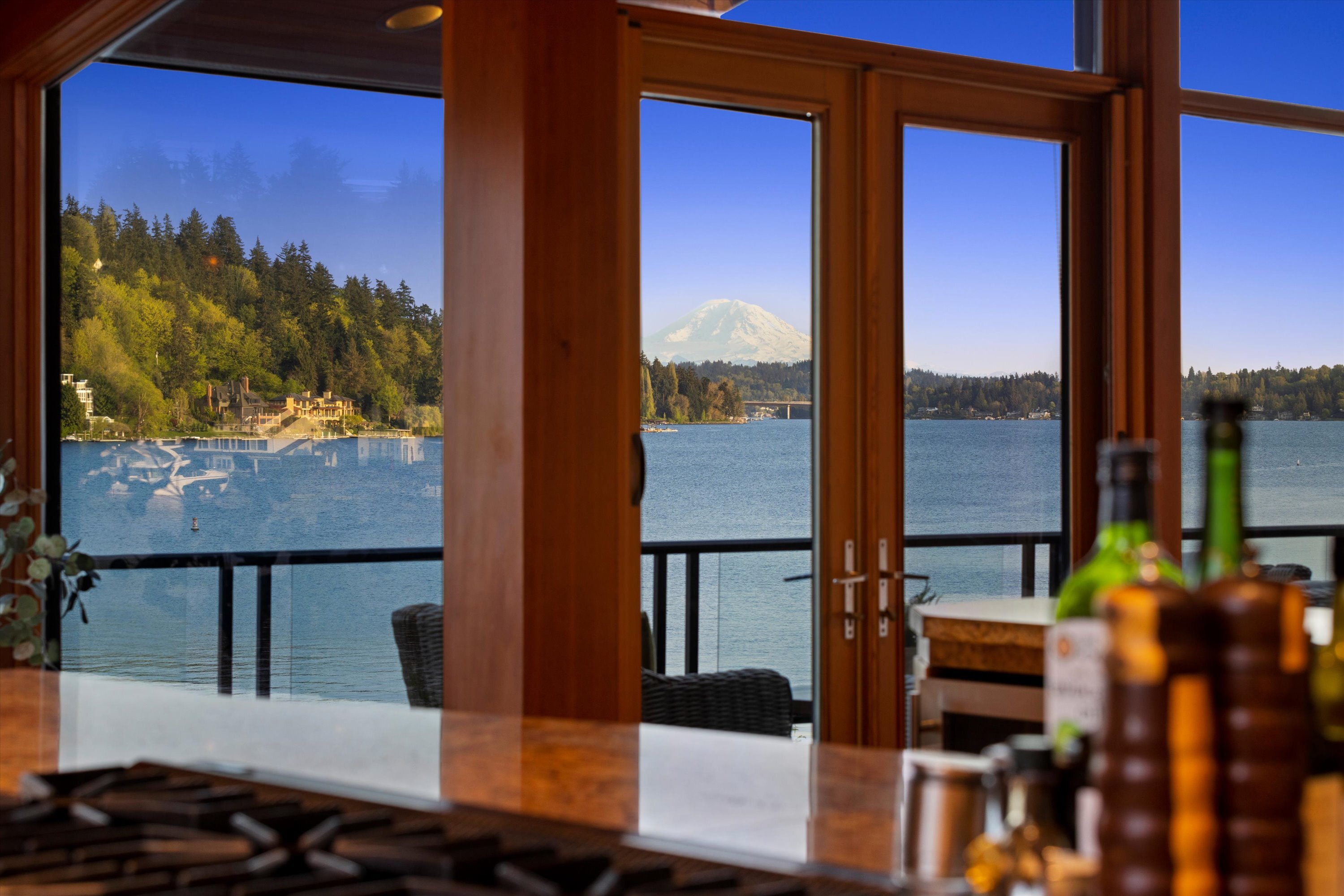Exceptional Meydenbauer Bay south-facing waterfront work of art! Captivating views of Mt Rainier, Bellevue & the glistening waters of Lk WA. Architectural masterpiece w/cedar ceilings, walls of windows & open, light-filled floorplan. 5,580SF w/5BRs & 4BAs & view deck perfect for entertaining. Chef’s island kitchen open to living areas - all w/ exceptional lake views. Primary w/deck & spa. 2nd kitchen, wine cellar, sauna, work/flex rm & patio w/built-in BBQ. Lush grounds w/incredible waterfall, lakeside firepit & putting green. 87’ dock w/multiple lifts. A+ location 2 mins to downtown Bellevue, parks & top rated schools. Curated for effortless living & unforgettable moments, a truly extraordinary retreat where waterfront dreams are realized!