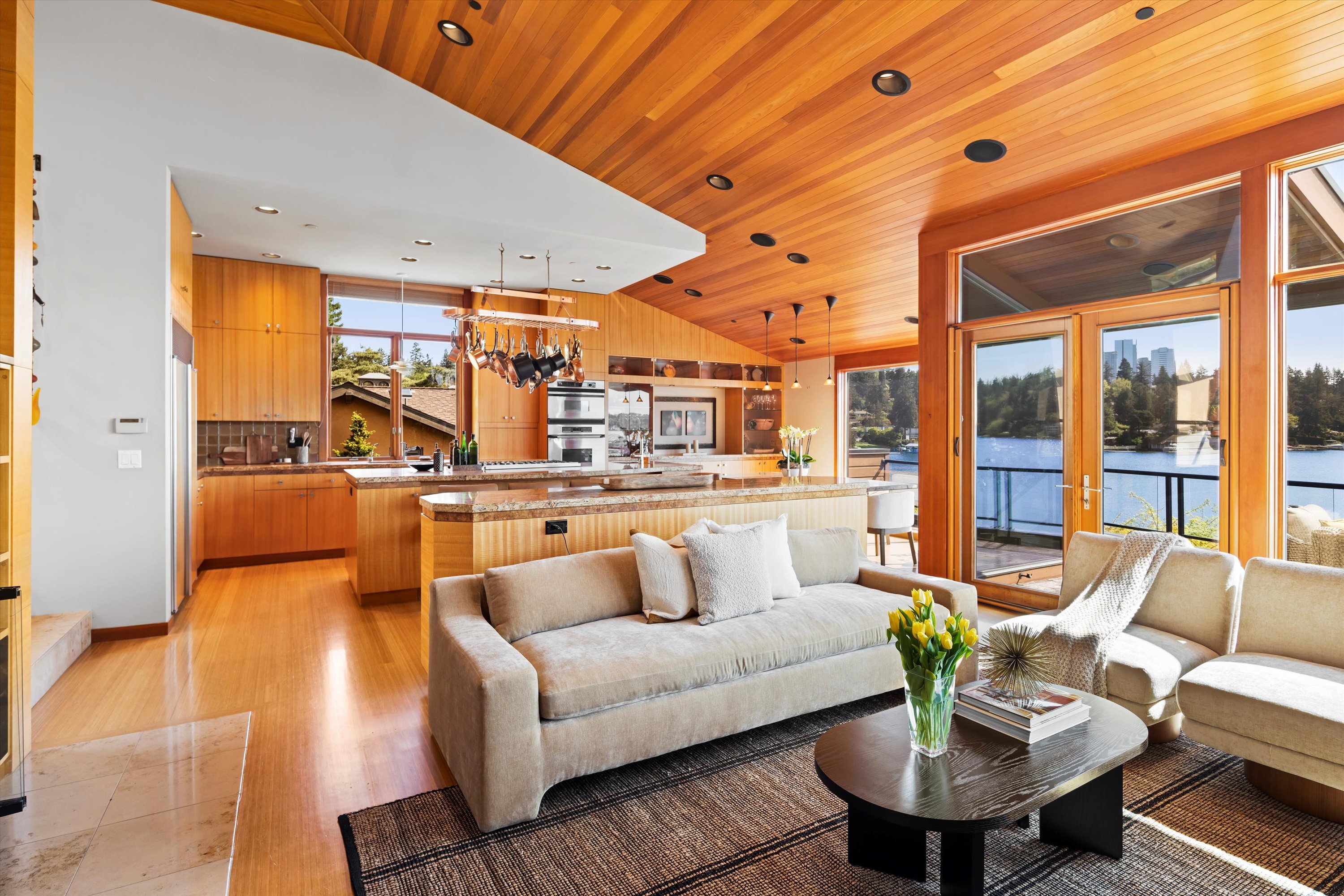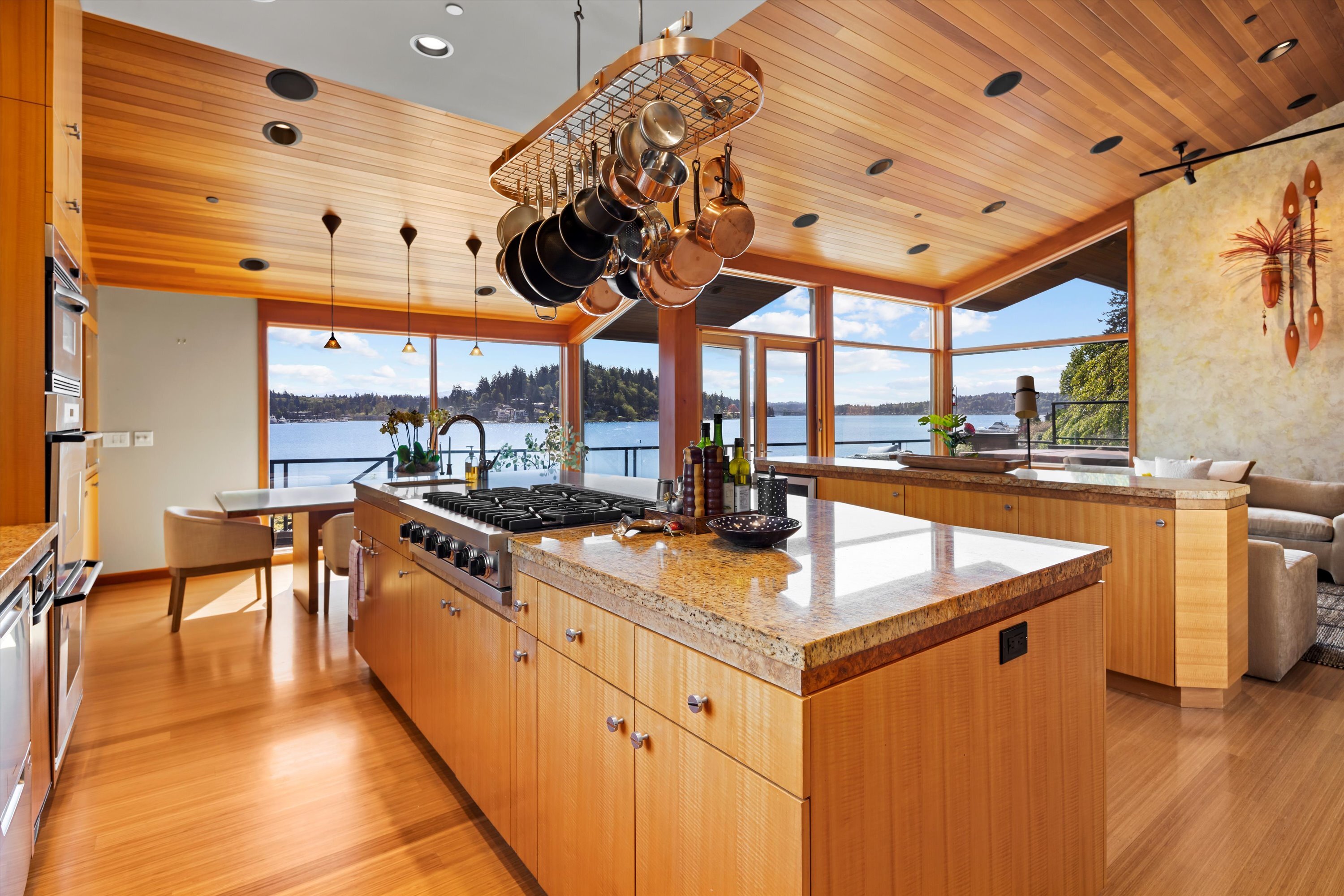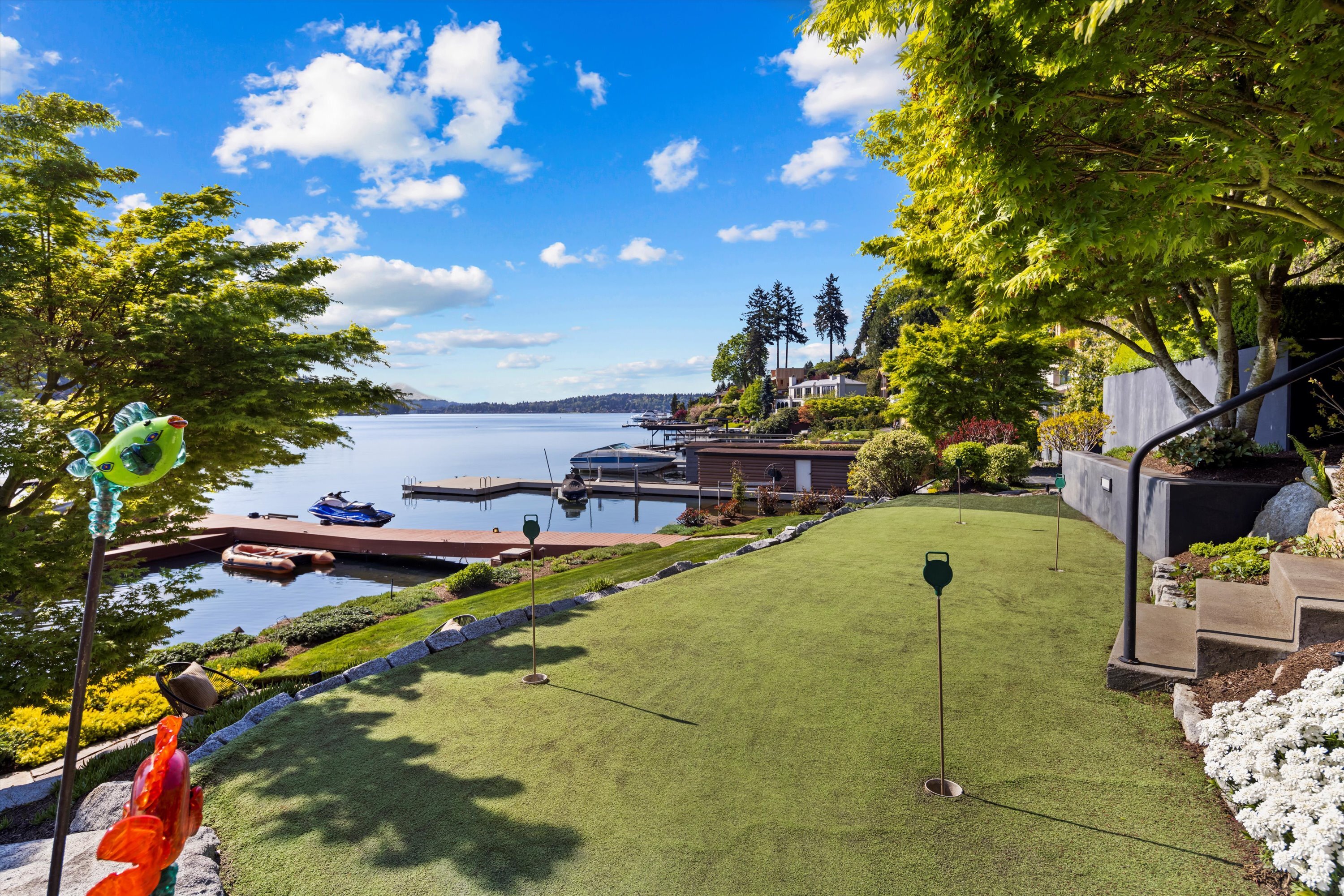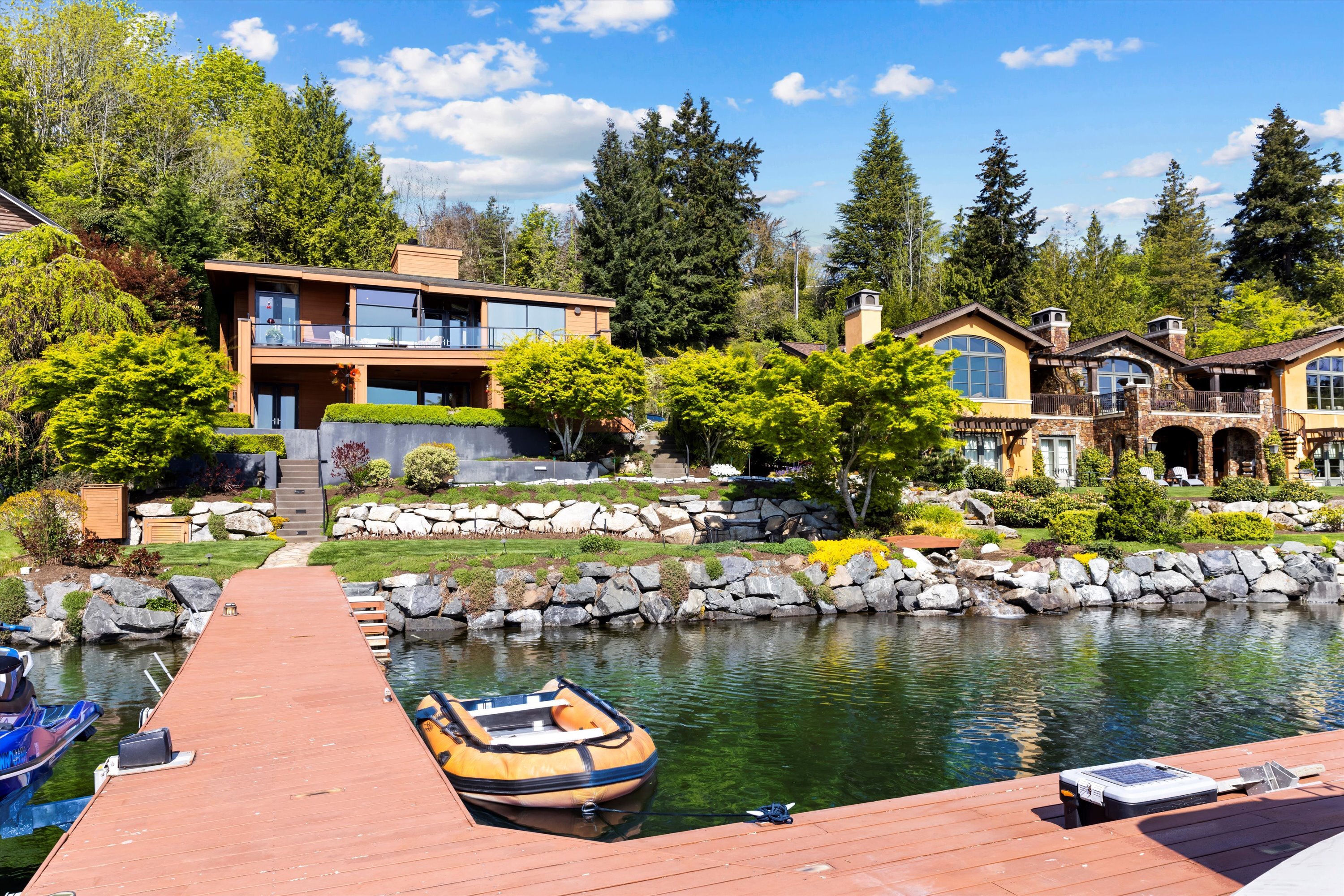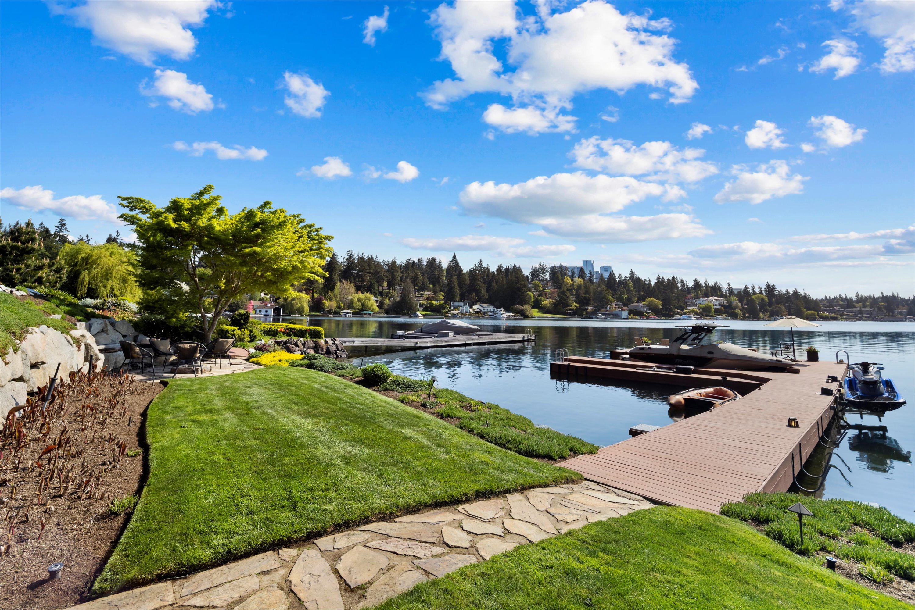 Exceptional Meydenbauer Bay south-facing waterfront work of art! Captivating views of Mt Rainier, Bellevue & the glistening waters of Lk WA. Architectural masterpiece w/cedar ceilings, walls of windows & open, light-filled floorplan. 5,580SF w/5BRs & 4BAs & view deck perfect for entertaining. Chef’s island kitchen open to living areas - all w/ exceptional lake views. Primary w/deck & spa. 2nd kitchen, wine cellar, sauna, work/flex rm & patio w/built-in BBQ. Lush grounds w/incredible waterfall, lakeside firepit & putting green. 87’ dock w/multiple lifts. A+ location 2 mins to downtown Bellevue, parks & top rated schools. Curated for effortless living & unforgettable moments, a truly extraordinary retreat where waterfront dreams are realized!
