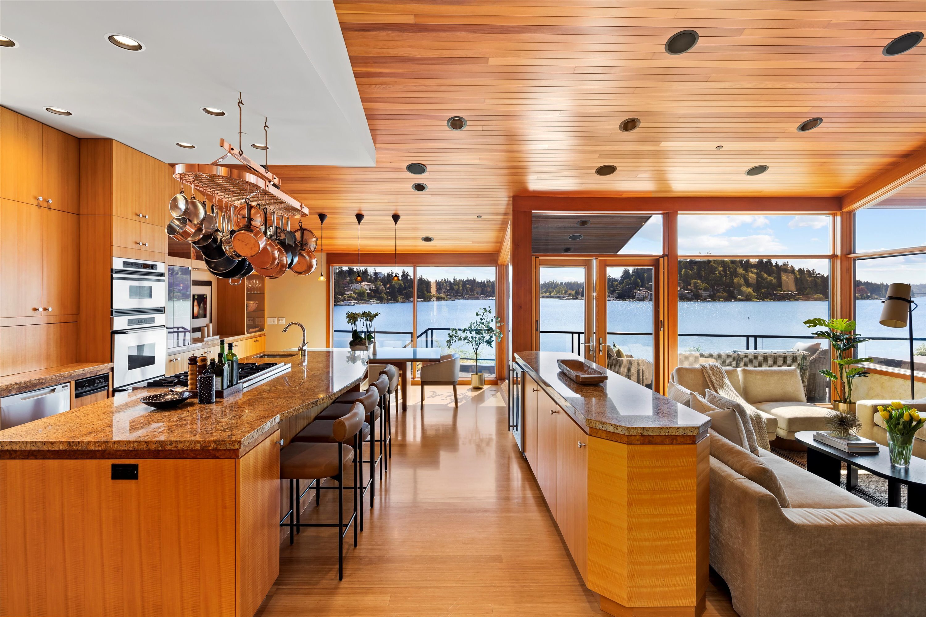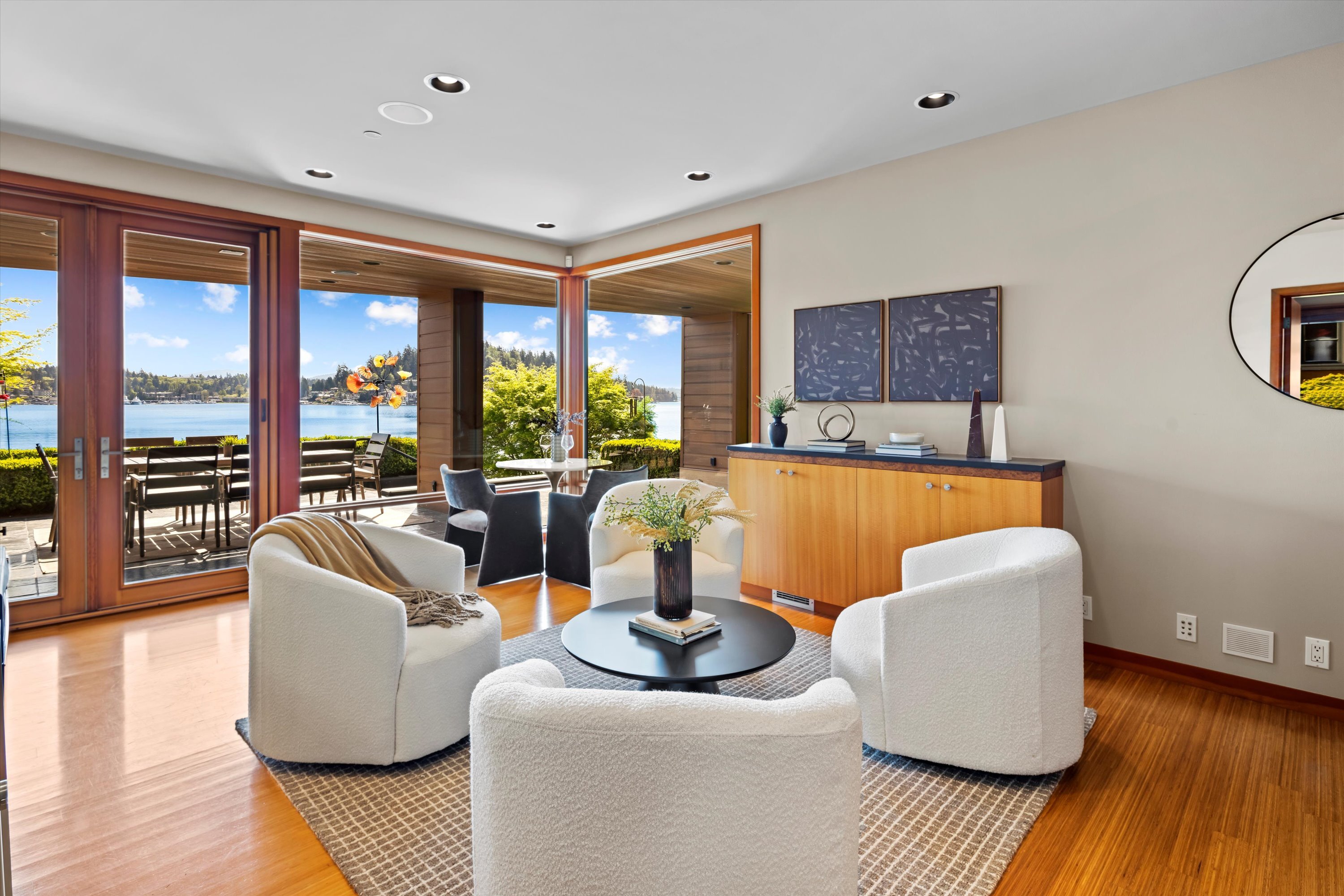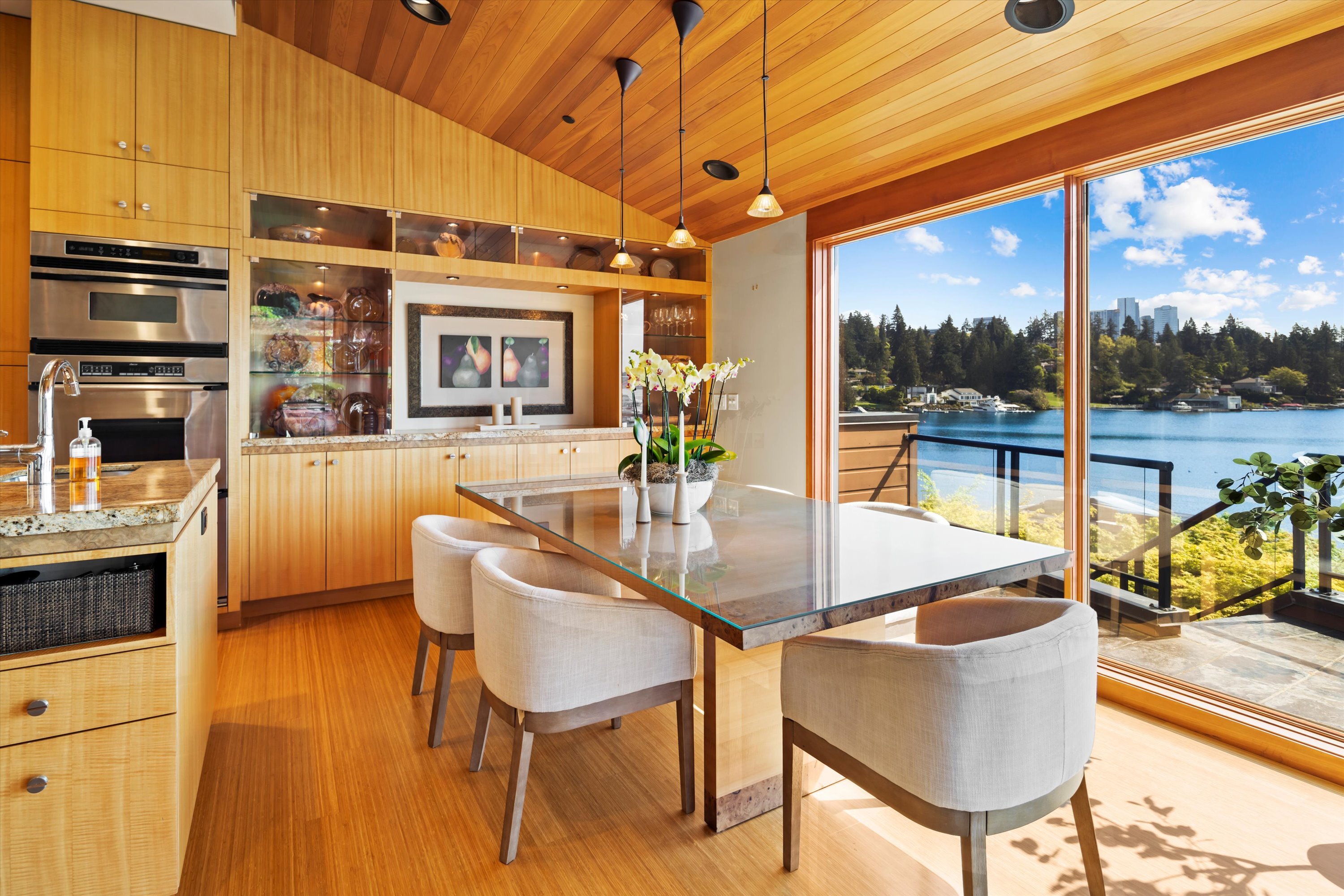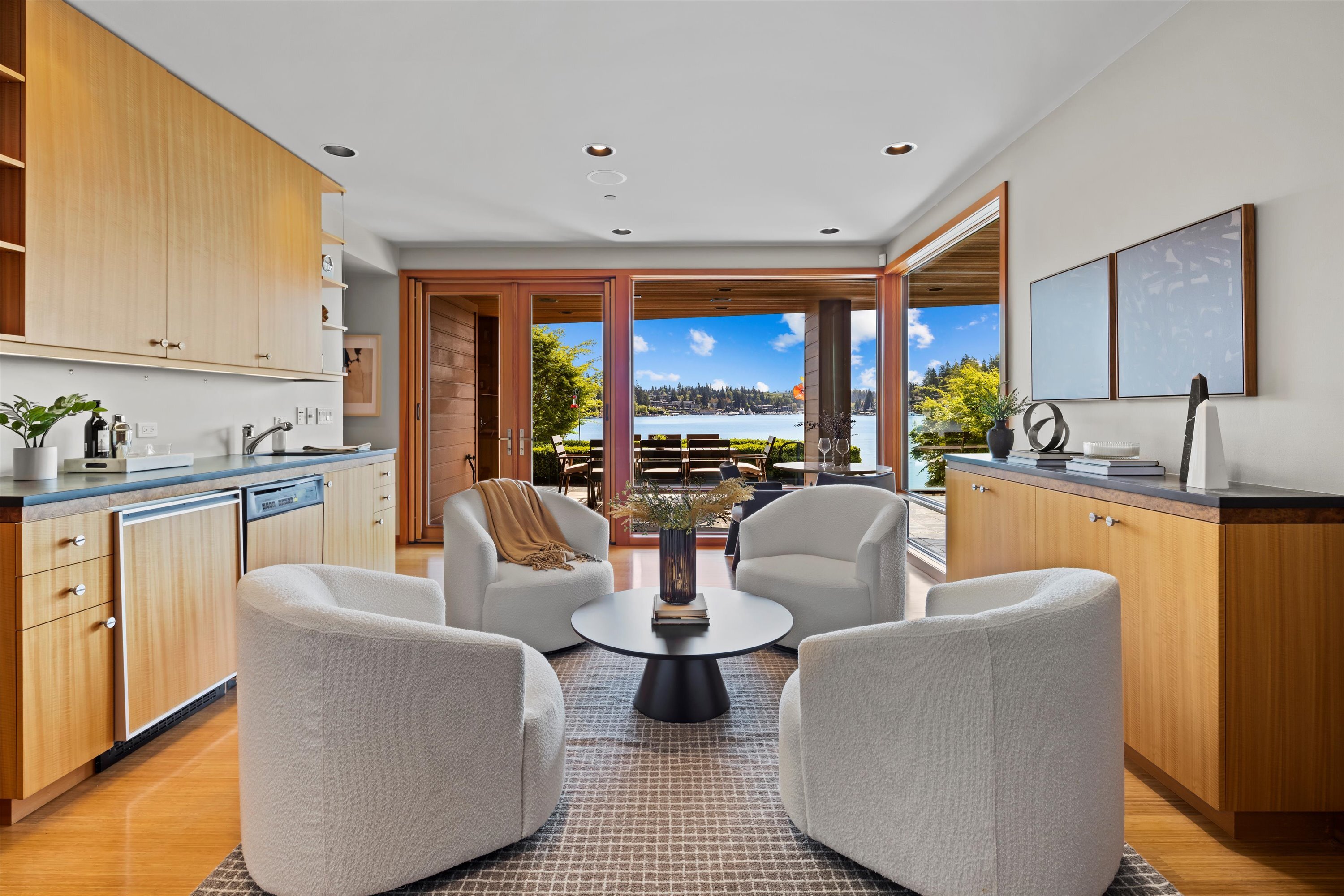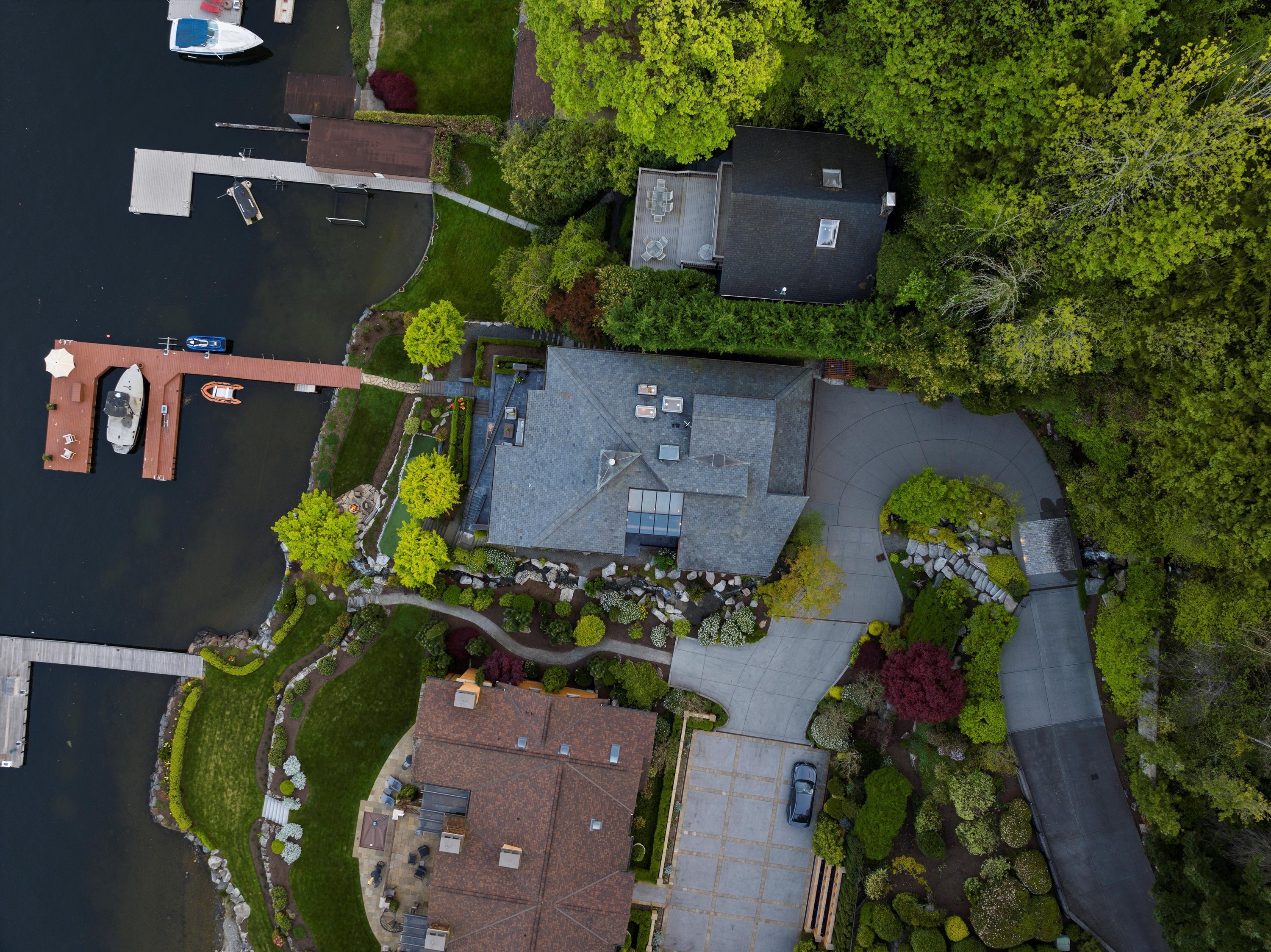 Exceptional Meydenbauer Bay south-facing waterfront work of art! Captivating views of Mt Rainier, Bellevue & the glistening waters of Lk WA. Architectural masterpiece w/cedar ceilings, walls of windows & open, light-filled floorplan. 5,580SF w/5BRs & 4BAs & view deck perfect for entertaining. Chef’s island kitchen open to living areas - all w/ exceptional lake views. Primary w/deck & spa. 2nd kitchen, wine cellar, sauna, work/flex rm & patio w/built-in BBQ. Lush grounds w/incredible waterfall, lakeside firepit & putting green. 87’ dock w/multiple lifts. A+ location 2 mins to downtown Bellevue, parks & top rated schools. Curated for effortless living & unforgettable moments, a truly extraordinary retreat where waterfront dreams are realized!