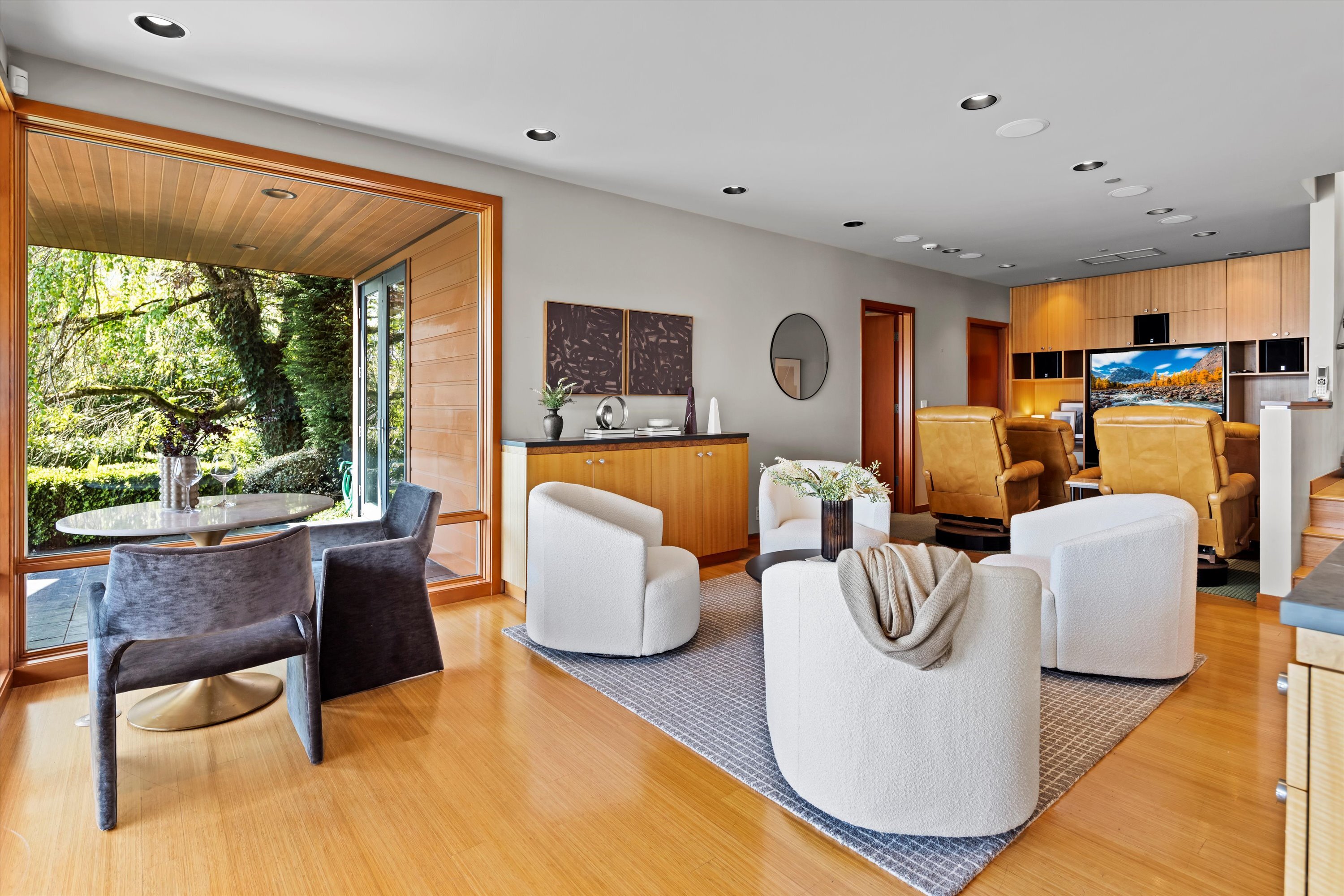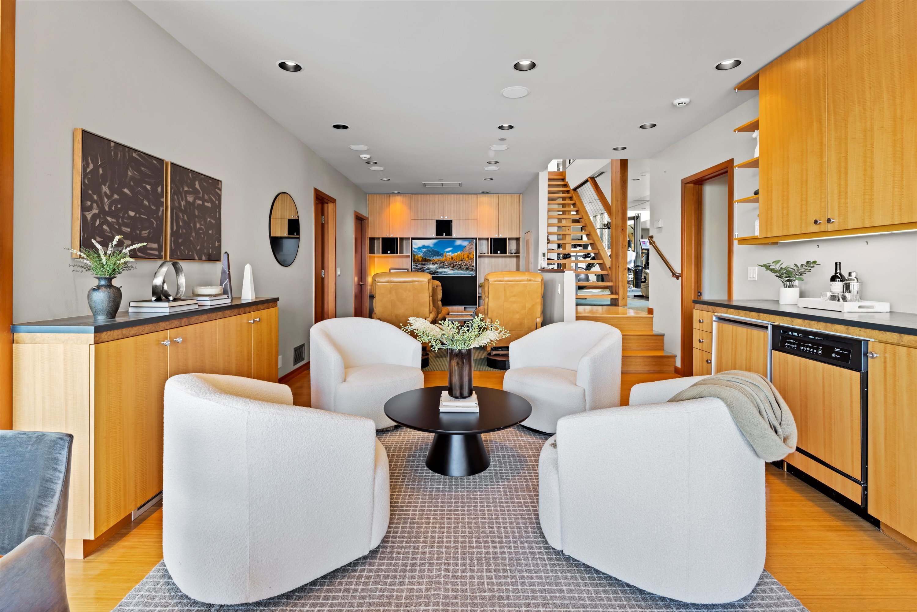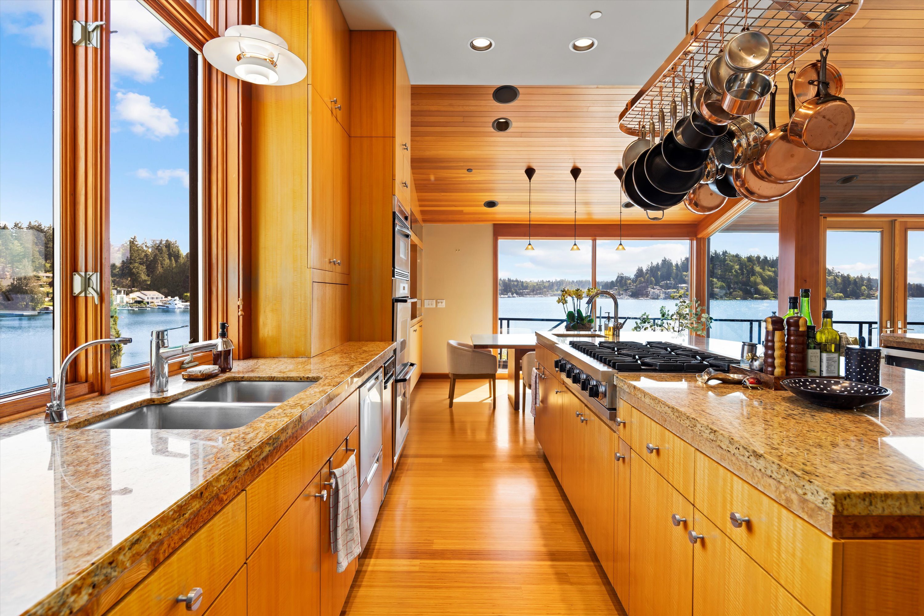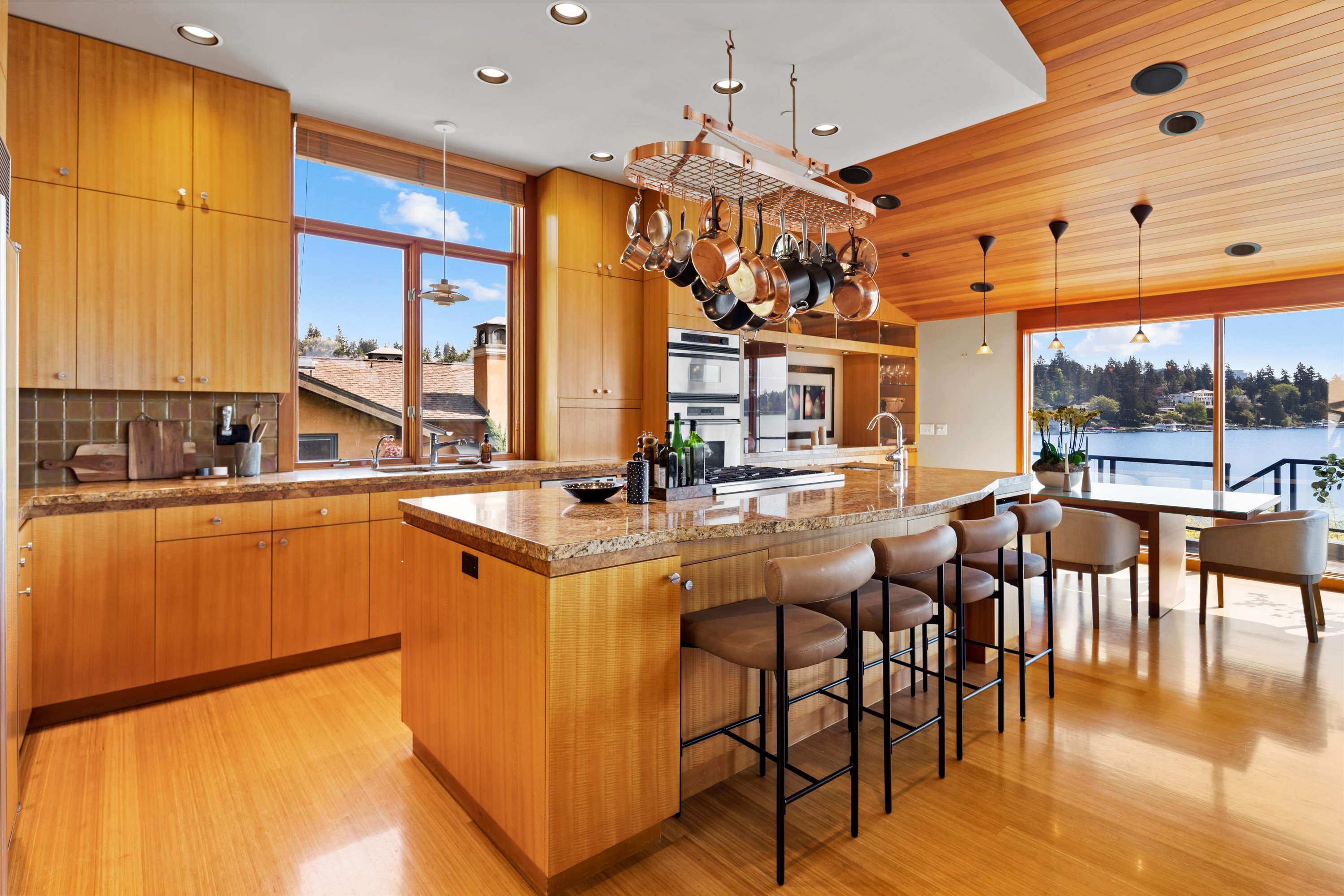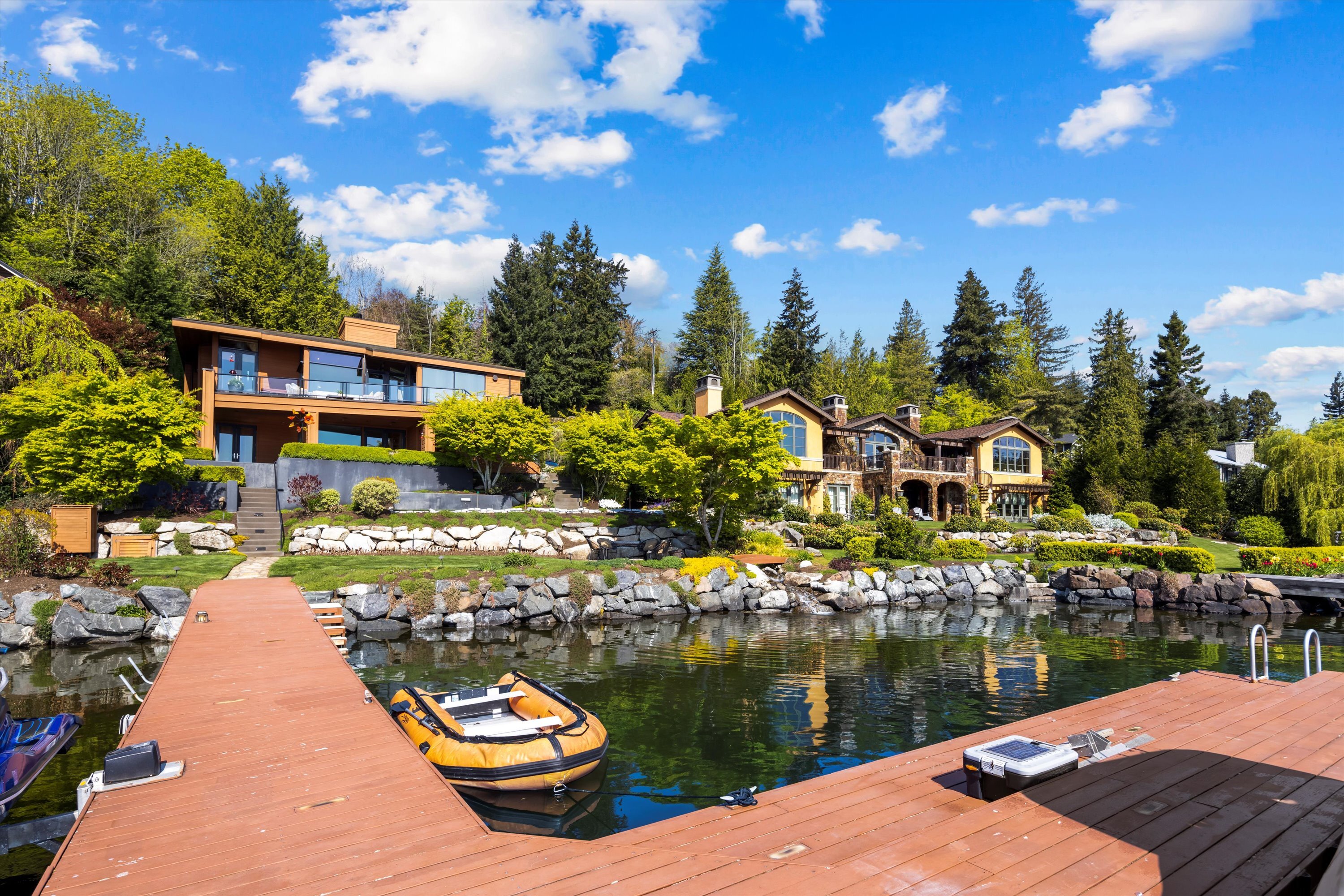 Exceptional Meydenbauer Bay south-facing waterfront work of art! Captivating views of Mt Rainier, Bellevue & the glistening waters of Lk WA. Architectural masterpiece w/cedar ceilings, walls of windows & open, light-filled floorplan. 5,580SF w/5BRs & 4BAs & view deck perfect for entertaining. Chef’s island kitchen open to living areas - all w/ exceptional lake views. Primary w/deck & spa. 2nd kitchen, wine cellar, sauna, work/flex rm & patio w/built-in BBQ. Lush grounds w/incredible waterfall, lakeside firepit & putting green. 87’ dock w/multiple lifts. A+ location 2 mins to downtown Bellevue, parks & top rated schools. Curated for effortless living & unforgettable moments, a truly extraordinary retreat where waterfront dreams are realized!