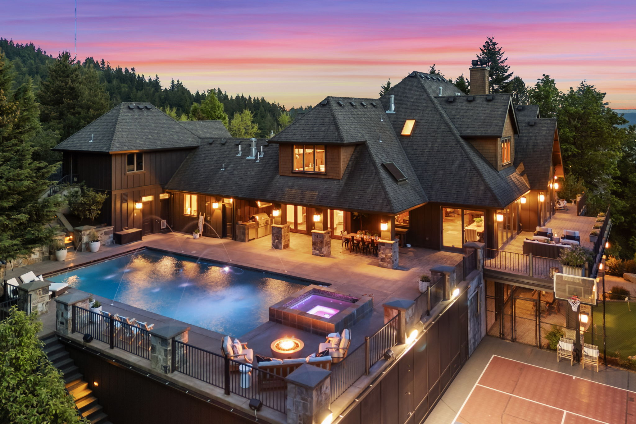 A Timeless Retreat: The Ultimate Resort Experience. Some homes are built, others are woven with the spirit of the land, timeless design, and the promise of a life well-lived. Perched off Skyline in NW Portland, this private resort-like retreat blends rustic elegance with modern luxury. From the moment you arrive, you’ll feel it: the effortless sophistication of a lovely home. Set against a backdrop of sky and lush greenery, this grand residence welcomes you with classic American West aesthetics—handsome wood beams, soaring ceilings, and massive wood-burning fireplaces radiating warmth. The heart of the home is an open, light-filled main level where natural beauty meets refined finishes. The primary suite, perfectly positioned on the main level, is a serene escape with spa-like luxury and peaceful views. Step outside to your private oasis. A shimmering pool, pickleball court, sport court, putting green, & bocce ball court offer endless entertainment. Make a pie from your fruit trees and enjoy the simple joy of homegrown bounty. Designed for effortless maintenance, this estate offers resort-style living without the upkeep. Whether enjoying fireside whiskey, private wine cellar dinners, workouts in your home gym, or tranquil mornings with rustling trees as company, this home lives as beautifully as it looks. Secluded yet minutes from Portland, Beaverton & the Silicon Forest Hi-tech corridor, this estate is a rare blend of sophistication and livability. It’s more than a home—it’s a legacy. Schedule your private showing today and experience this extraordinary retreat.