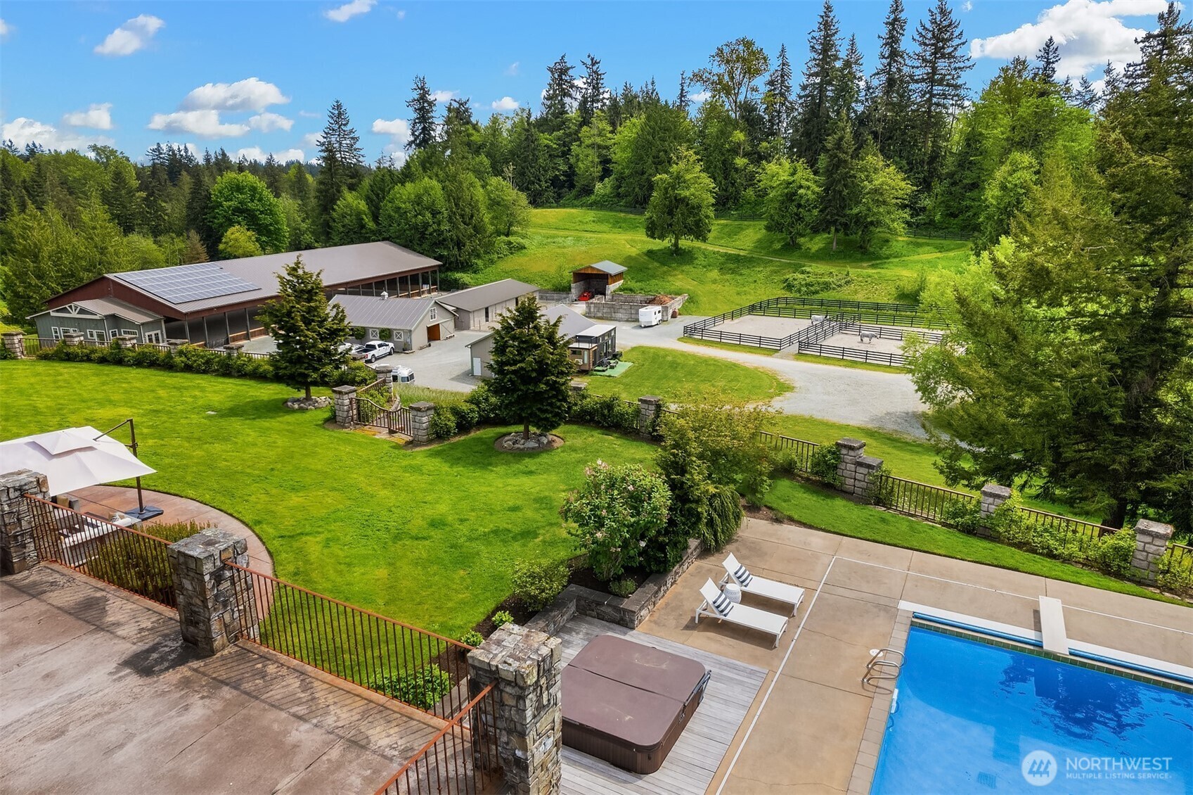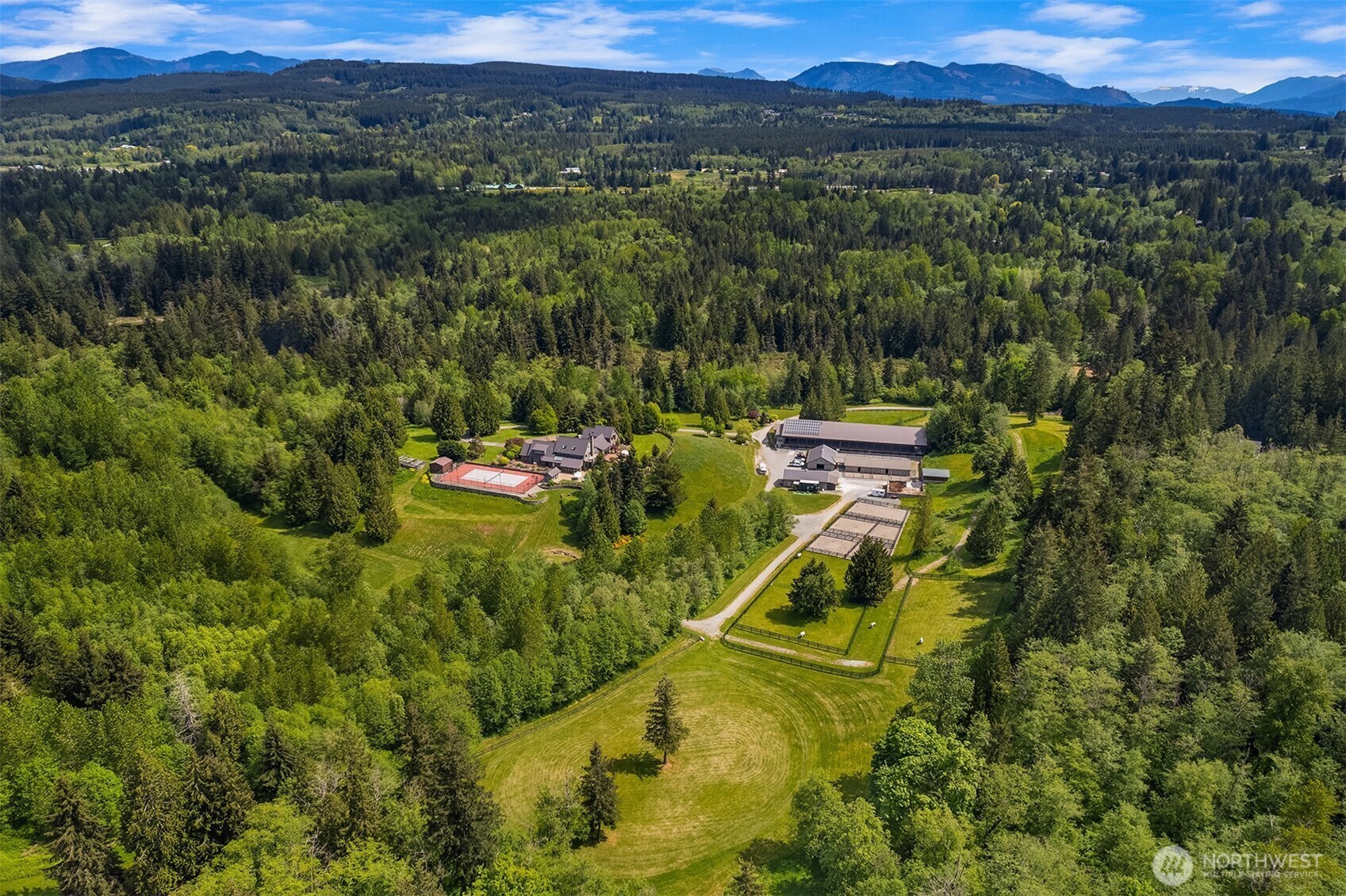 Rare Offering:Extraordinary estate blends refined luxury w/ world-class equestrian amenities.Behind a gated entrance the tree-lined drive w/ 4-season color welcomes you.A true oasis for humans & horses alike.Versatile floor plan tailored to modern living accommodates a range of lifestyles. Soaring ceilings, sun-filled interiors & expansive windows frame breathtaking views.Equestrians will appreciate state-of-the-art training—3 barns, covered arena, jump field for year-round cross-training,mud-free turnouts & scenic riding trails. Whether basking poolside, playing court-side or relaxing fireside, comfort, elegance & excellence awaits.A legacy estate for generations.Move-in ready w/ major renovations & upgrades since 2020. Appraisal available