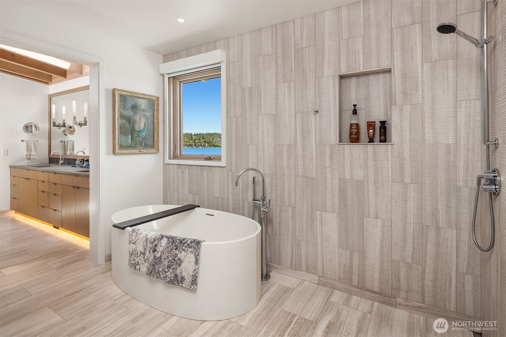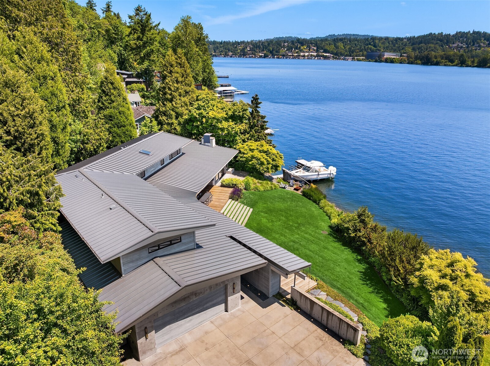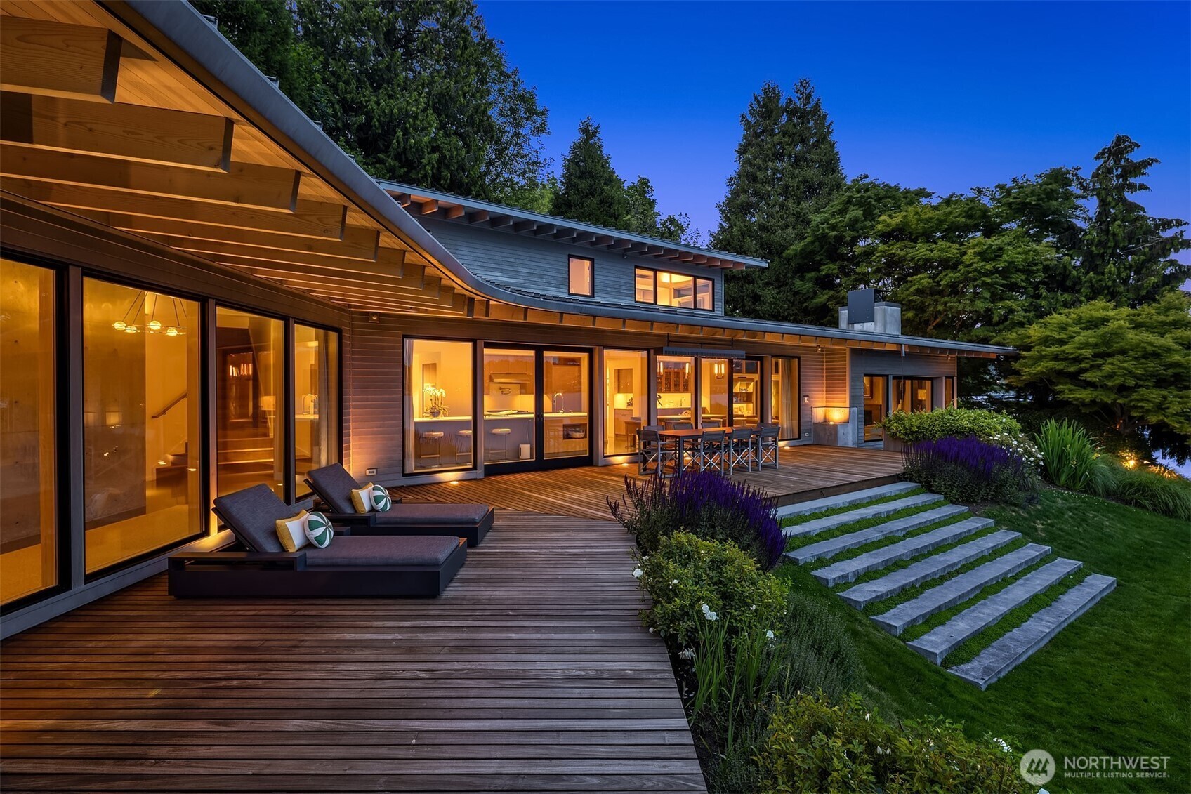 A flawless architectural masterpiece by SKB Architects, brilliantly blending natural elements with indoor-outdoor living. This home offers an unmatched modern living experience, with a masterful design that optimizes this expansive ½-acre level lot. With 168' of no-bank waterfront, deep-water moorage, and a private dock, it offers the ultimate waterfront lifestyle. Floor-to-ceiling windows frame sweeping, serene views of Lake Washington and Mt. Rainier, creating a tranquil ambiance. A wide IPE deck w/ large overhangs & space heaters, and an expansive lawn that leads directly to the water’s edge, enhance the outdoor experience. Designed and constructed to the highest standards, this exceptional property is a rare opportunity and a must-see.