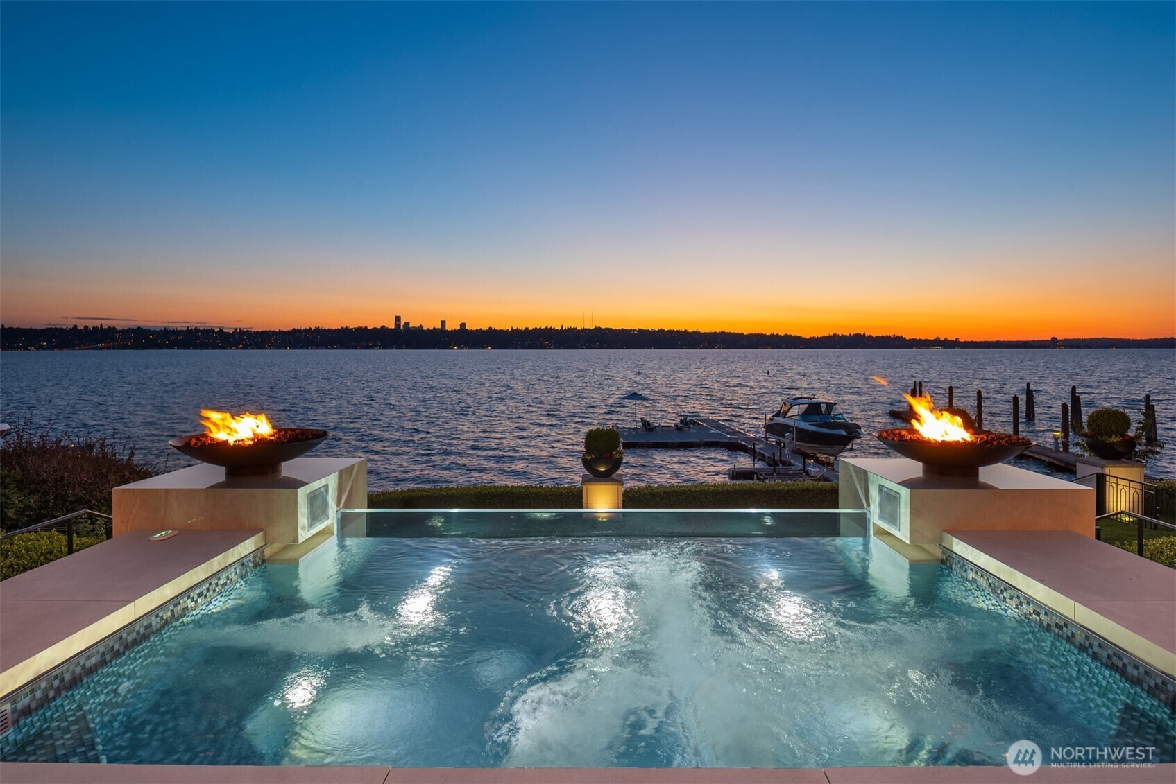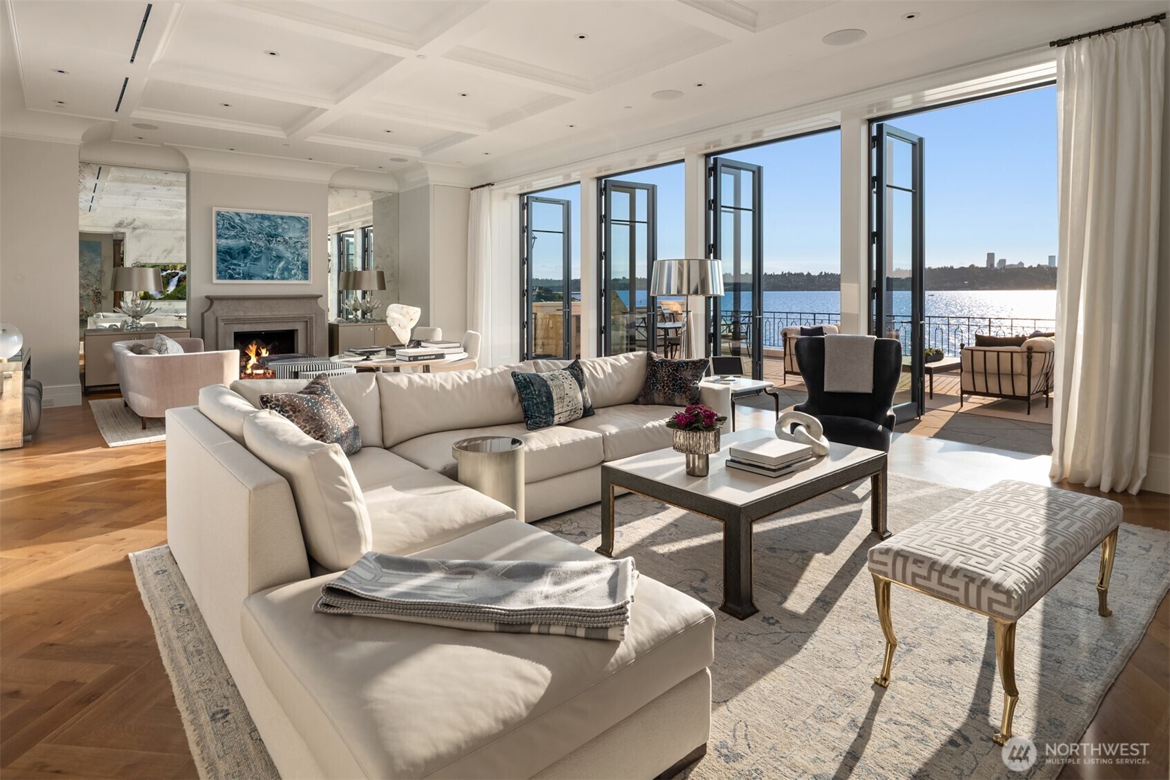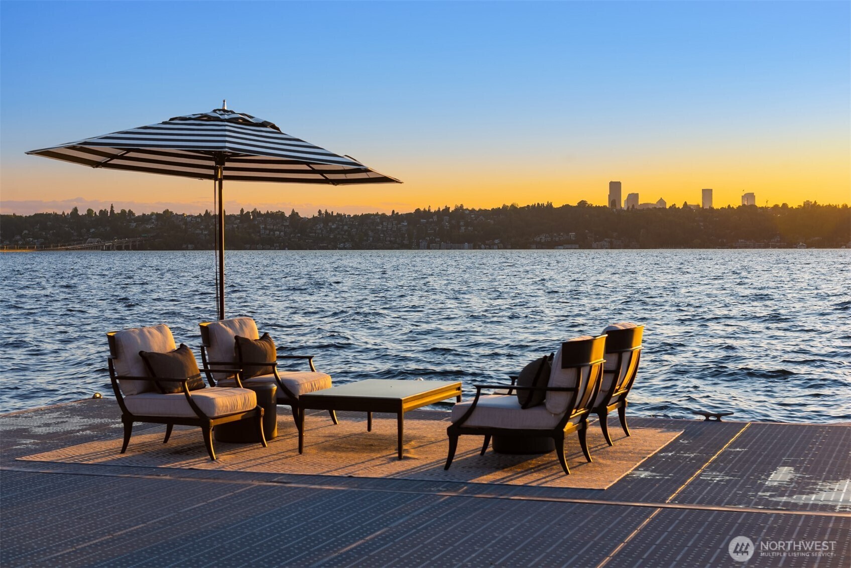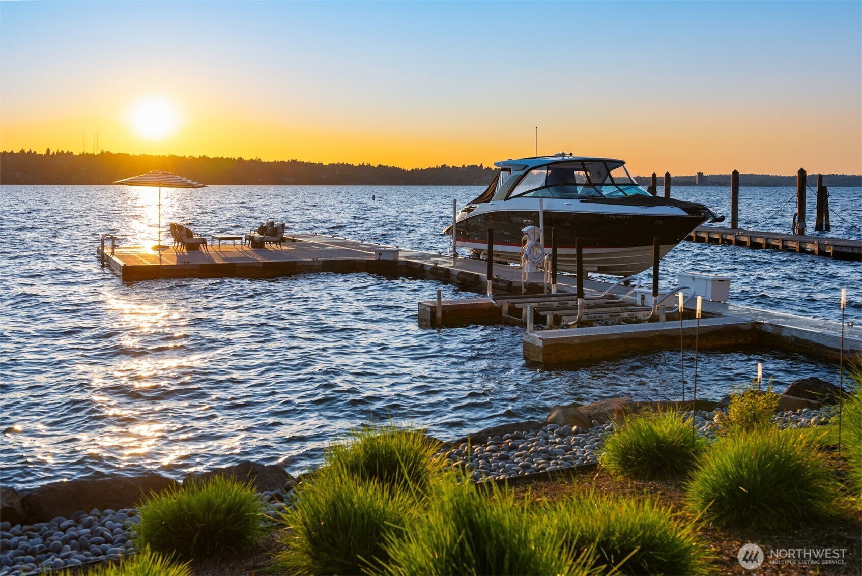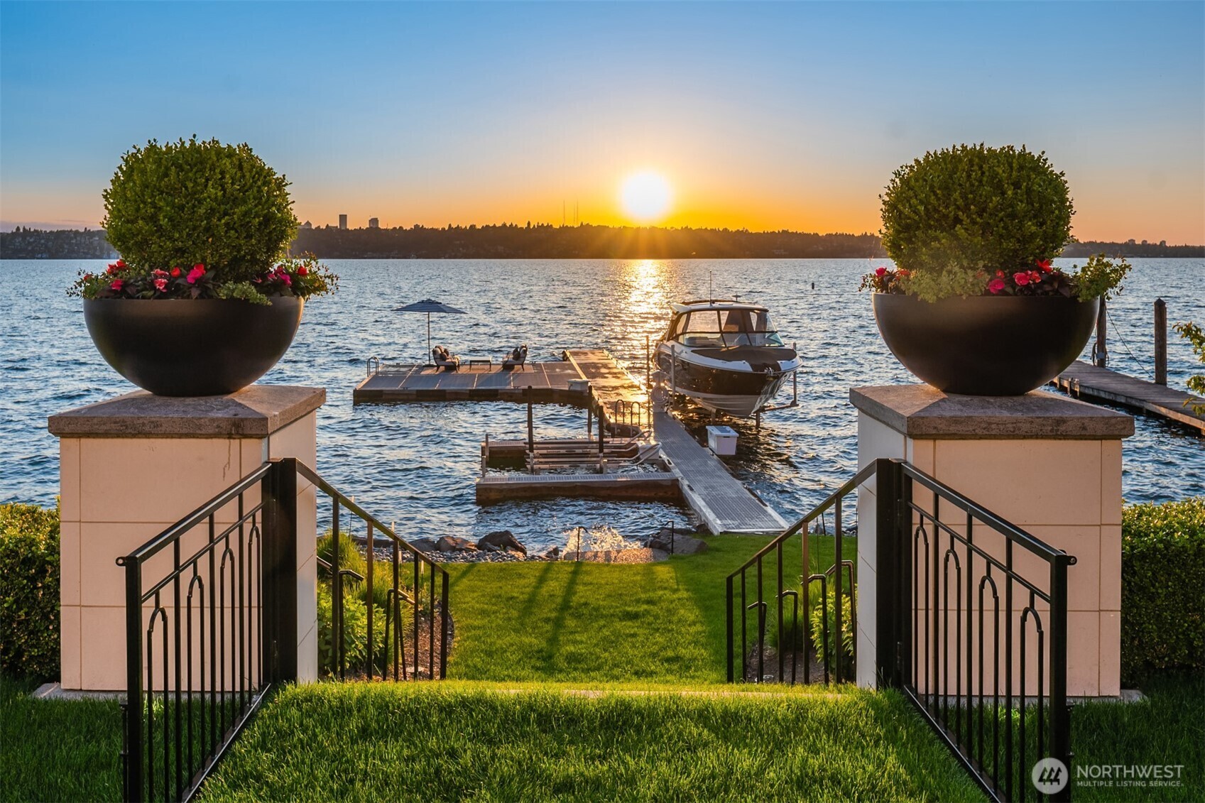 Procured Perfection of unparalleled quality, a European Modern on Mercer Island’s coveted northend. 102 ft of lowbank waterfront & gated street-to-water privacy just a short stroll to town. A collaboration of epic execution: Stuart Silk, Toth Construction & Susan Marinello Interiors. Dramatic & distinctive, every detail was curated to a level of sublime excellence. Walls of glass spill out to stone patios showcasing the sparkling Seattle skyline & bold golden sunsets. Manicured grounds with multitudes of white hydrangeas dancing at the water’s edge. 100-ft yachtsman's dream dock boasts rare entertaining platform that lowers into the water. Cutting-edge tech smart. 5 ensuite bedrooms, gym at lake level, elevator…this 2021 build has it all!