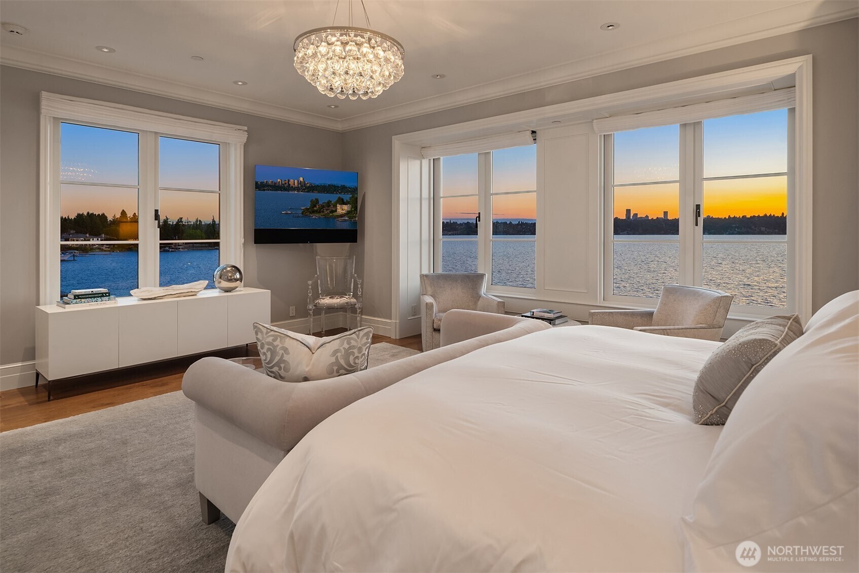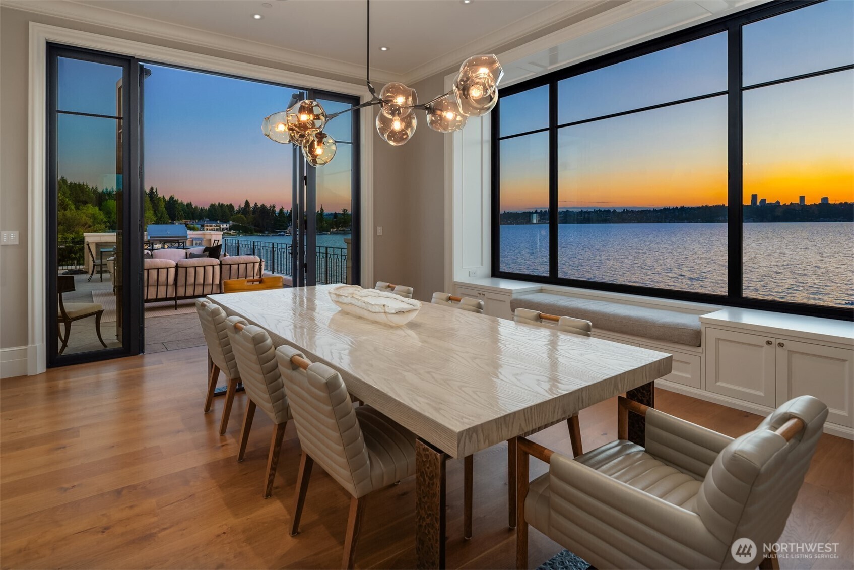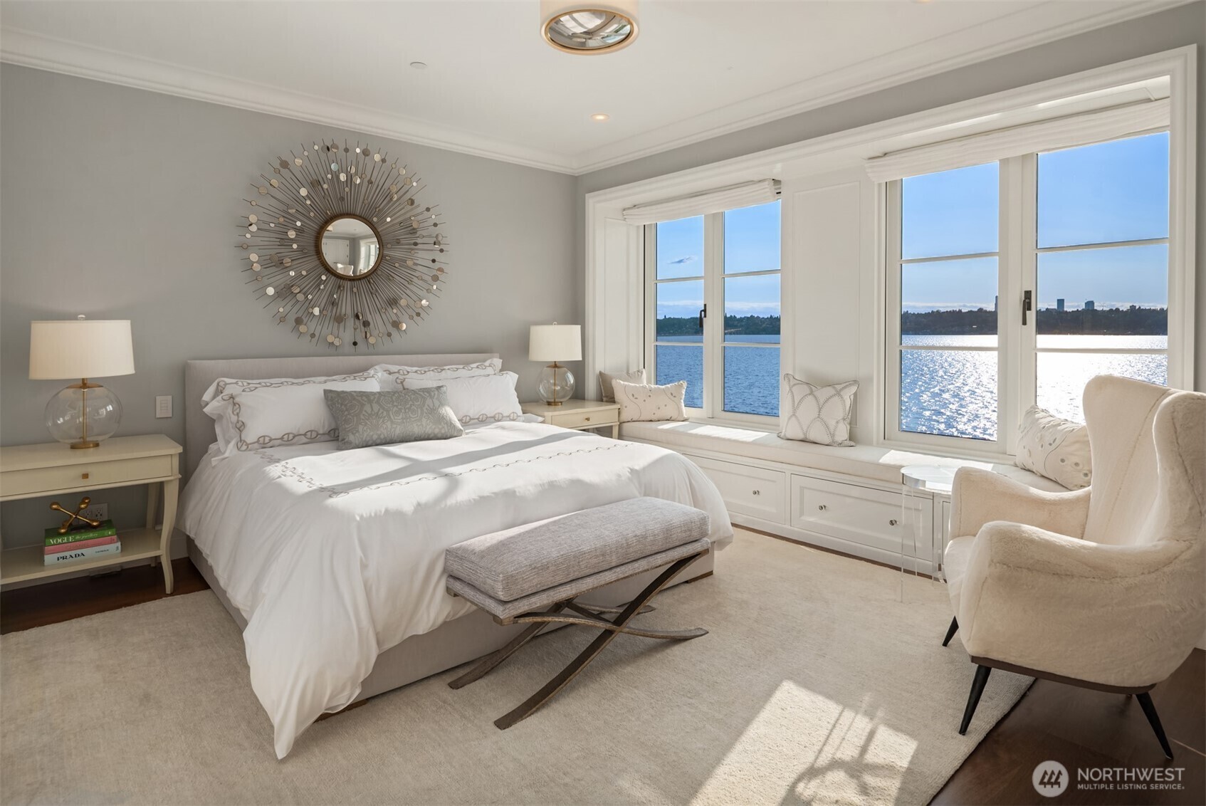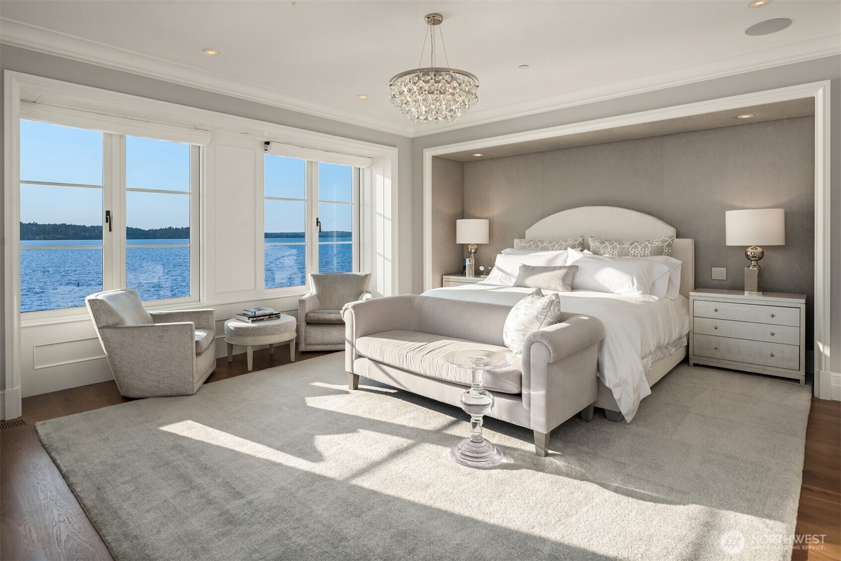 Procured Perfection of unparalleled quality, a European Modern on Mercer Island’s coveted northend. 102 ft of lowbank waterfront & gated street-to-water privacy just a short stroll to town. A collaboration of epic execution: Stuart Silk, Toth Construction & Susan Marinello Interiors. Dramatic & distinctive, every detail was curated to a level of sublime excellence. Walls of glass spill out to stone patios showcasing the sparkling Seattle skyline & bold golden sunsets. Manicured grounds with multitudes of white hydrangeas dancing at the water’s edge. 100-ft yachtsman's dream dock boasts rare entertaining platform that lowers into the water. Cutting-edge tech smart. 5 ensuite bedrooms, gym at lake level, elevator…this 2021 build has it all!