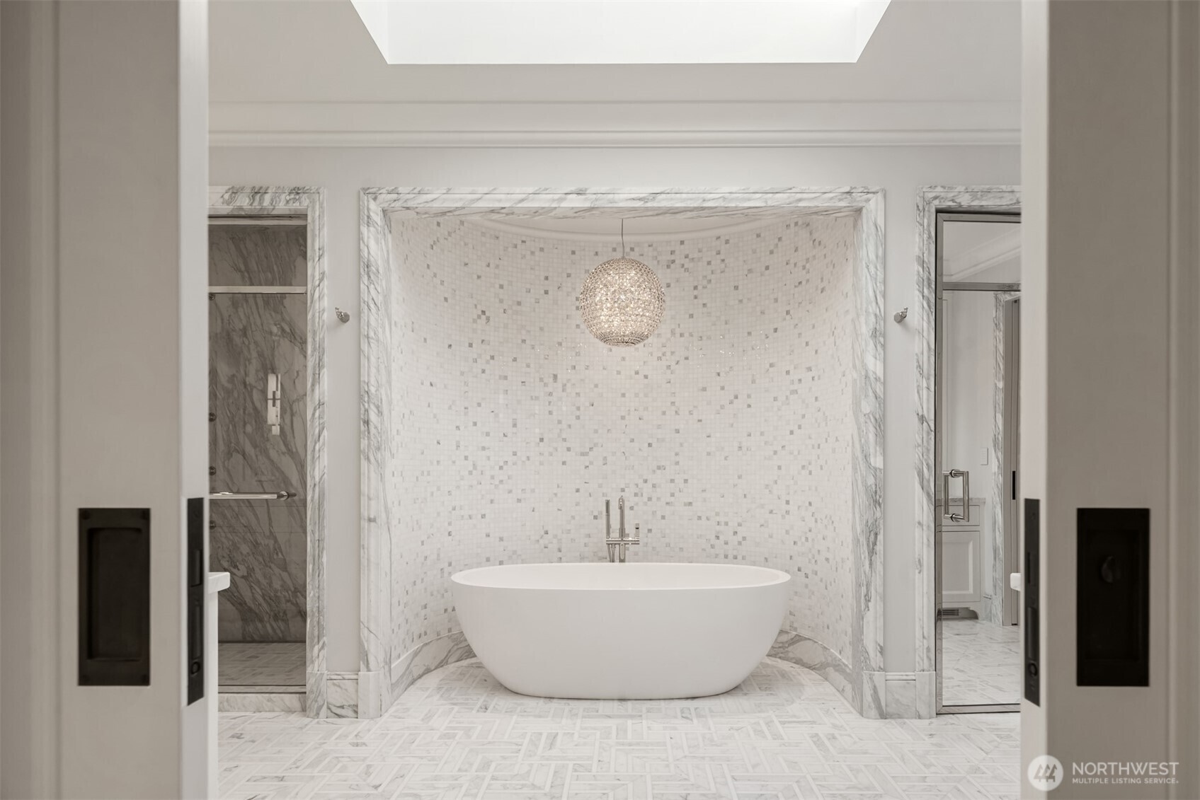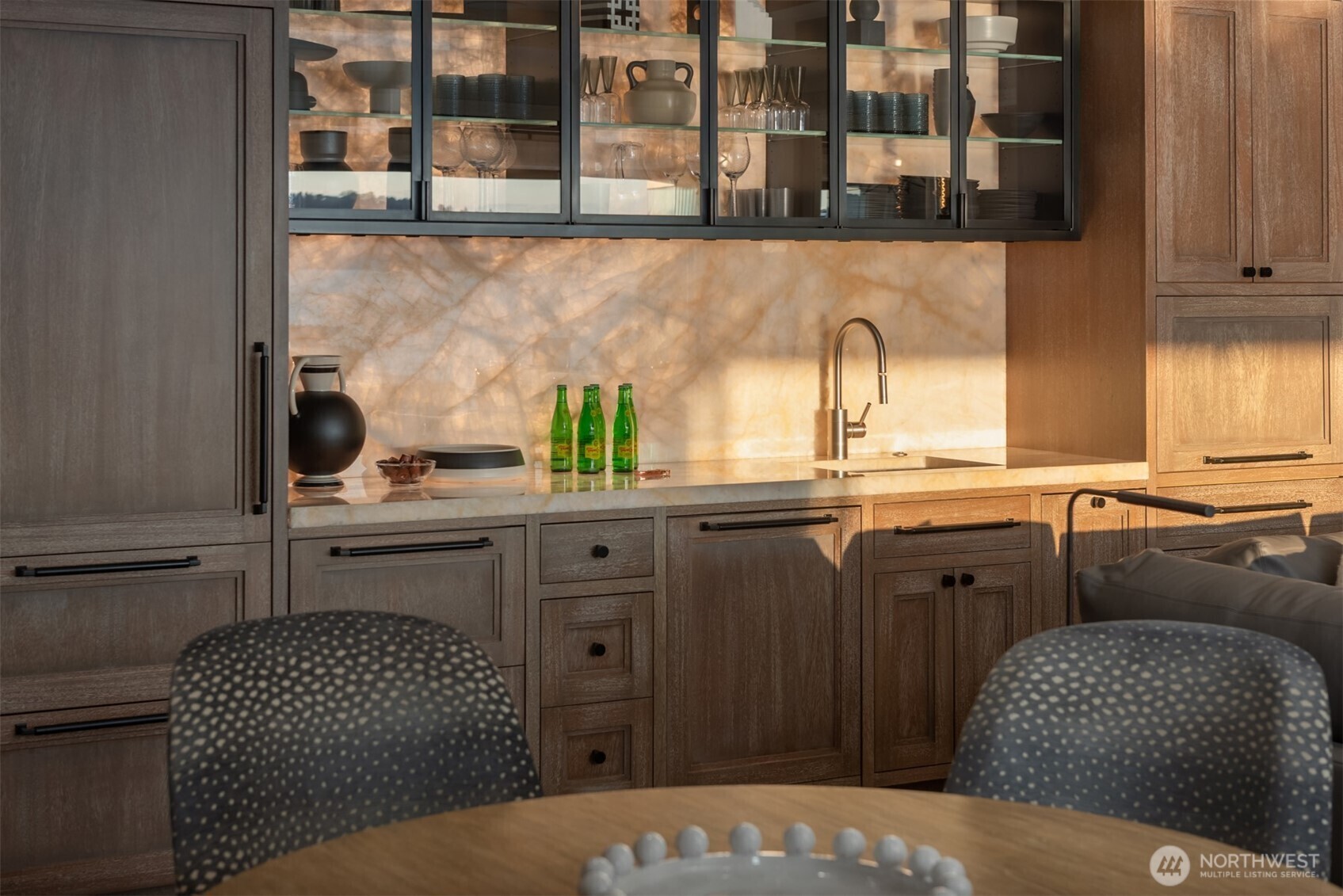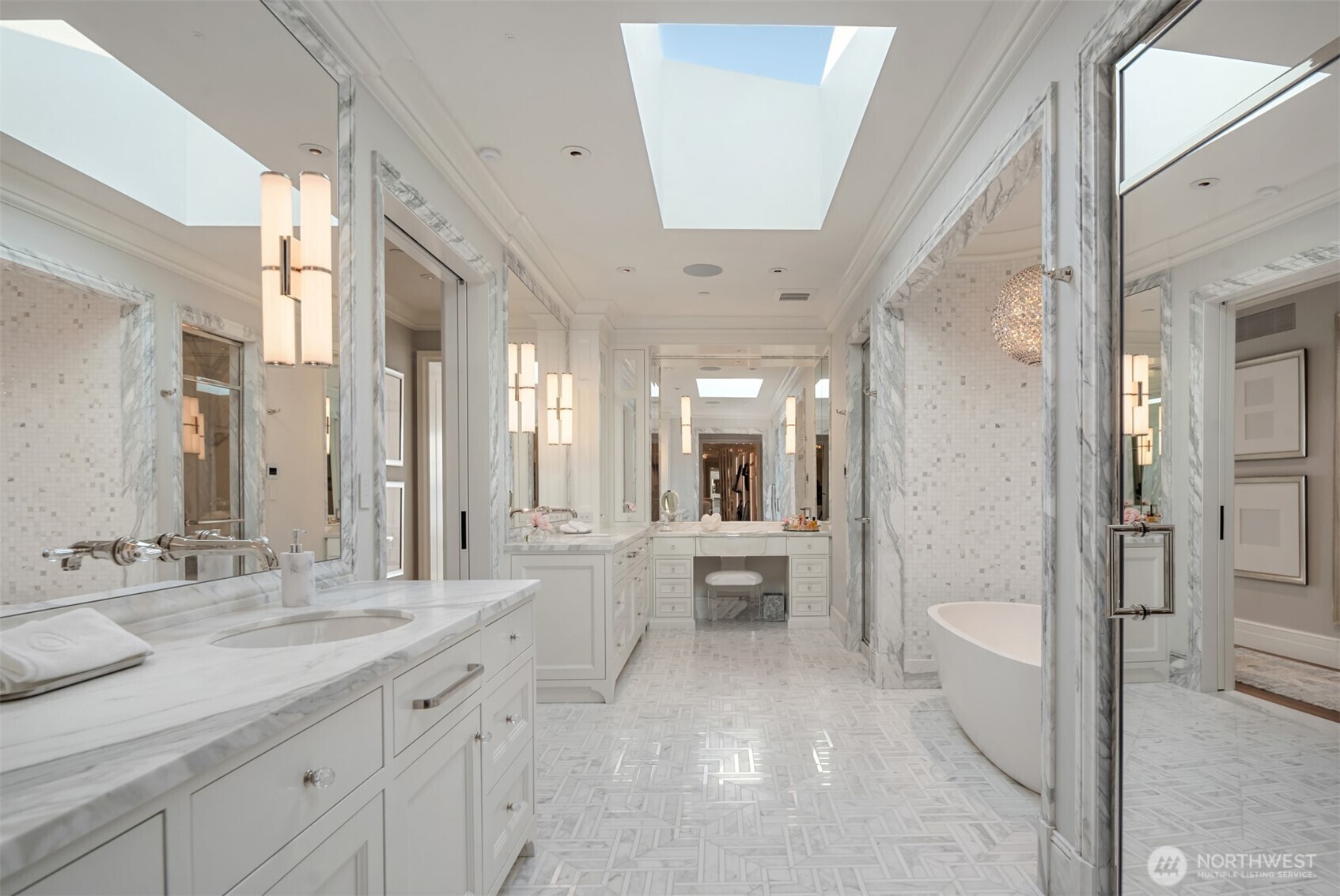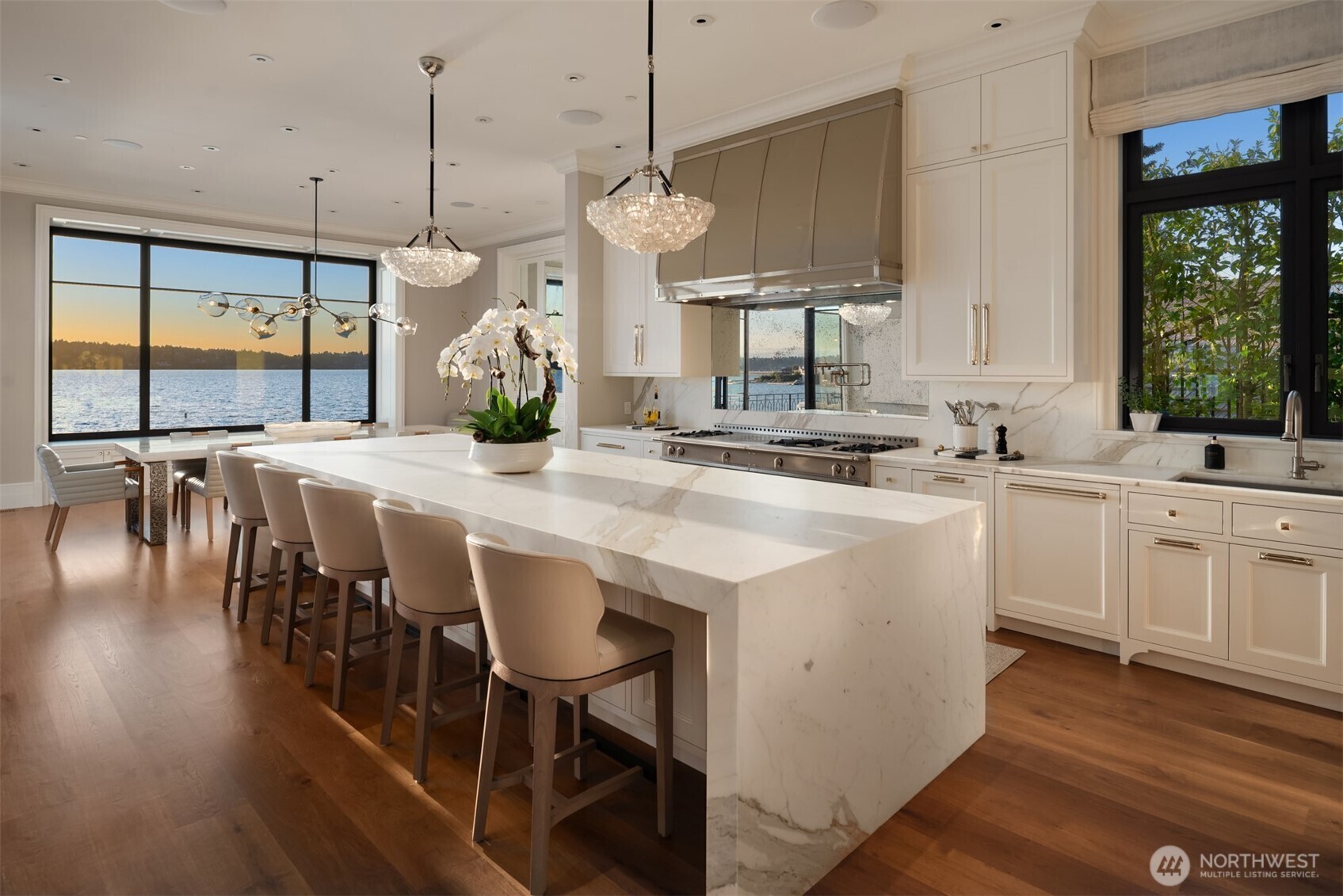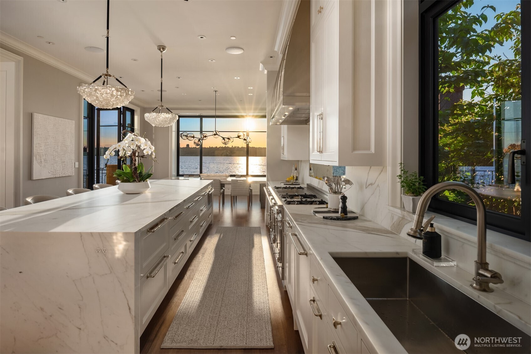 Procured Perfection of unparalleled quality, a European Modern on Mercer Island’s coveted northend. 102 ft of lowbank waterfront & gated street-to-water privacy just a short stroll to town. A collaboration of epic execution: Stuart Silk, Toth Construction & Susan Marinello Interiors. Dramatic & distinctive, every detail was curated to a level of sublime excellence. Walls of glass spill out to stone patios showcasing the sparkling Seattle skyline & bold golden sunsets. Manicured grounds with multitudes of white hydrangeas dancing at the water’s edge. 100-ft yachtsman's dream dock boasts rare entertaining platform that lowers into the water. Cutting-edge tech smart. 5 ensuite bedrooms, gym at lake level, elevator…this 2021 build has it all!