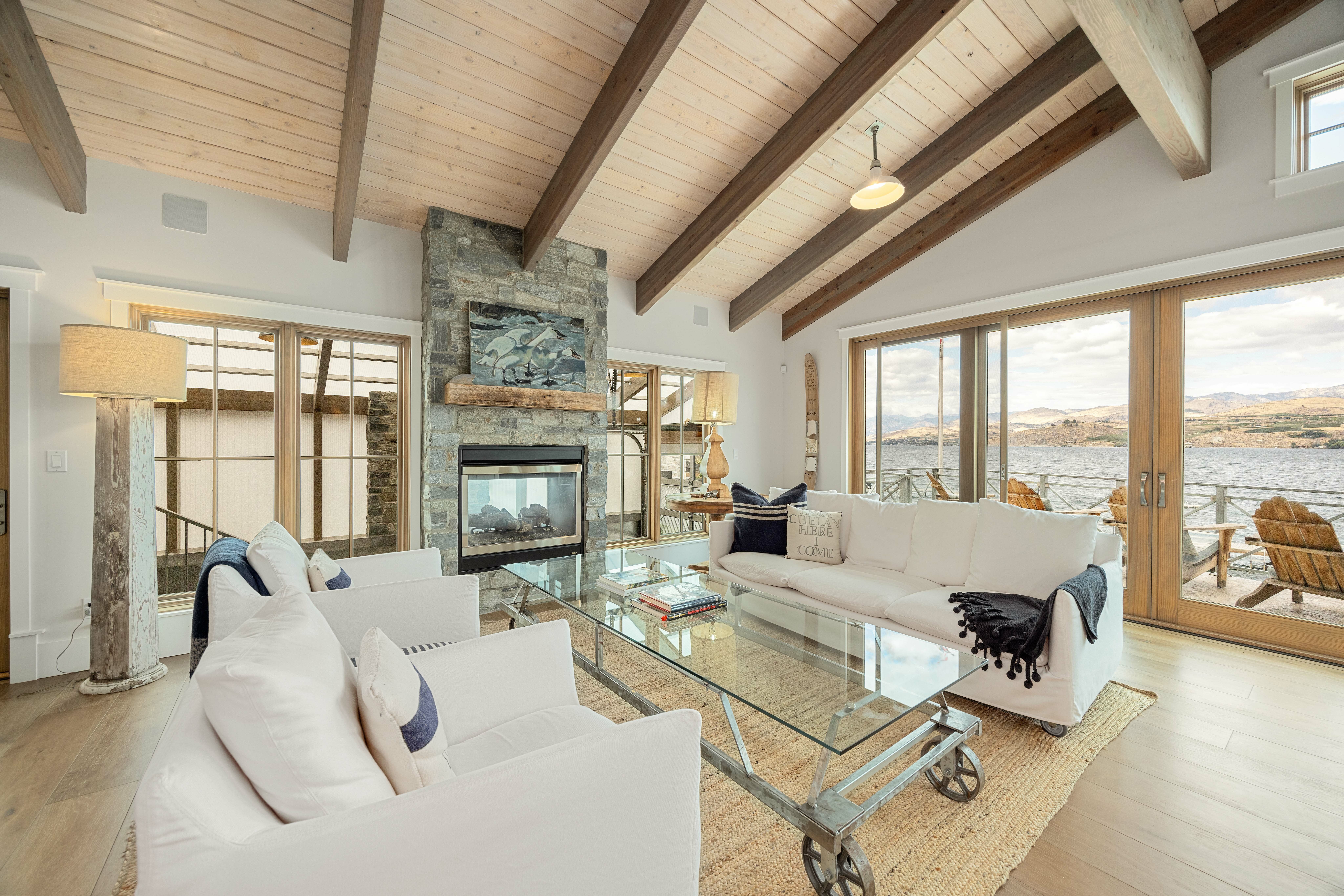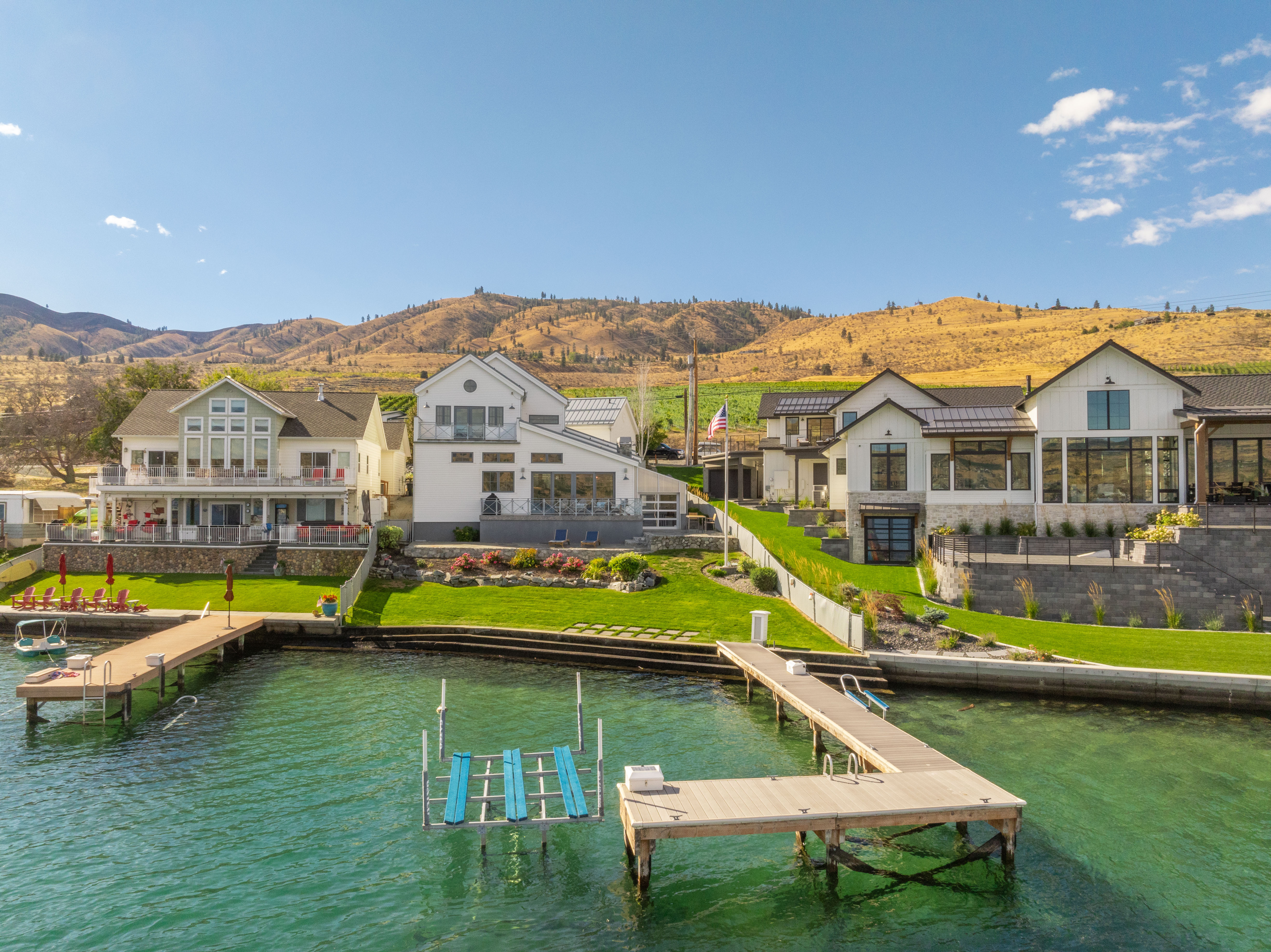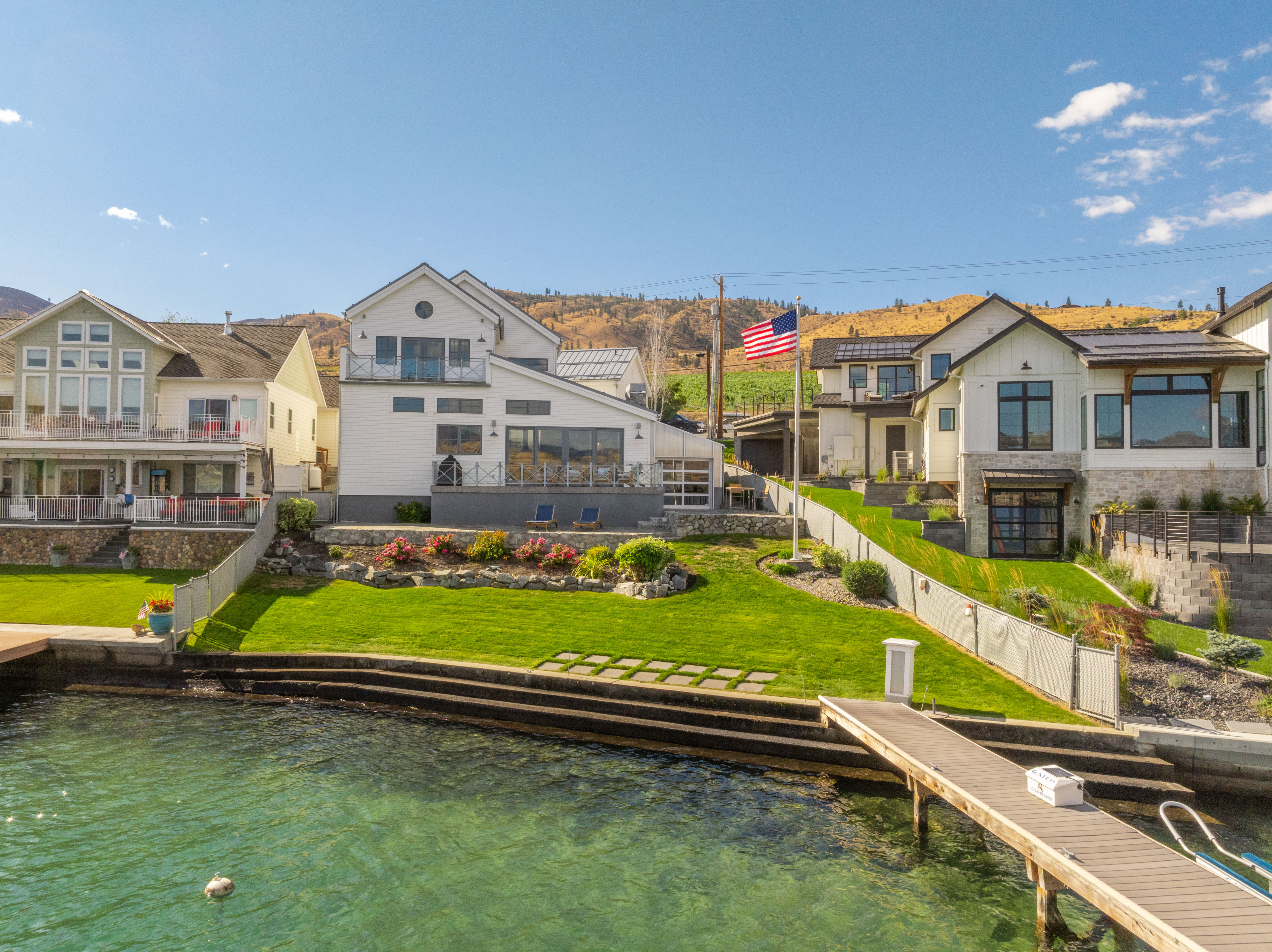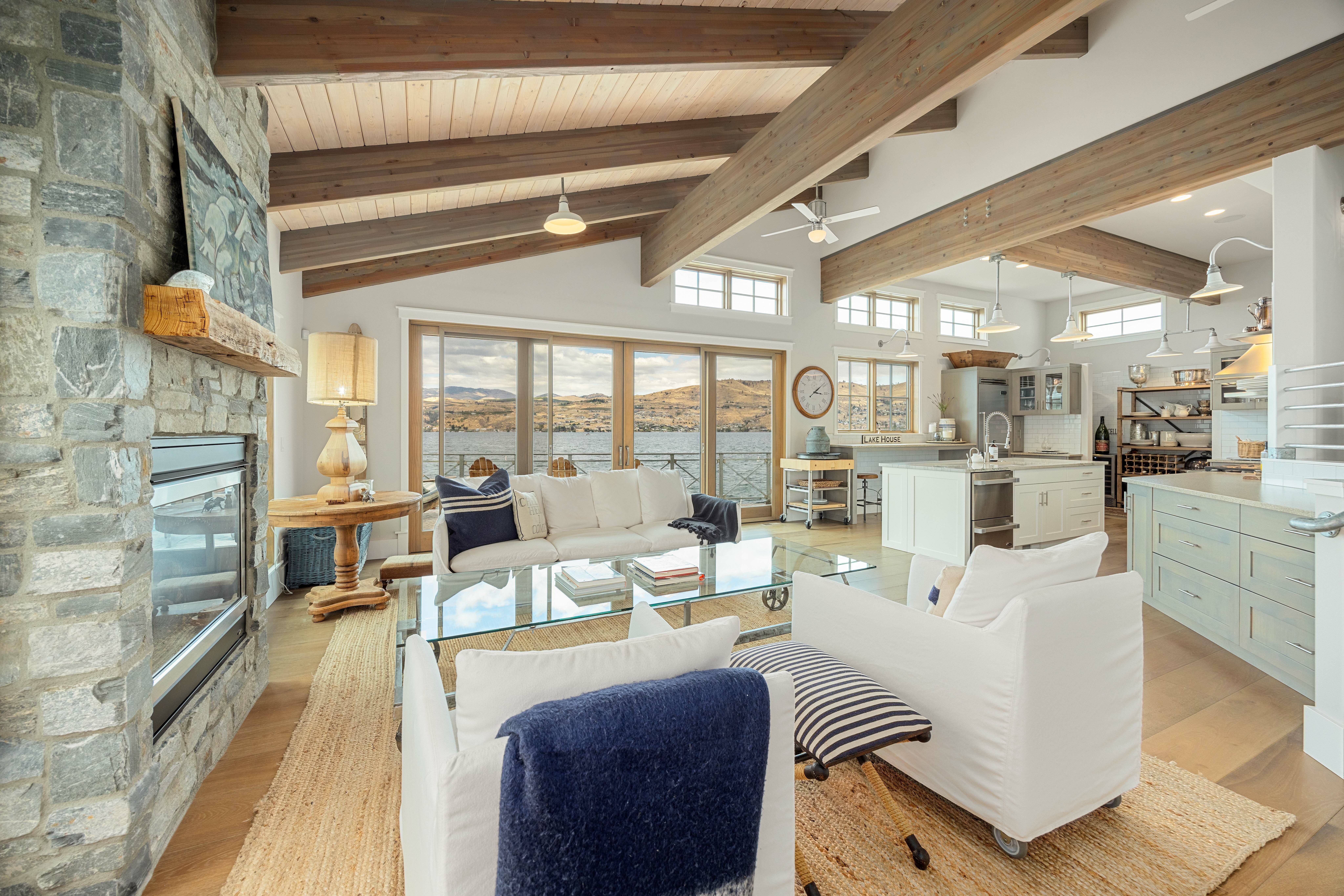Considered one of the purest architectural designs on the sunny S. Shore of Lake Chelan, this MODERN COASTAL house offers 69ft of low-bank waterfront w/ a diverse landscape & patios for entertaining. Built in 2012, this 2-story 4bed/2.5bath, 2,614SF home + 209SF 1bed/1bath casita embodies breezy beach-inspired aesthetics & seamless layers of rustic wood & zinc elements. Interior invites you w/ soaring 20+ft ceilings, wide plank wood floors, statement lighting, Pella doors/windows, an airy & light-filled great room & a gorgeous chef's kitchen w/ high-end appliances, cabinets, a blend of granite,quartz,limestone counters & open concept pantry. Elegant Primary en-suite embraces a European-inspired wet room w/ floor-to-ceiling tile & balcony.