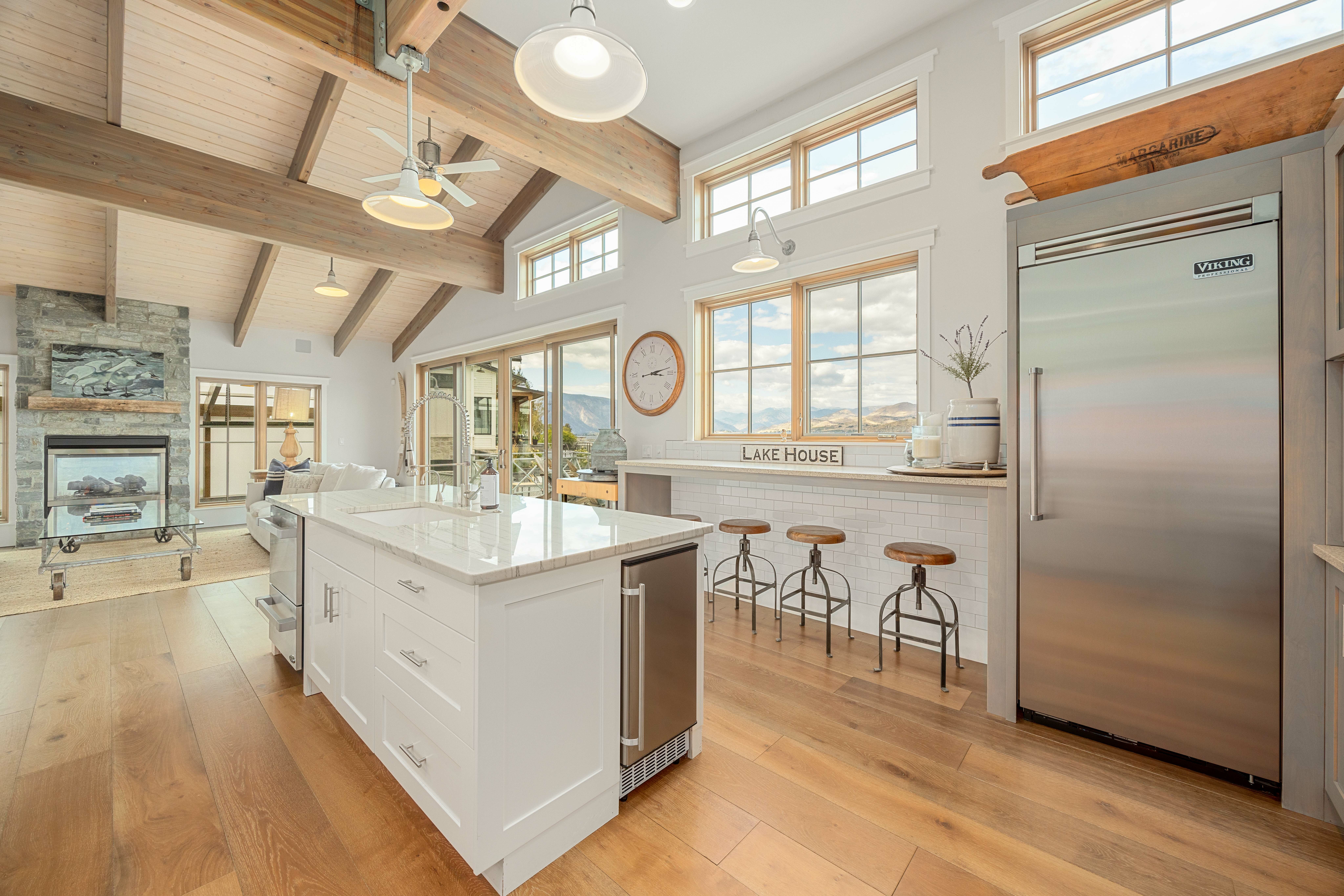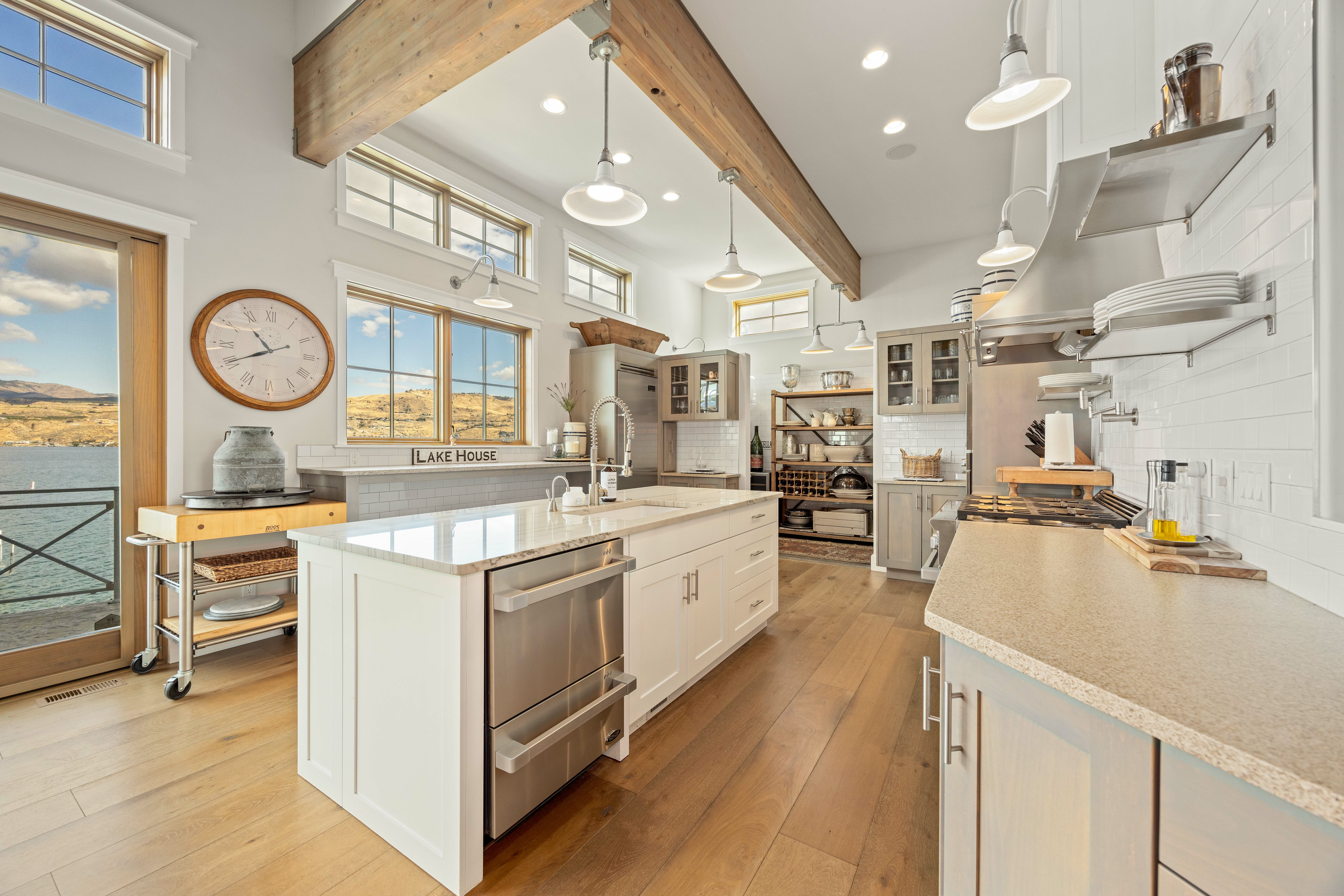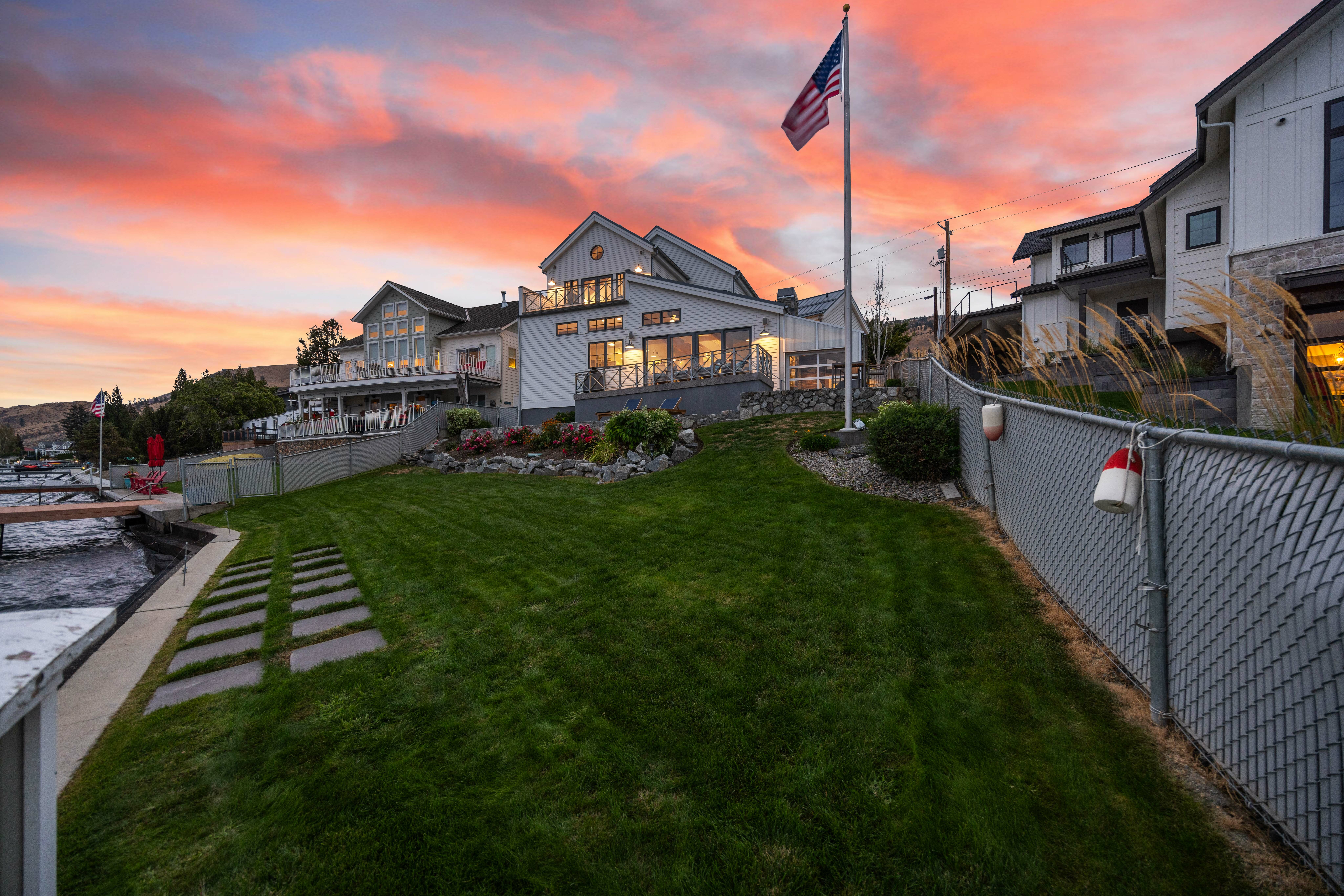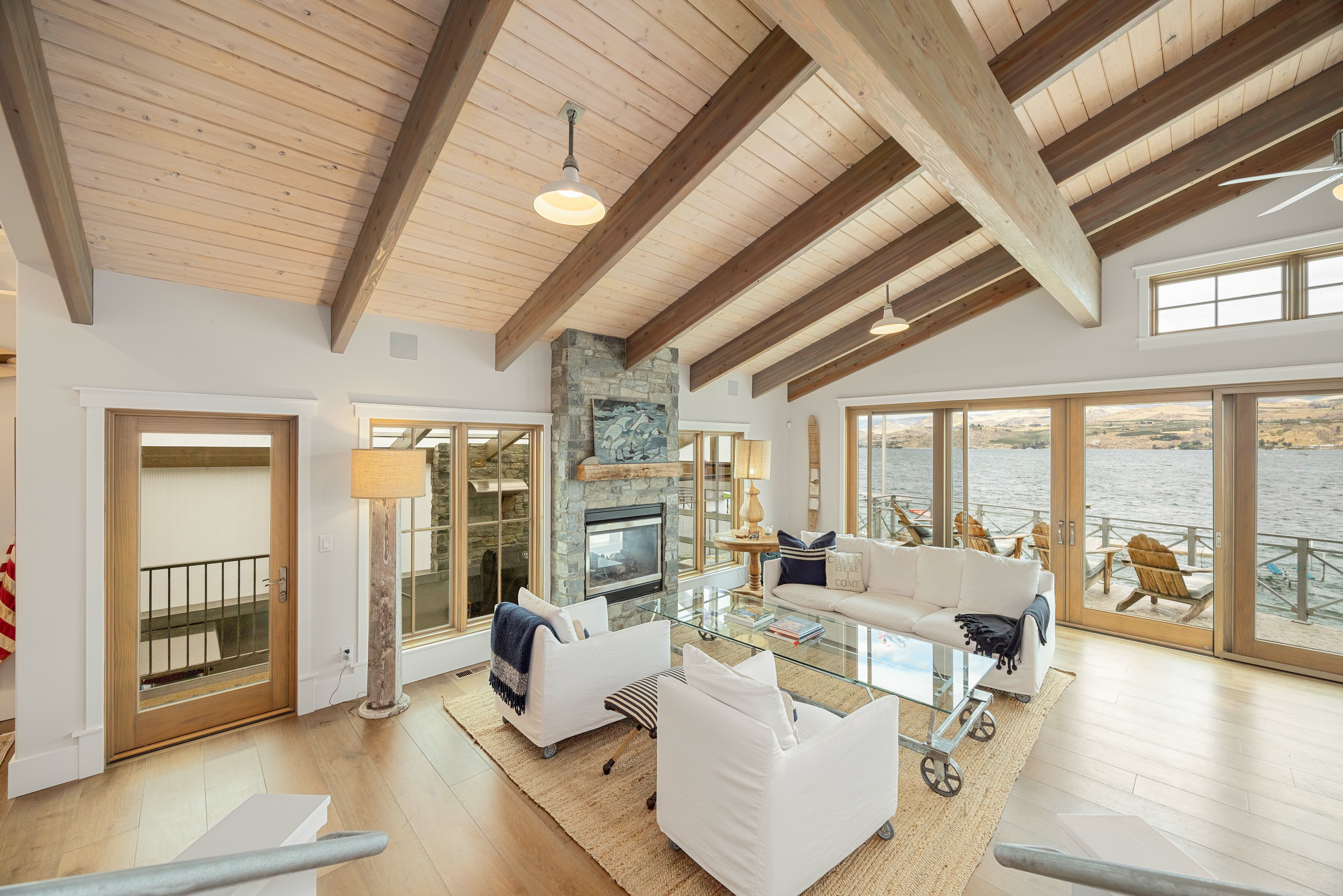 Considered one of the purest architectural designs on the sunny S. Shore of Lake Chelan, this MODERN COASTAL house offers 69ft of low-bank waterfront w/ a diverse landscape & patios for entertaining. Built in 2012, this 2-story 4bed/2.5bath, 2,614SF home + 209SF 1bed/1bath casita embodies breezy beach-inspired aesthetics & seamless layers of rustic wood & zinc elements. Interior invites you w/ soaring 20+ft ceilings, wide plank wood floors, statement lighting, Pella doors/windows, an airy & light-filled great room & a gorgeous chef's kitchen w/ high-end appliances, cabinets, a blend of granite,quartz,limestone counters & open concept pantry. Elegant Primary en-suite embraces a European-inspired wet room w/ floor-to-ceiling tile & balcony.