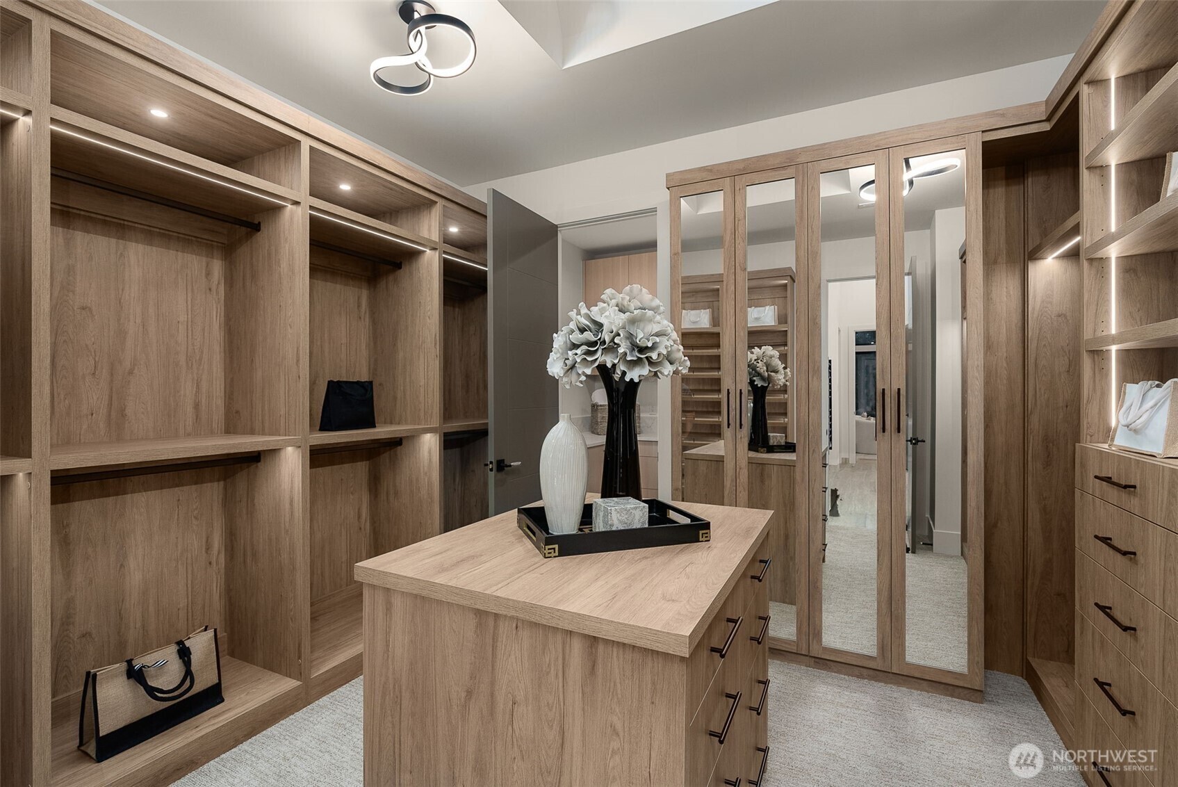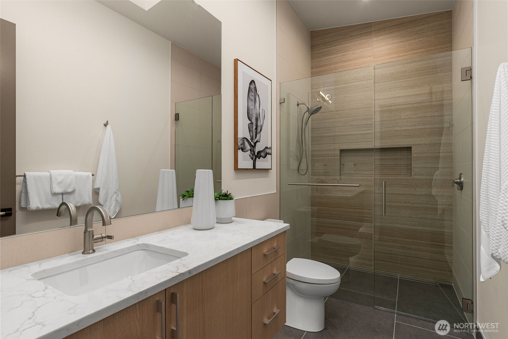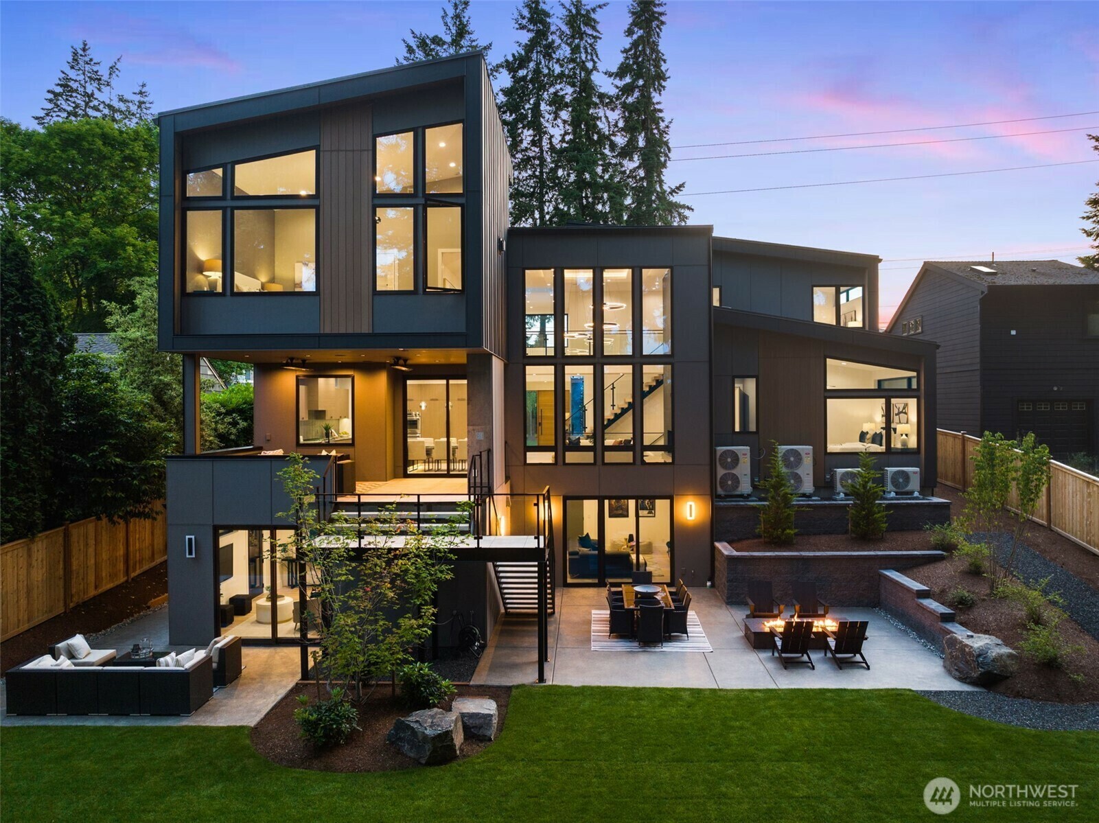A Masterclass in Modern Luxury by Bellshire Homes. This generously scaled showpiece rests on a private, expansive homesite, where design and function flow effortlessly. Soaring 10–20' ceilings, a two-story atrium, and a custom floating staircase define architectural brilliance. The chef’s kitchen stuns with Thermador appliances, Azul Celeste granite, a hidden scullery, and a sleek dining island. Unwind in the spa-inspired primary suite, host in the expansive great room, or relax on the terrace by a custom fire pit. Designed for modern living with a full ADU, smart tech throughout, solar power, and thoughtfully curated materials. Framed by towering evergreens, the backyard is a private retreat for everyday moments and unforgettable evenings.