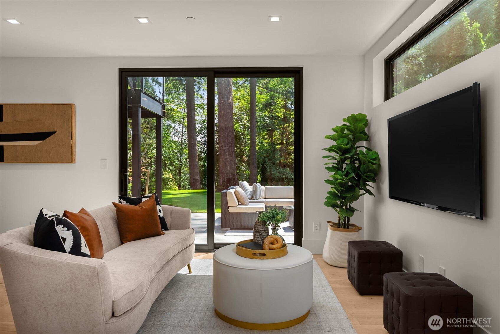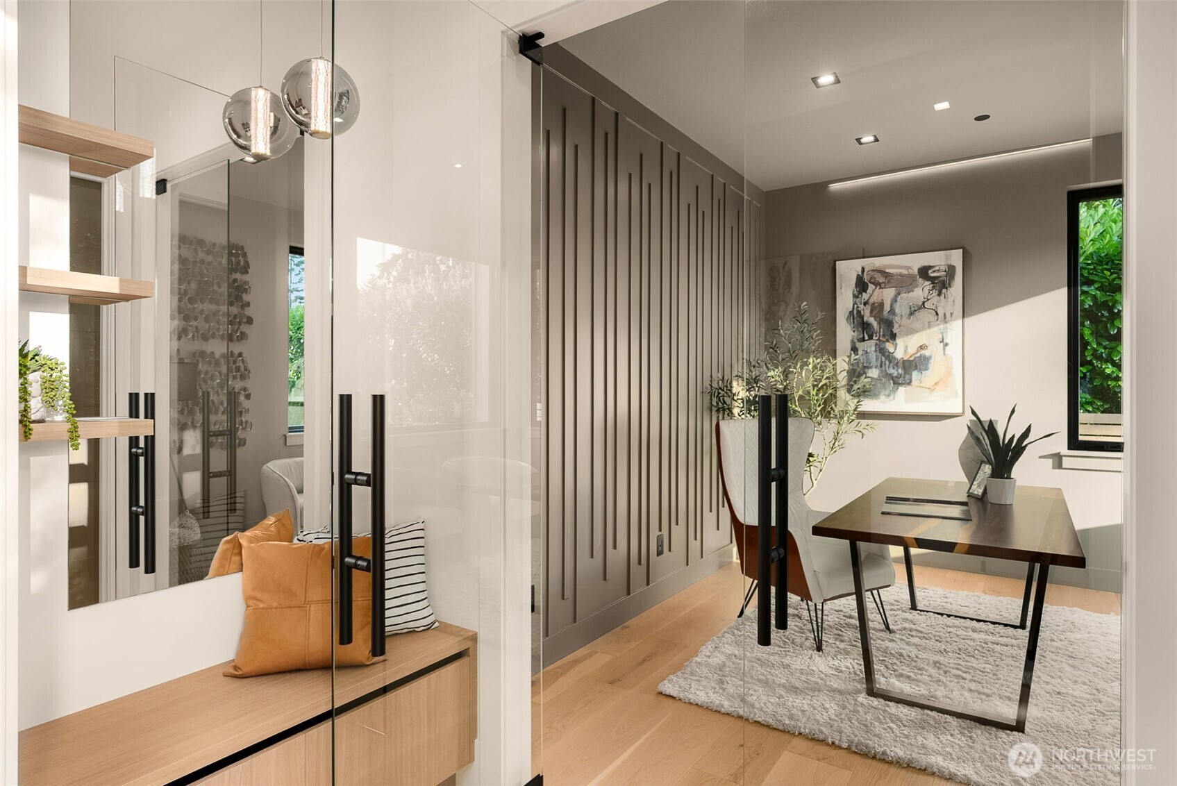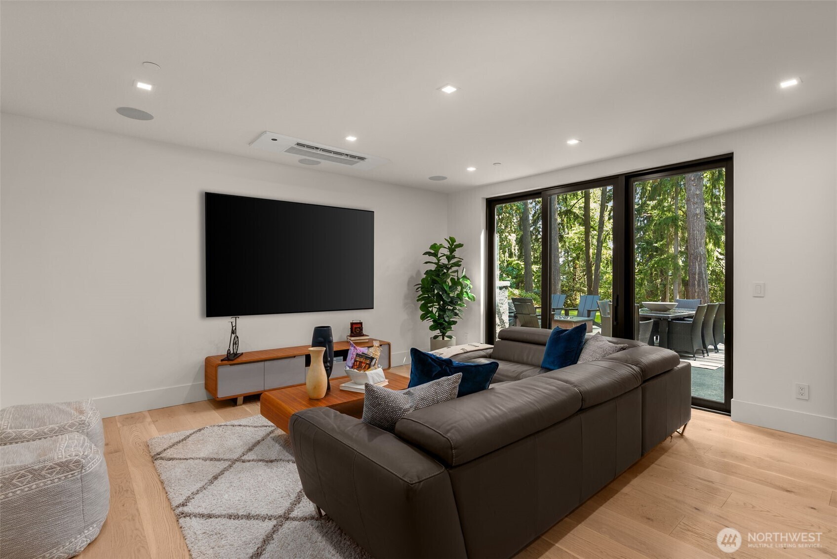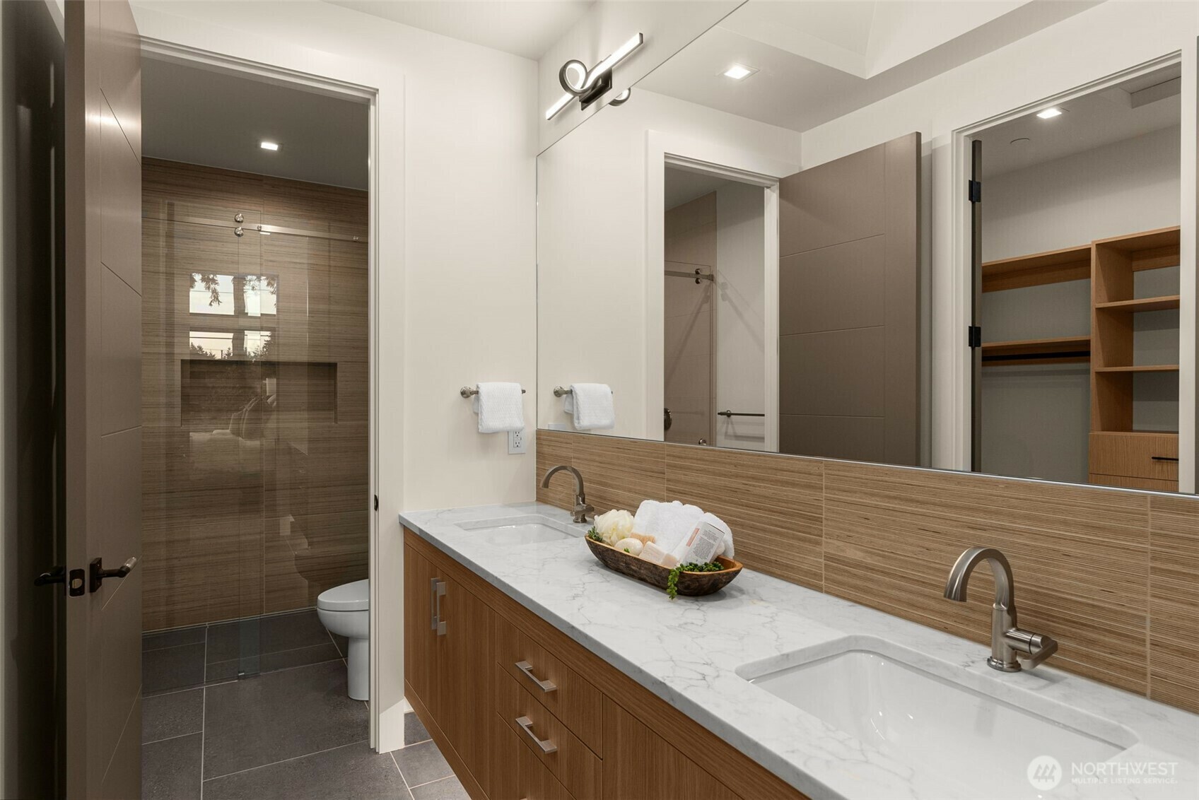 A Masterclass in Modern Luxury by Bellshire Homes. This generously scaled showpiece rests on a private, expansive homesite, where design and function flow effortlessly. Soaring 10–20' ceilings, a two-story atrium, and a custom floating staircase define architectural brilliance. The chef’s kitchen stuns with Thermador appliances, Azul Celeste granite, a hidden scullery, and a sleek dining island. Unwind in the spa-inspired primary suite, host in the expansive great room, or relax on the terrace by a custom fire pit. Designed for modern living with a full ADU, smart tech throughout, solar power, and thoughtfully curated materials. Framed by towering evergreens, the backyard is a private retreat for everyday moments and unforgettable evenings.
