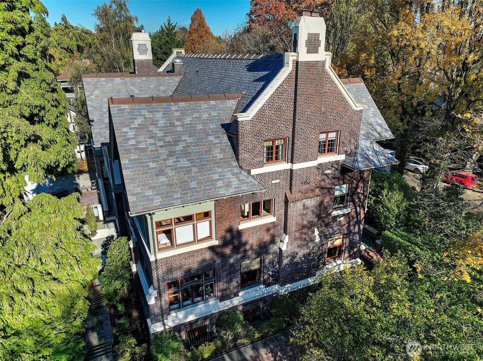 Stately and rare, this work of art came to life in 1914. A rigorous restoration allows the artisan details and exceptional craftsman quality to shine. The main floor rooms extend out from the elegant foyer: south-facing living room accommodates languid days; bright sunroom overlooks brick courtyard; dining room easily accommodates 20; and kitchen which nourishes lively gatherings. The entire residence is supported by updated systems: roof, sewer line, heating & cooling, plumbing, wiring, restoration quality exterior paint, the brick has been tuckpointed to ensure integrity for 100 years. Nestled on a tranquil street by Volunteer Park, embrace the best of Capitol Hill. Bring your entrepreneurial spirit and envision your thriving business!