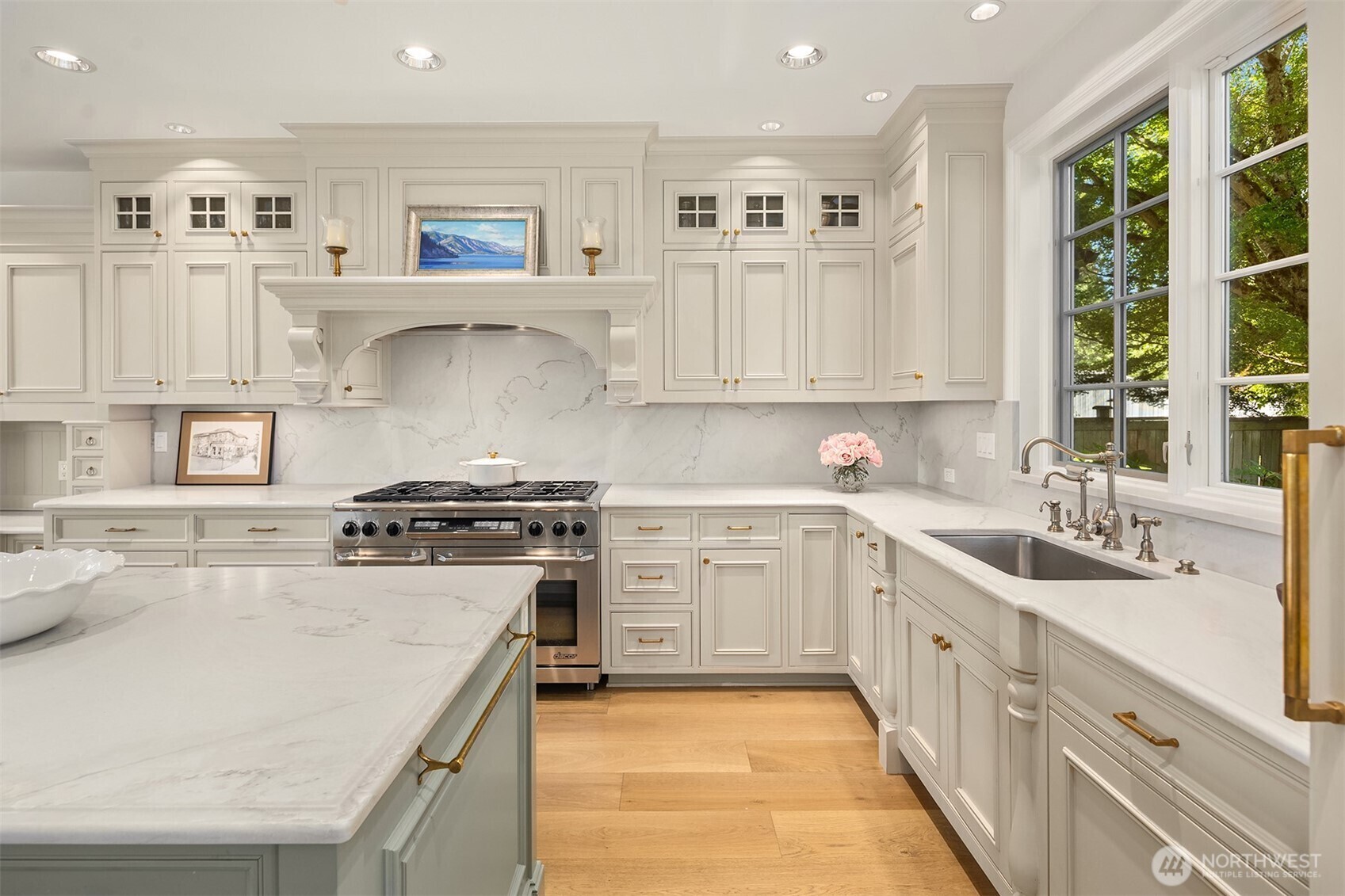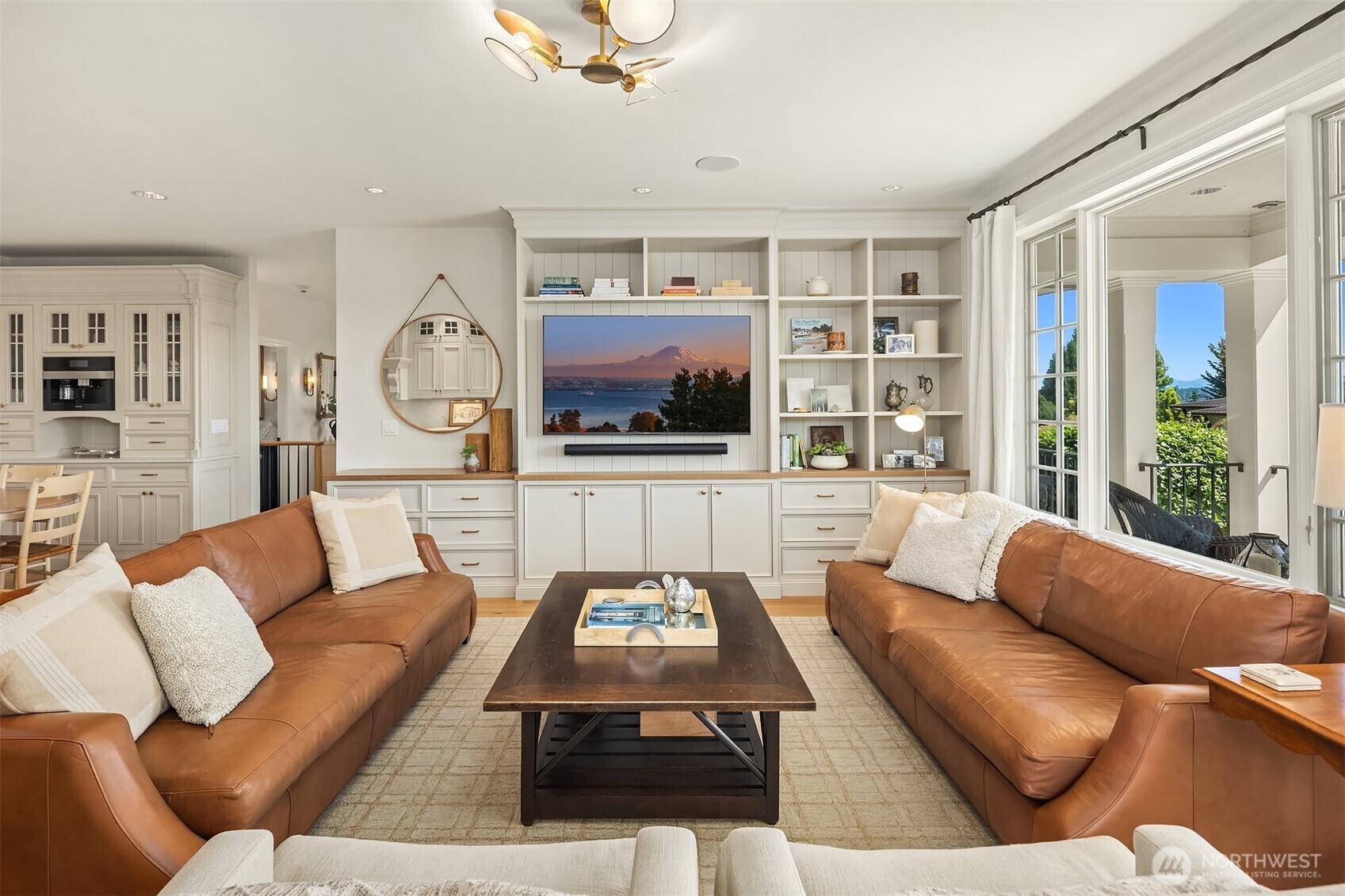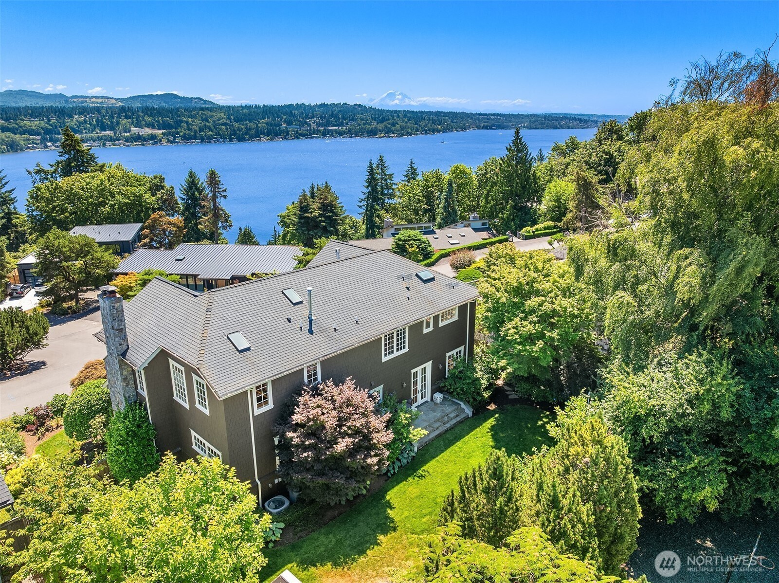 Timeless and elegant shingled custom home by luxury builder Gallagher Co, blends East Coast sophistication with West Coast ease. Gracefully elevated above the street, oversized windows bathe interiors in golden light capturing stunning views of Lake Washington, Rainier and Cascades. Soaring ceilings, wide-plank floors and designer finishes. Chef’s kitchen features quartzite countertops, custom cabinetry, high-end appliances and seamless flow to sun-drenched great room. Formal living/dining rooms. Serene primary suite w/ private terrace, spa-like bath, walk-in closets. 4 additional bedrooms (main level guest suite). Home theater, office w/outside entrance. Landscaping & stone work perfection w/ private backyard.