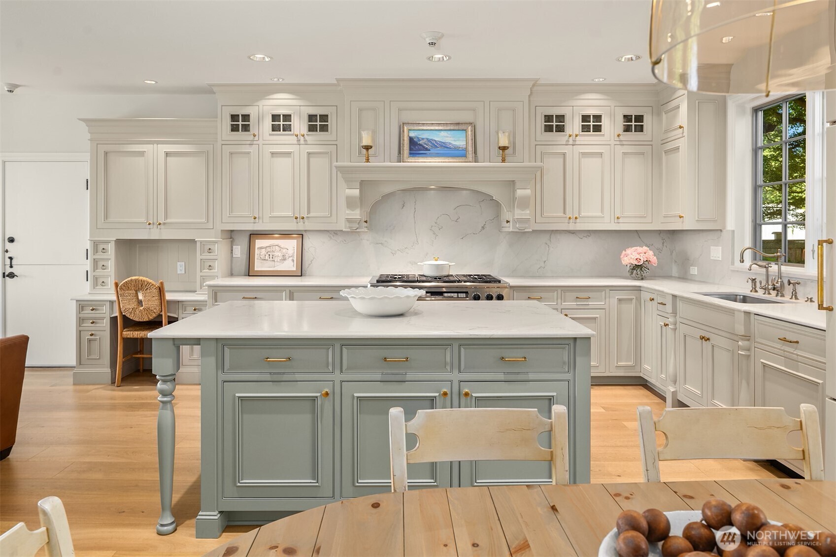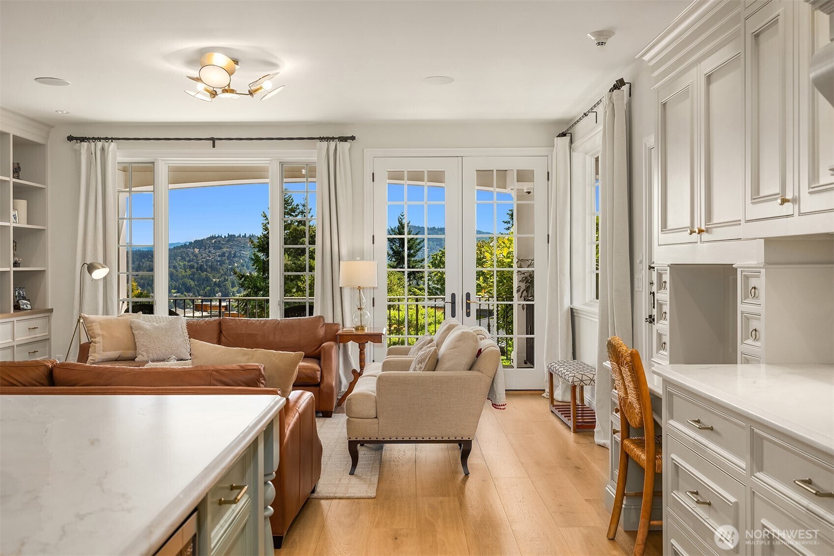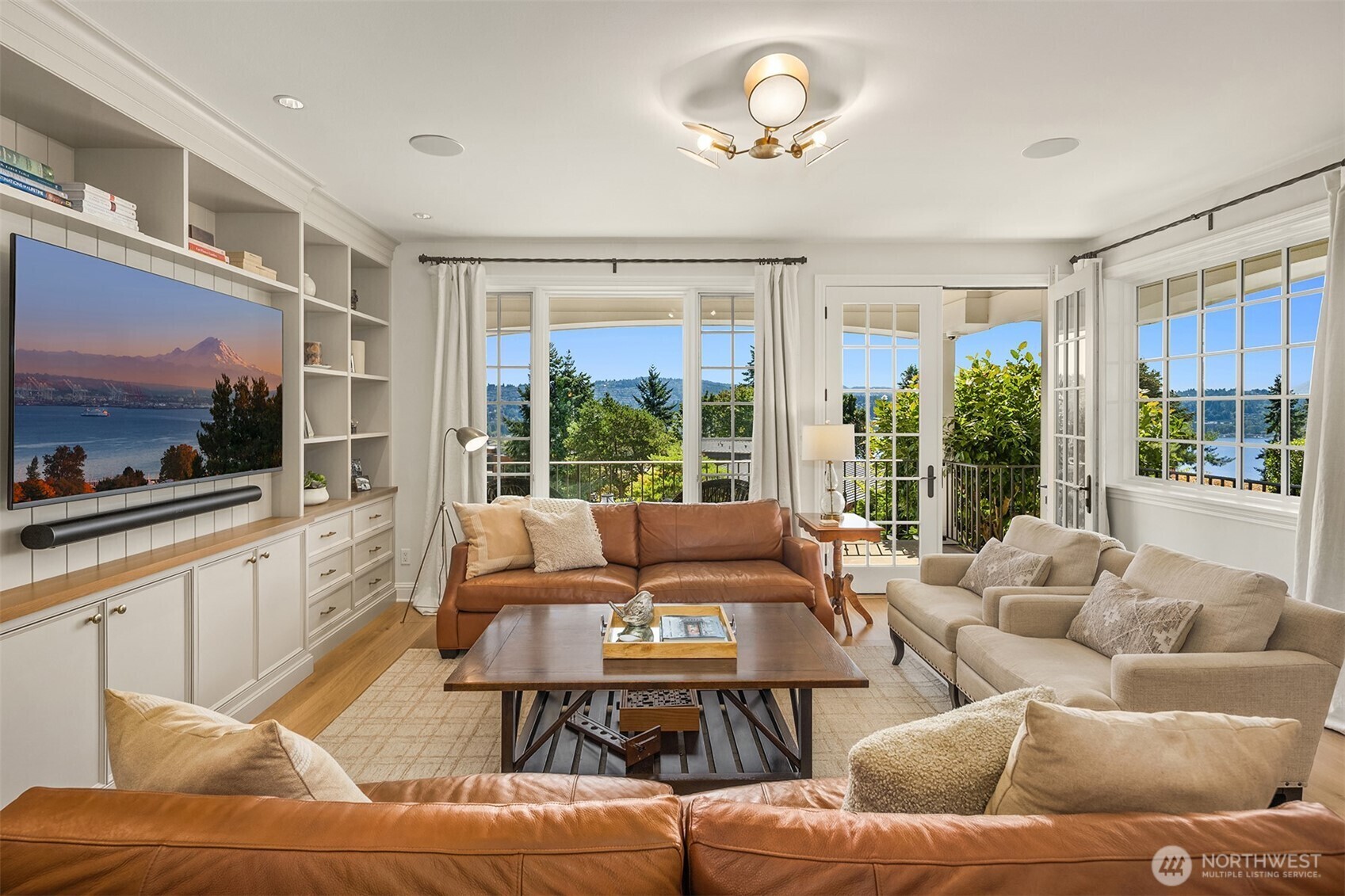 Timeless and elegant shingled custom home by luxury builder Gallagher Co, blends East Coast sophistication with West Coast ease. Gracefully elevated above the street, oversized windows bathe interiors in golden light capturing stunning views of Lake Washington, Rainier and Cascades. Soaring ceilings, wide-plank floors and designer finishes. Chef’s kitchen features quartzite countertops, custom cabinetry, high-end appliances and seamless flow to sun-drenched great room. Formal living/dining rooms. Serene primary suite w/ private terrace, spa-like bath, walk-in closets. 4 additional bedrooms (main level guest suite). Home theater, office w/outside entrance. Landscaping & stone work perfection w/ private backyard.