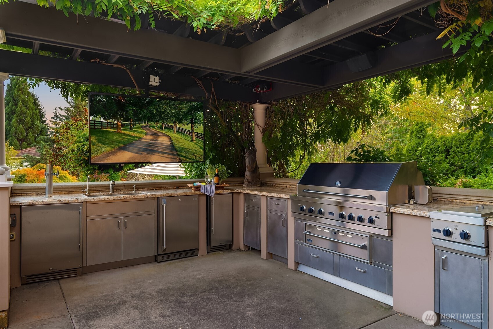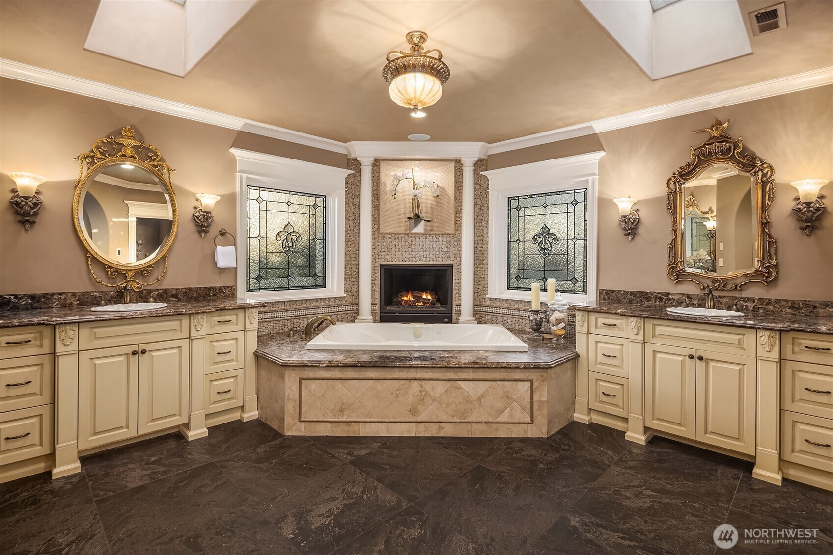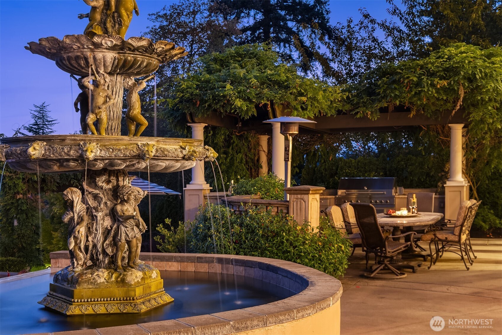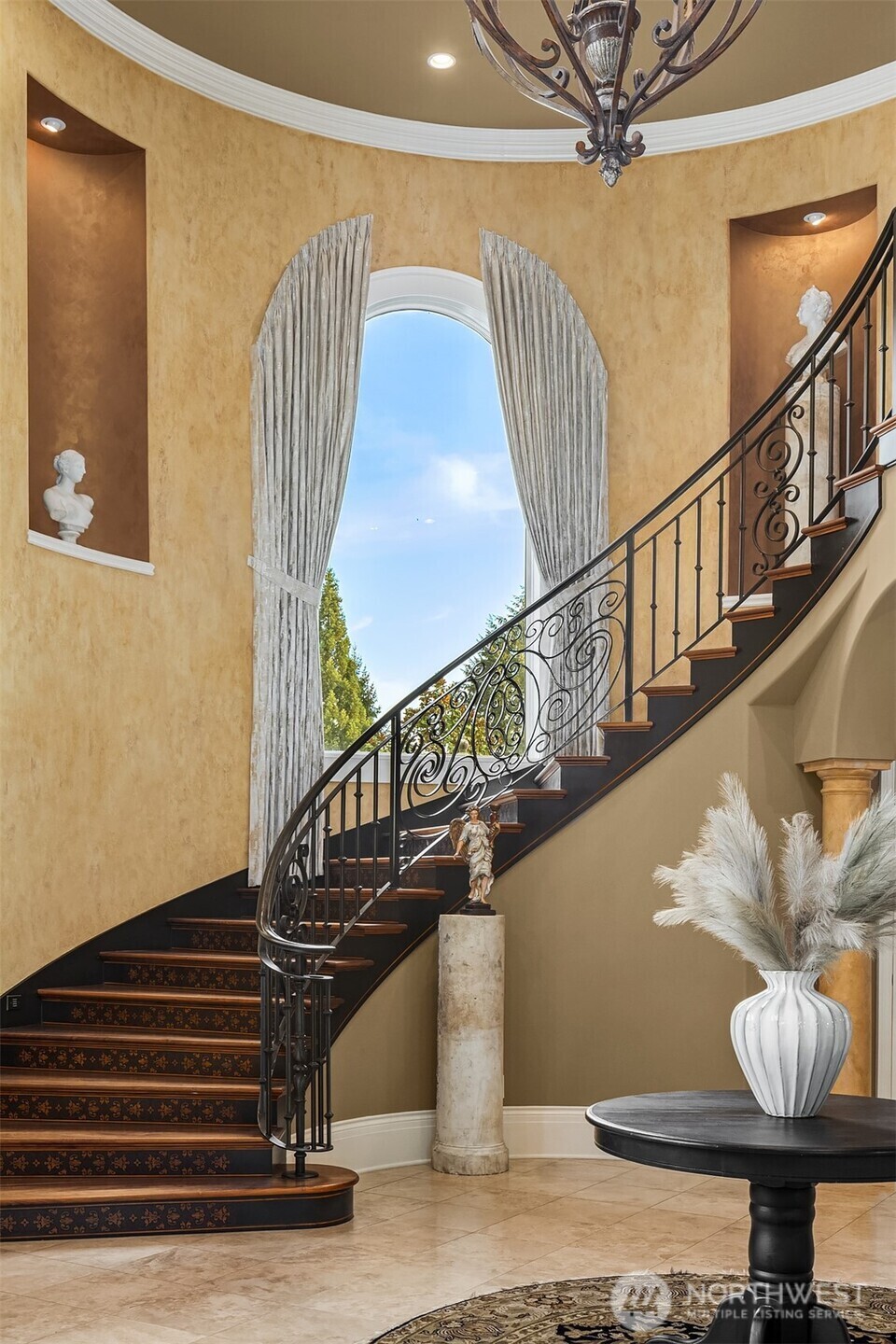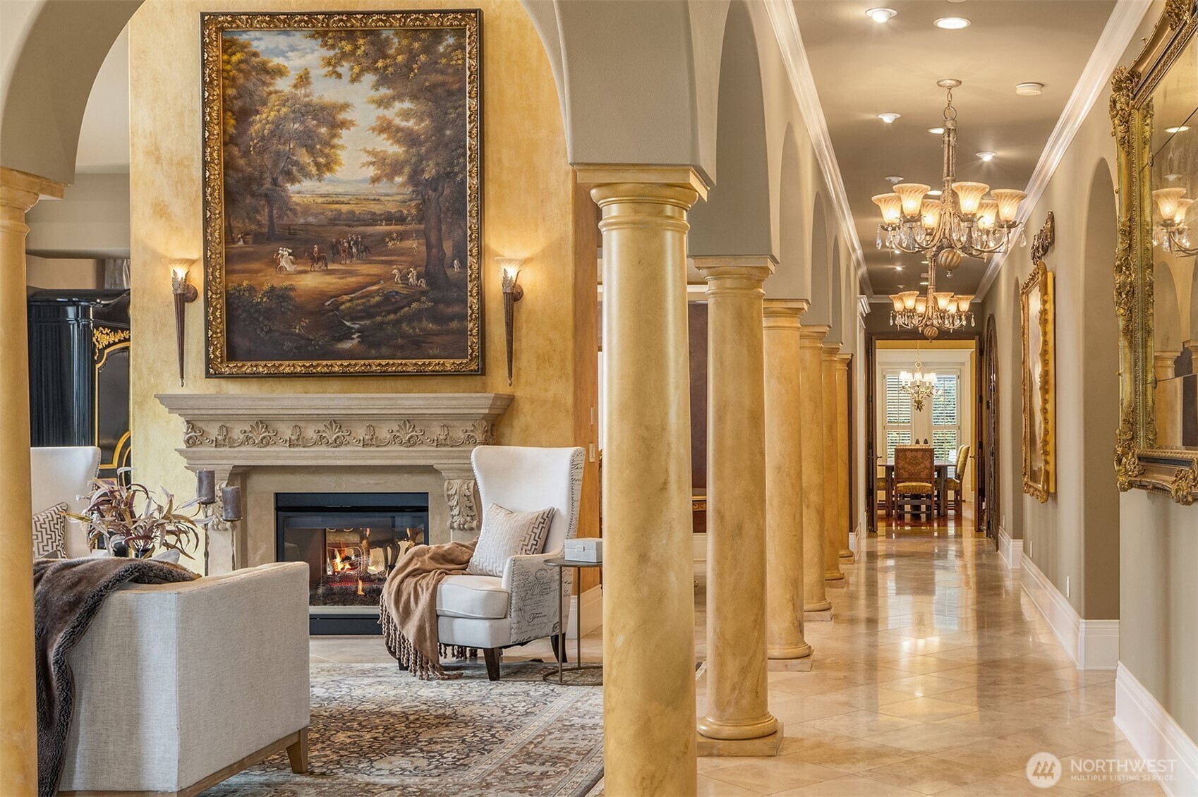 Drawing inspiration from timeless villas of Tuscany, this extraordinary Clyde Hill estate is a masterful blend of European elegance and Pacific Northwest luxury. Privately gated on a manicured half-acre, the residence is thoughtfully designed for both grand-scale entertaining and refined everyday living. At the heart of the home, a gourmet kitchen showcases a massive granite island, rich custom cabinetry, and luxury-grade appliances, all framed by a striking wall of French doors that seamlessly connect indoor living to an expansive outdoor kitchen and dining terrace. The open-concept design invites effortless entertaining, while refined architectural details elevate every space. The residence offers five generously sized bedrooms, each with a private en-suite bath, ensuring comfort and privacy for family and guests. The primary suite is a sanctuary, featuring a serene balcony overlooking the resort-style pool, a two-way gas fireplace, steam shower, and two custom-designed closets. Additional spaces include formal dining, wine parlor, two private offices, game room, and gym, providing versatility for work, leisure, and relaxation. Outdoors, a Mediterranean-inspired oasis awaits, complete with resort-style pool and spa, firepit, and sun-drenched terraces, creating an unparalleled setting for entertaining or tranquil retreat. This Tuscan-inspired estate offers rare privacy, timeless design, and an exceptional lifestyle in one of the Eastside’s most coveted neighborhoods.