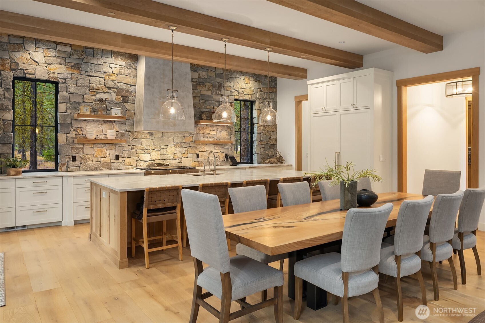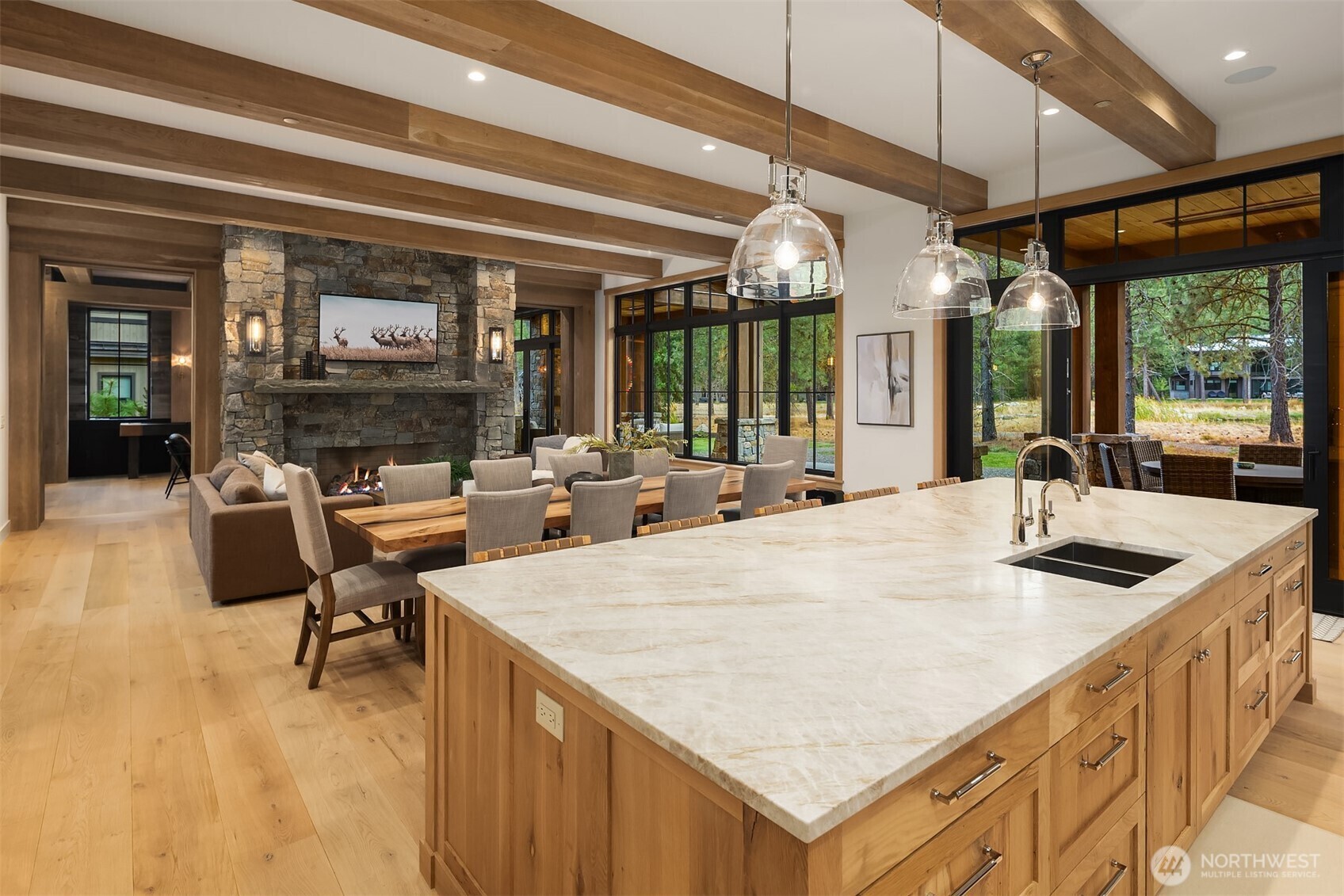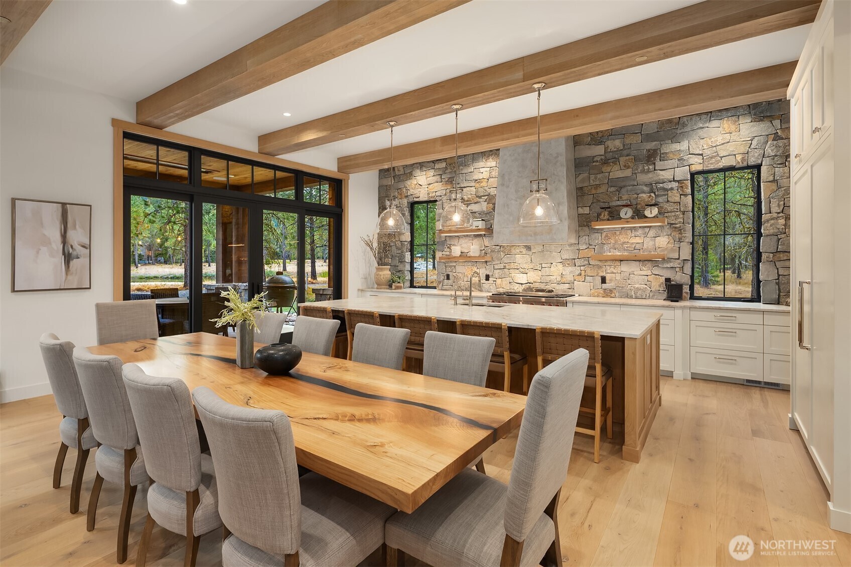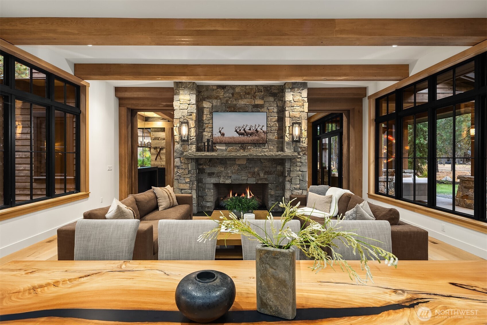 Experience the pinnacle of mountain luxury on Paintbrush Lake in the exclusive Tumble Creek community. Custom designed with timeless elegance and exceptional craftsmanship, this home features a dramatic pivot door, floating steel mono-stringer staircase with solid 4” thick white oak treads. and custom white oak cabinetry throughout. Rustic stone walls, hand-hewn beams, and slab countertops create a warm yet refined aesthetic. Engineered for comfort, it includes advanced mechanical systems and conditioned spaces. With room to sleep 16, plus a lounge, bonus and bunk rooms, and expansive covered outdoor areas, this one-of-a-kind retreat defines refined mountain living.