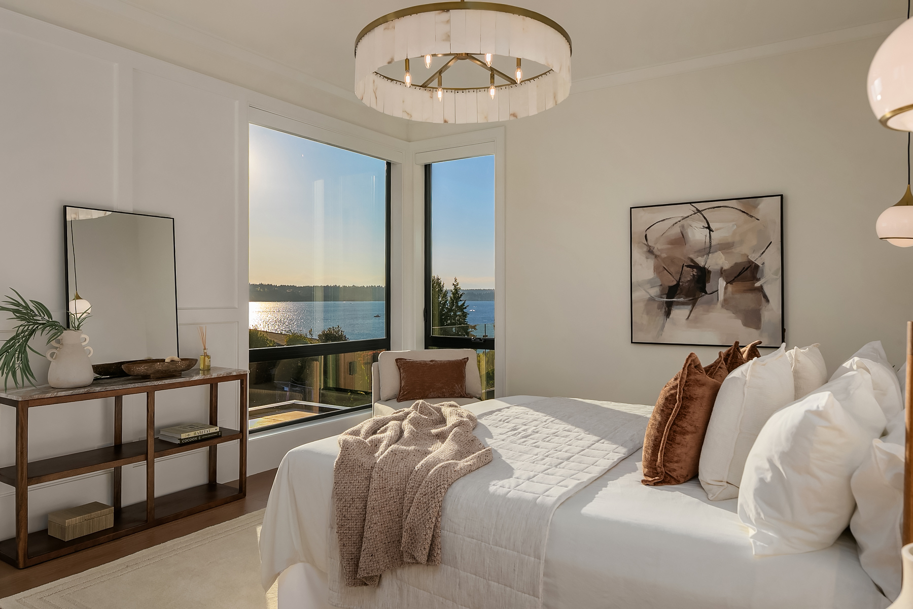 Introducing “Westly”, a striking architectural masterpiece built by Mirikeen Homes. Set in the coveted Rosepoint community with shared waterfront access, this custom crafted estate features sweeping lake views from nearly every room. Interiors exude sophistication with soaring, 13ft ceilings in the stunning great room and kitchen. Flowing spaces designed for effortless entertaining; two extraordinary view decks, including a 770sf rooftop with endless vistas and a gas fire table for unforgettable gatherings. Luxuriate in the impressive primary suite w a breathtaking spa bath & walk-in-closet. A superb layout with flexible living spaces, including a massive lower floor media room & gym/4th bedroom + a luxuriously appointed 1-bed detached ADU.