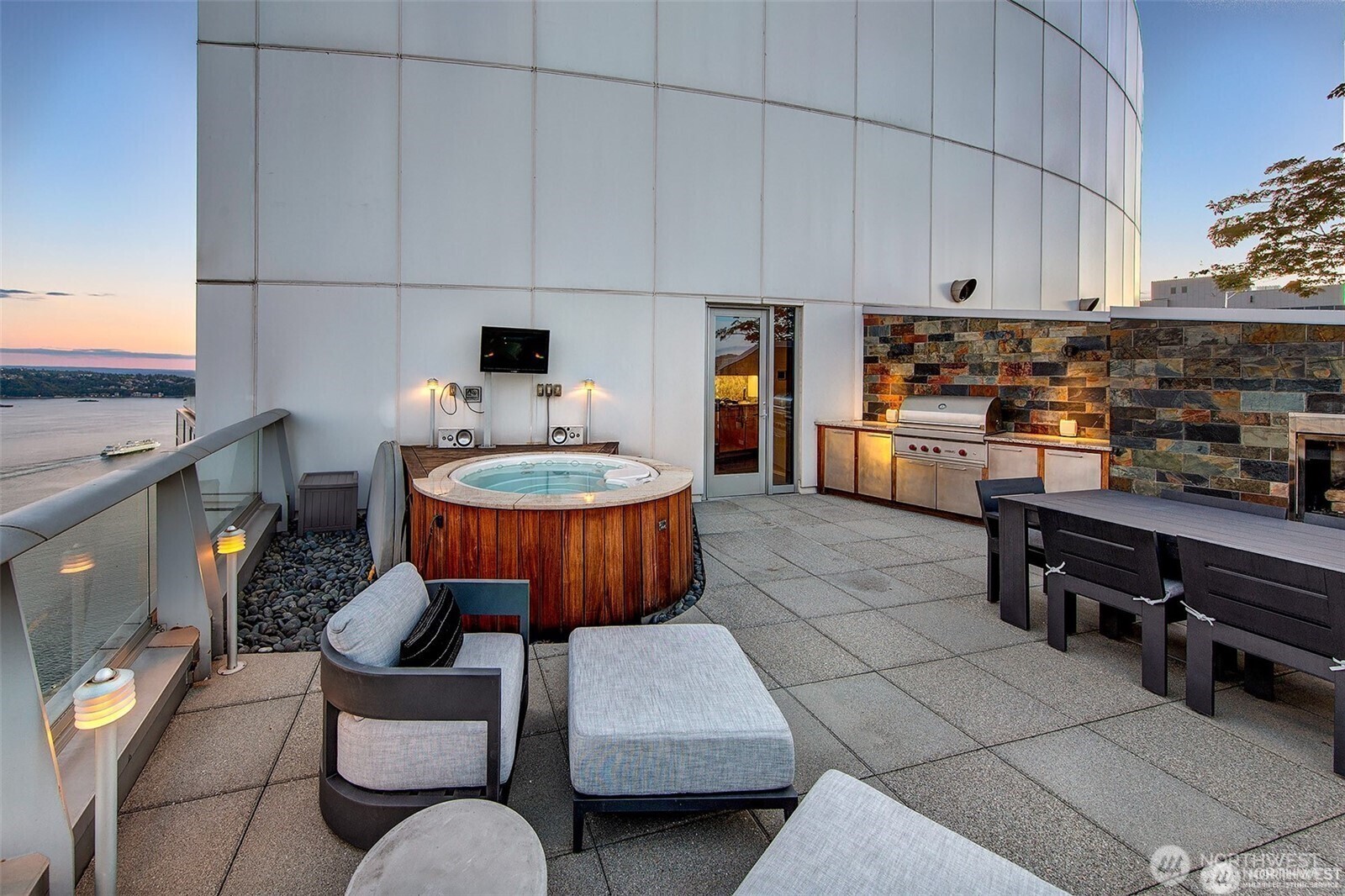 PENTHOUSE perfection-Incredible Value NEW PRICE! 2453sqft +400sqft roof deck=2851of usable sqft!! Soaring views from this SE corner Jewel box. Located at the iconic 1521 2nd Ave,Seattle's premier luxury steel & concrete condo tower-moment frame designed. An exceptional two-level penthouse features timeless finishes wrapped with 10.5 floor to ceiling windows, home is flooded with natural light. Enjoy quintessential PNW living, views span from the Sound to Olympics, including Stadiums & the Seattle Great Wheel. Arguably the best PRIVATE rooftop deck in the city, includes kitchenette, beverage center, kegerator, Jacuzzi,outdoor TV & speakers, gas fireplace, built-in Wolf BBQ. PIKE PLACE Market is your next door neighbor!-2pk.24/7 concierge.
