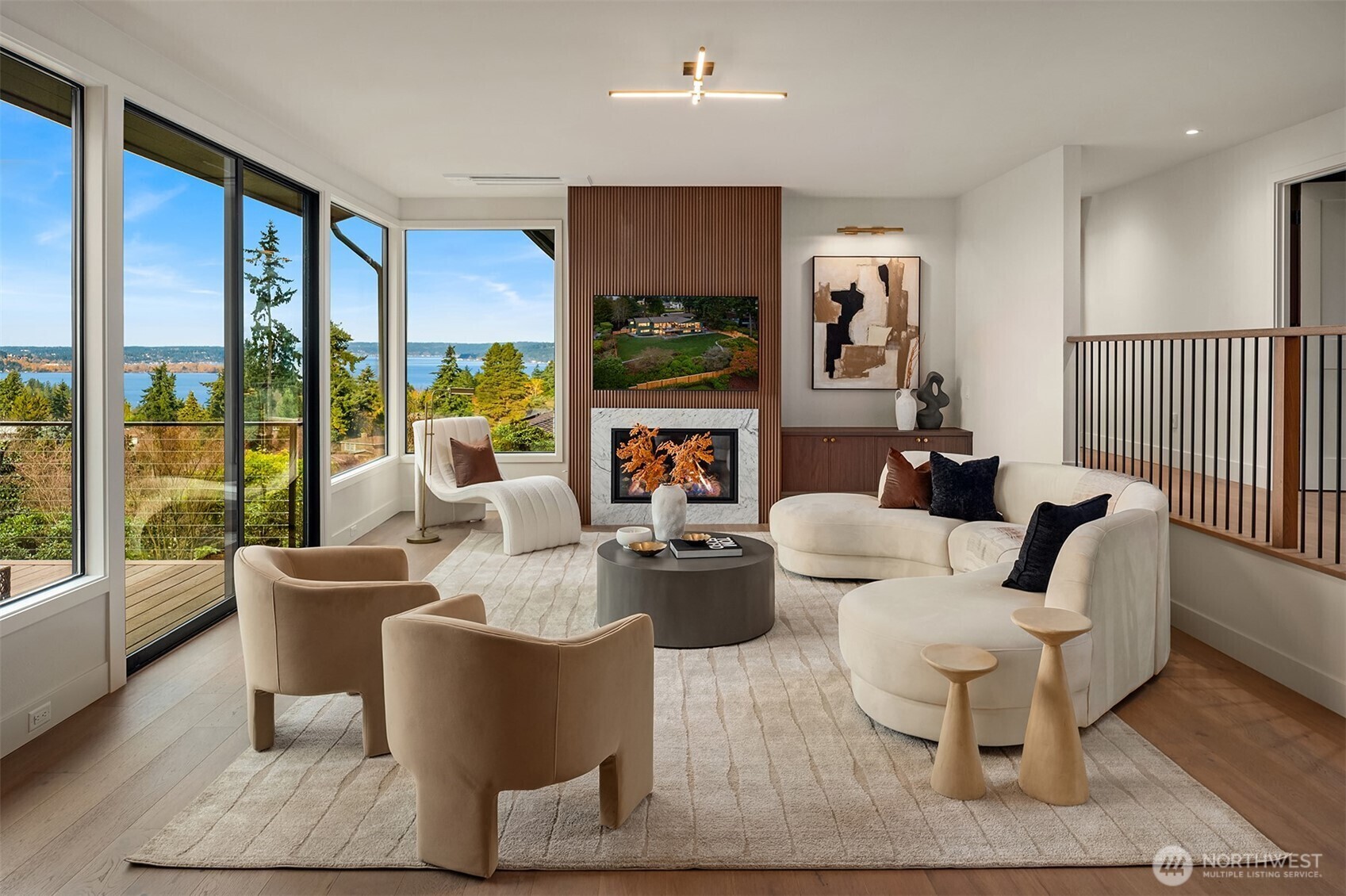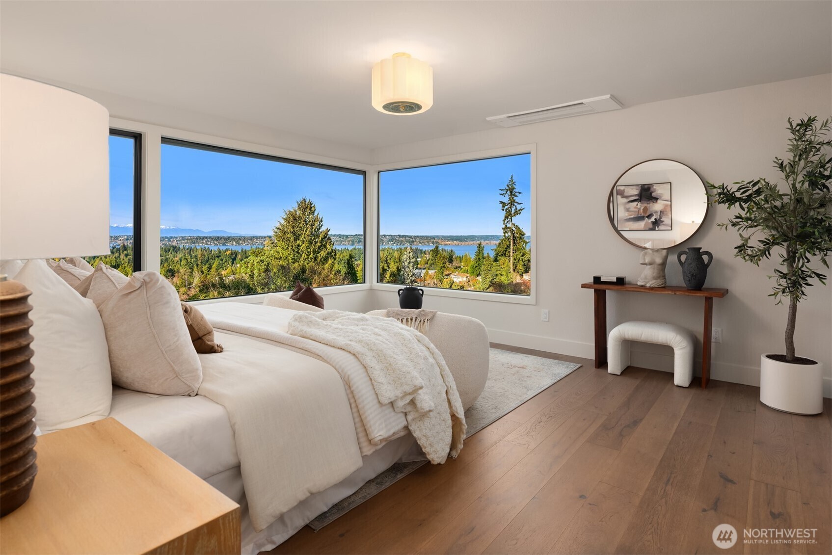 Signature Clyde Hill residence boasts breathtaking panoramic views in the coveted Aqua Vista community. Exquisite property has been completely reimagined w/whole-house luxury remodel by acclaimed local builder Gerry Homes. Walls of glass frame unrivaled views & illuminate an interior loaded w/sophisticated bespoke finishes. Main level offers sumptuous primary suite, open concept living spaces designed for effortless entertaining & chef’s epicurean kitchen w/Carrera slab marble, custom cabinetry & Subzero/Wolf appliance package. Expansive lower level features 4BRs + bonus rm & gym. Expertly sited on a 20K+ SF lot, just mins from DT Bellevue & SR520. A truly rare offering for the discerning luxury buyer searching for that “Forever” view home!