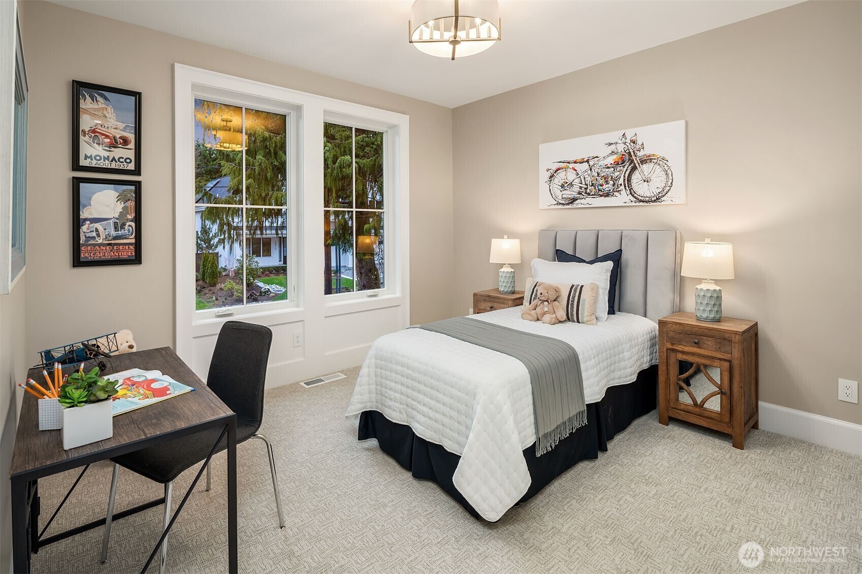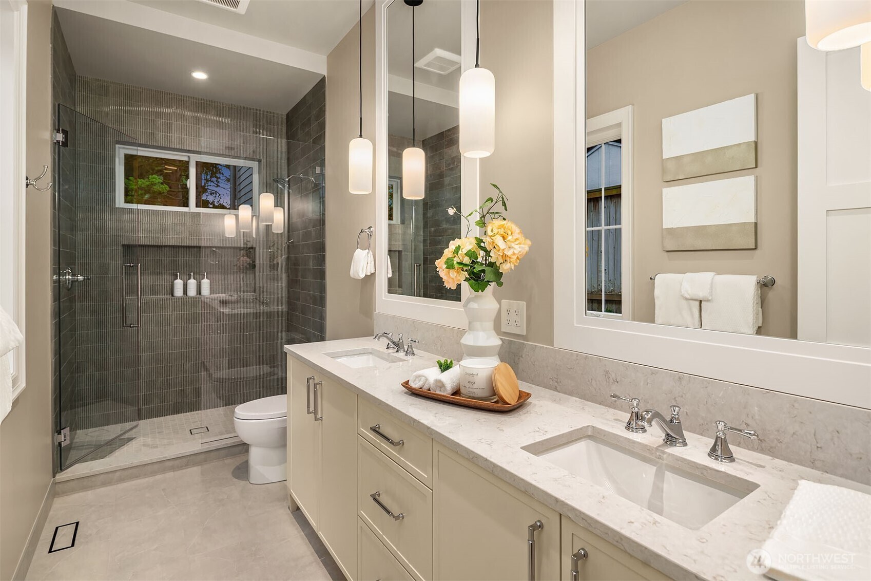 Welcome to The Hatteras, the latest architectural masterpiece from premier luxury builder Mirikeen Homes. Perfectly positioned in the heart of Enatai on a private 10,500 sq ft lot, this 5,802 sq ft custom Cape Cod home blends timeless design with modern sophistication. Designed for both grand entertaining and intimate living, the chef’s kitchen is complemented by a full prep kitchen, oversized walk-in pantry, and elegant butler’s pantry. The two-story great room stuns with soaring ceilings, custom millwork, and a statement gas fireplace that anchors the space with warmth and refinement. Thoughtful details—like the charming custom nook tucked beneath the staircase—set this home apart. The primary suite is a true sanctuary, complete with a private coffee bar, fireplace, treehouse-inspired sitting room, expansive walk-in closet with direct laundry access, and a spa-caliber bath adorned with Brizo fixtures. Every inch showcases impeccable craftsmanship—from bespoke ceiling treatments and millwork to designer lighting and exquisite tile selections. A spacious bonus room with full wet bar invites effortless entertaining, while the private theater with 98” screen creates the ultimate luxury retreat. A rare opportunity to own a one-of-a-kind residence in one of Bellevue’s most coveted neighborhoods.