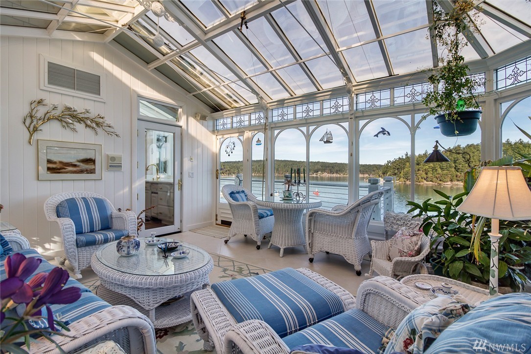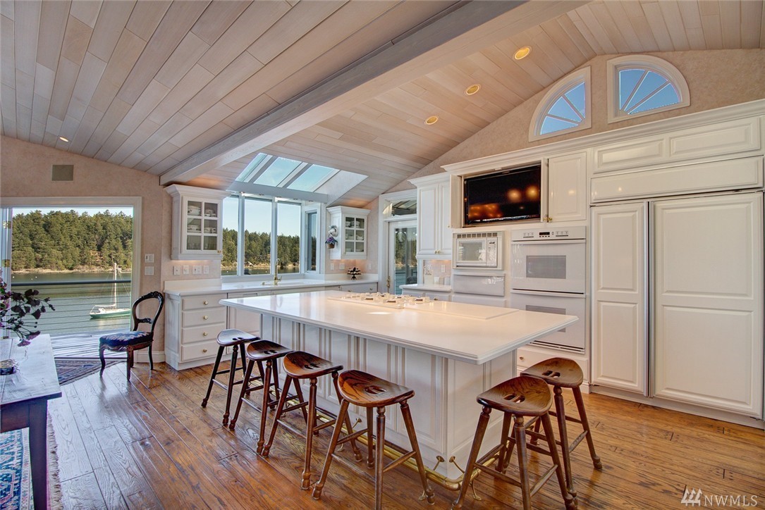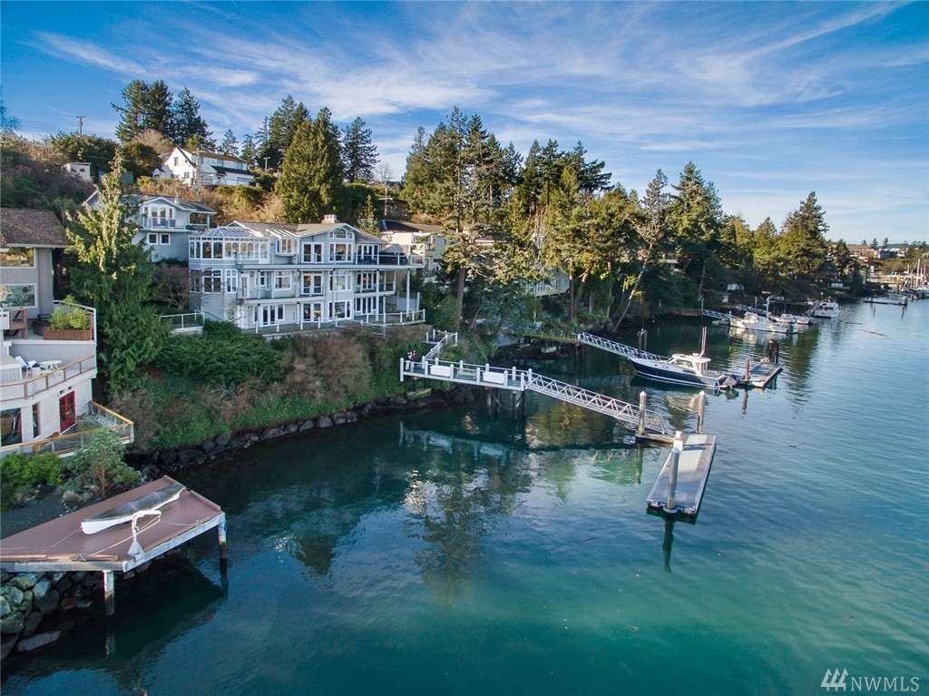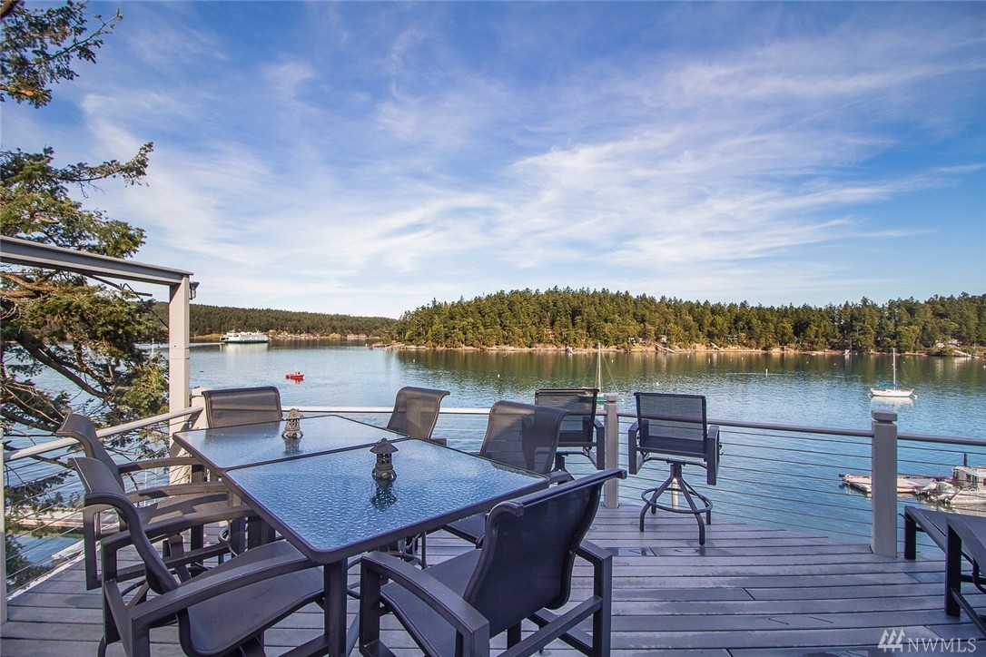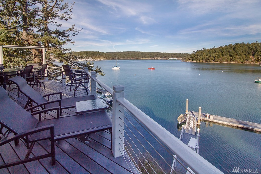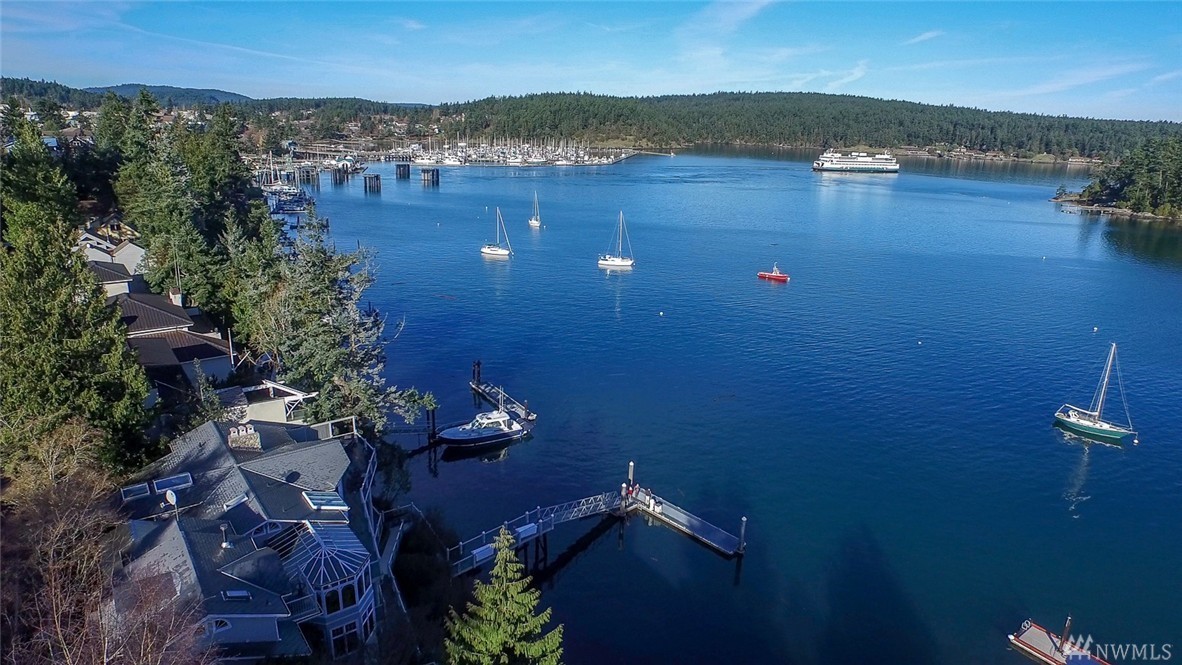 Prominently yet privately sited on Friday Harbors coveted Warbass waterfront is this distinctive, meticulously maintained shingled 3 bed/4 bath, 5000 sf main home with detached 795 sf 1 bed/1 bath guest studio, large bonus room and bath, 2 car garage and quality, protected deep water dock for 80 boat outside and 35 inside. Featuring a symphony of entertaining spaces embracing the views of the ever-changing harbor with oversized windows and cascading decks - designed to live the island lifestyle.