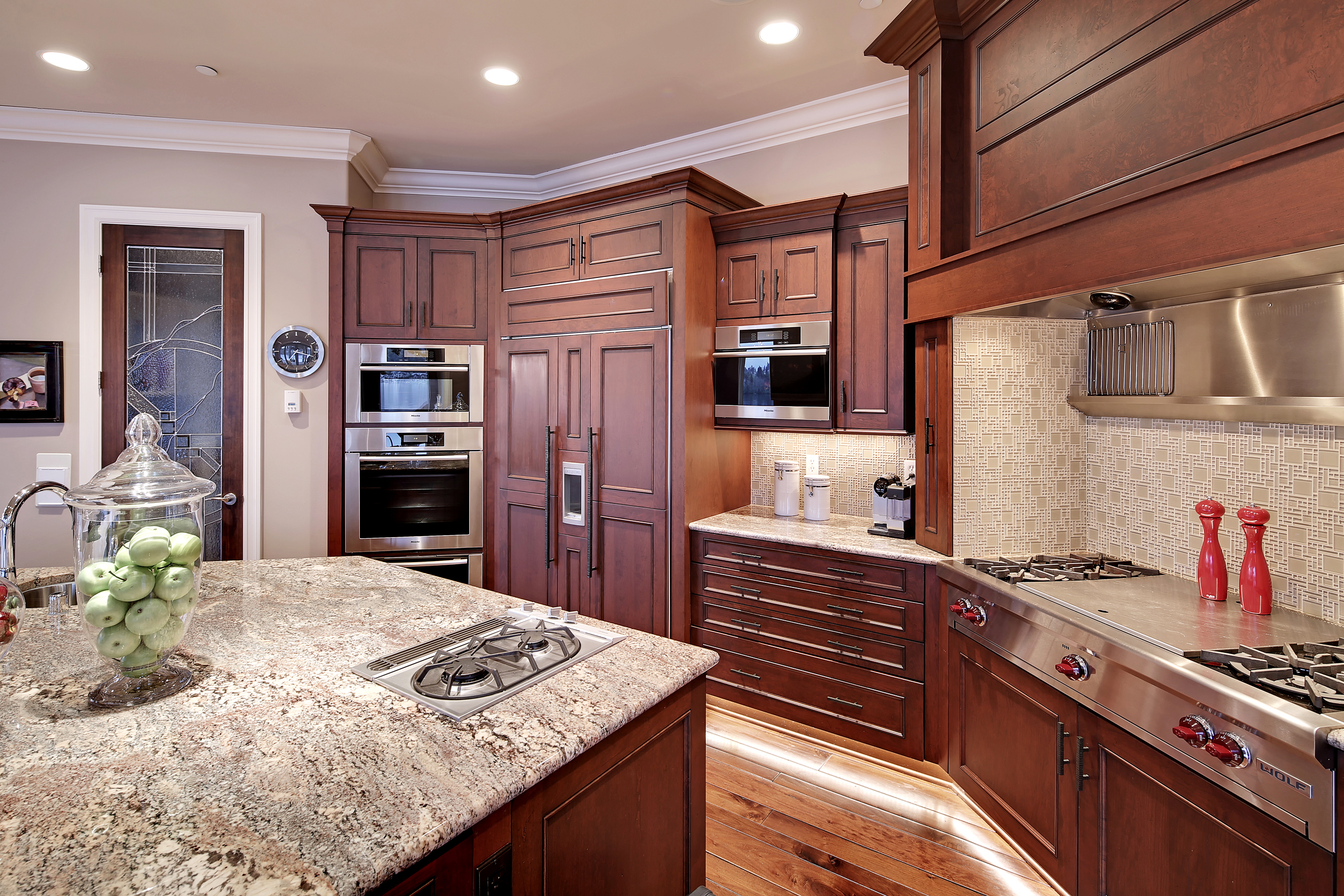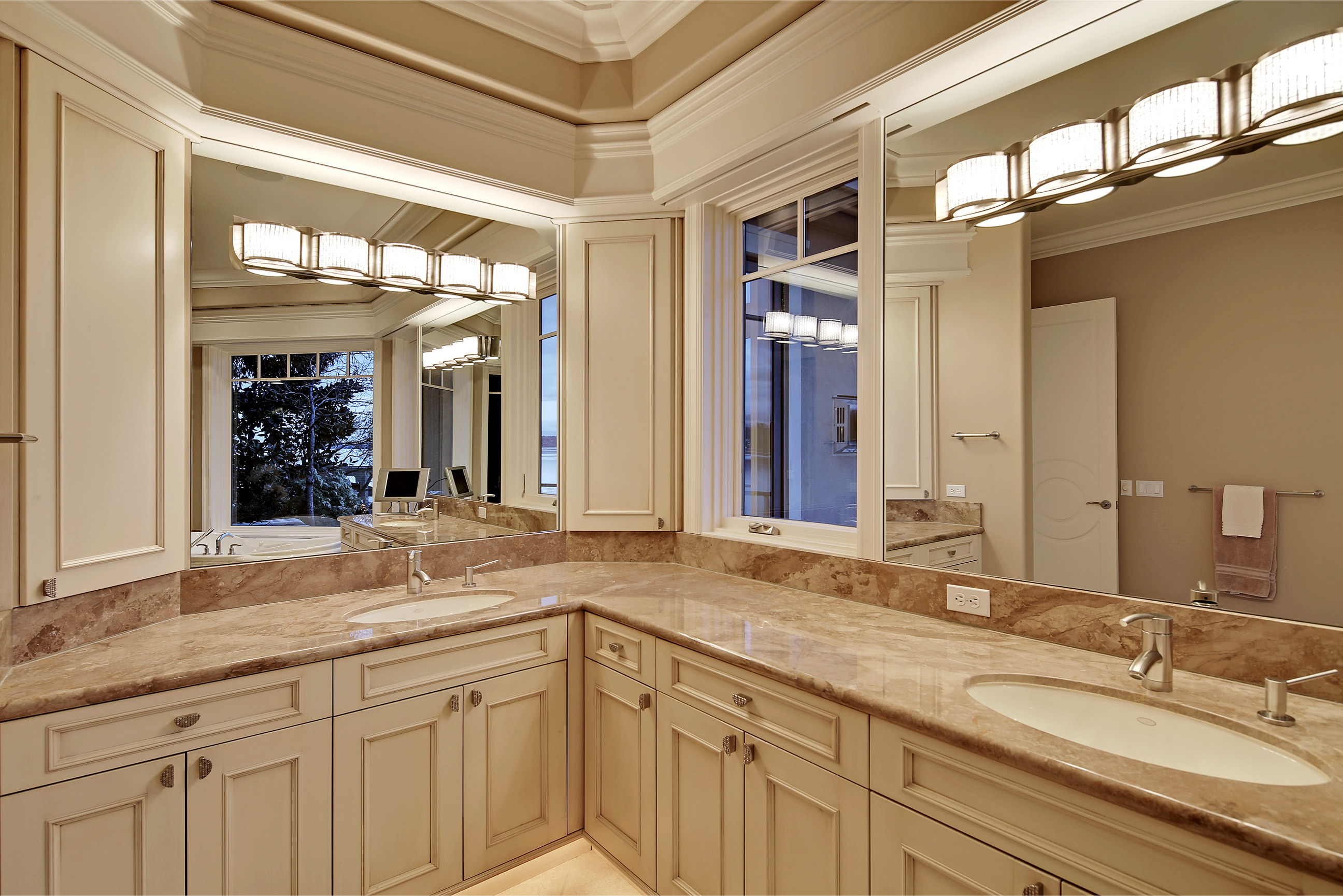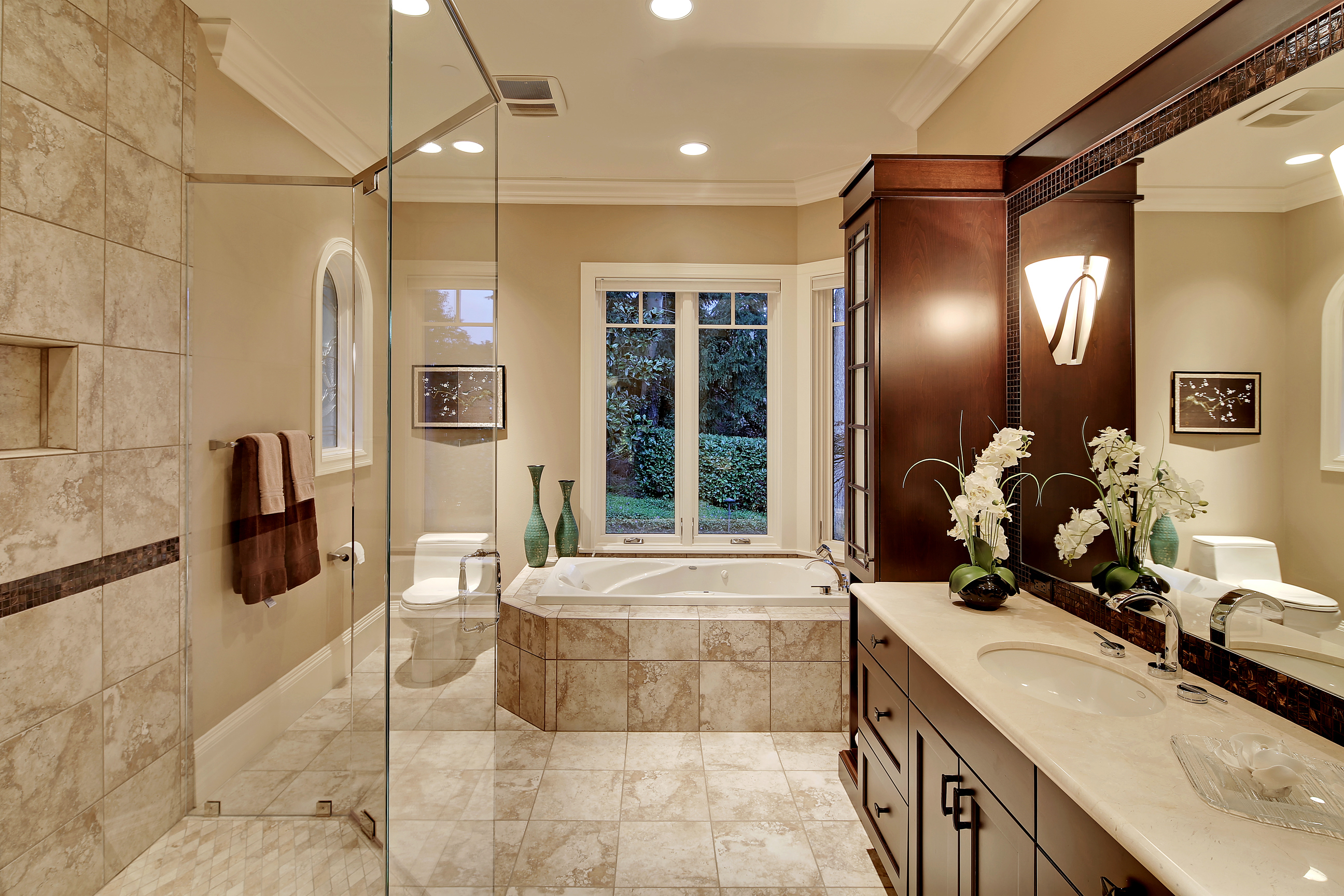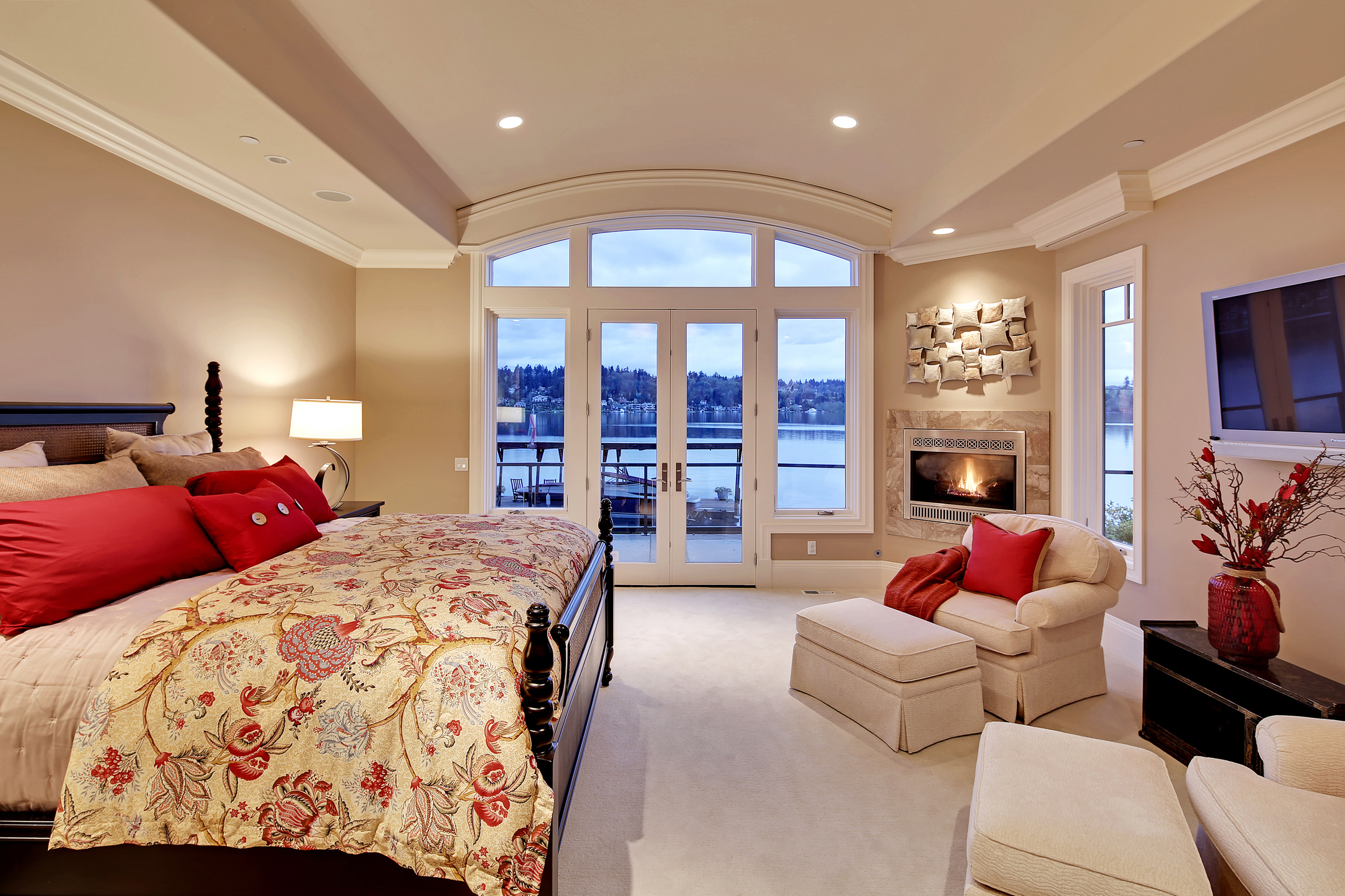 Stunning custom estate on the water's edge. 150+/- ft. of tranquil frontage w/private peninsula offers westerly views to Luther Burbank Park and Olympics. Sun-drenched great room w/French doors from living space to lake fun. Two main level master retreats. Commercial-grade kitchen, 13 ft. ceilings in great room, walnut floors, wine room, upper activity room and guest suite. Monier tile roof. 15kw hardwired generator. Idyllic location far from the bridges and close-in for a secluded lifestyle.