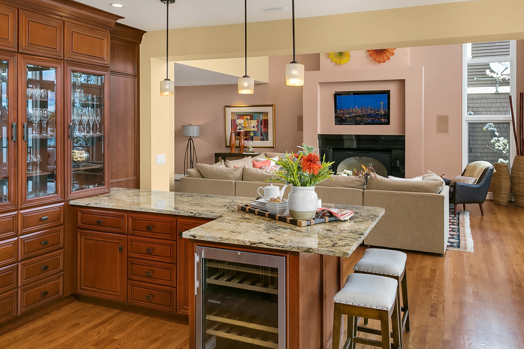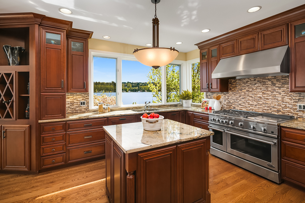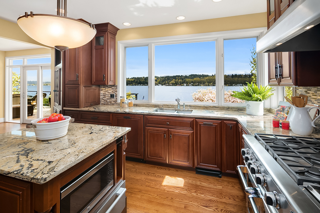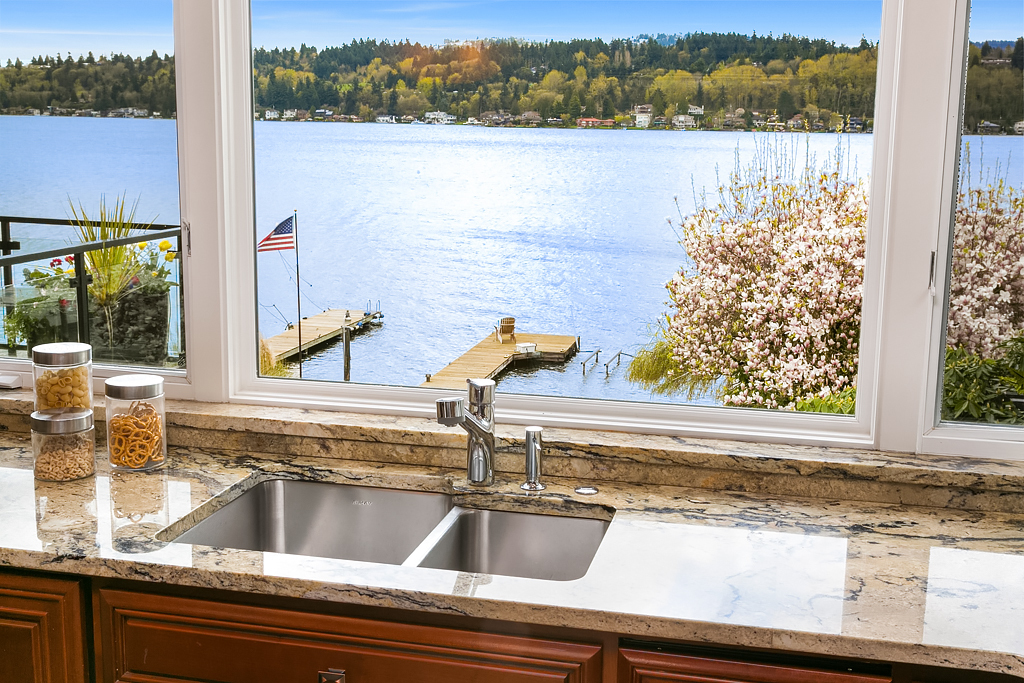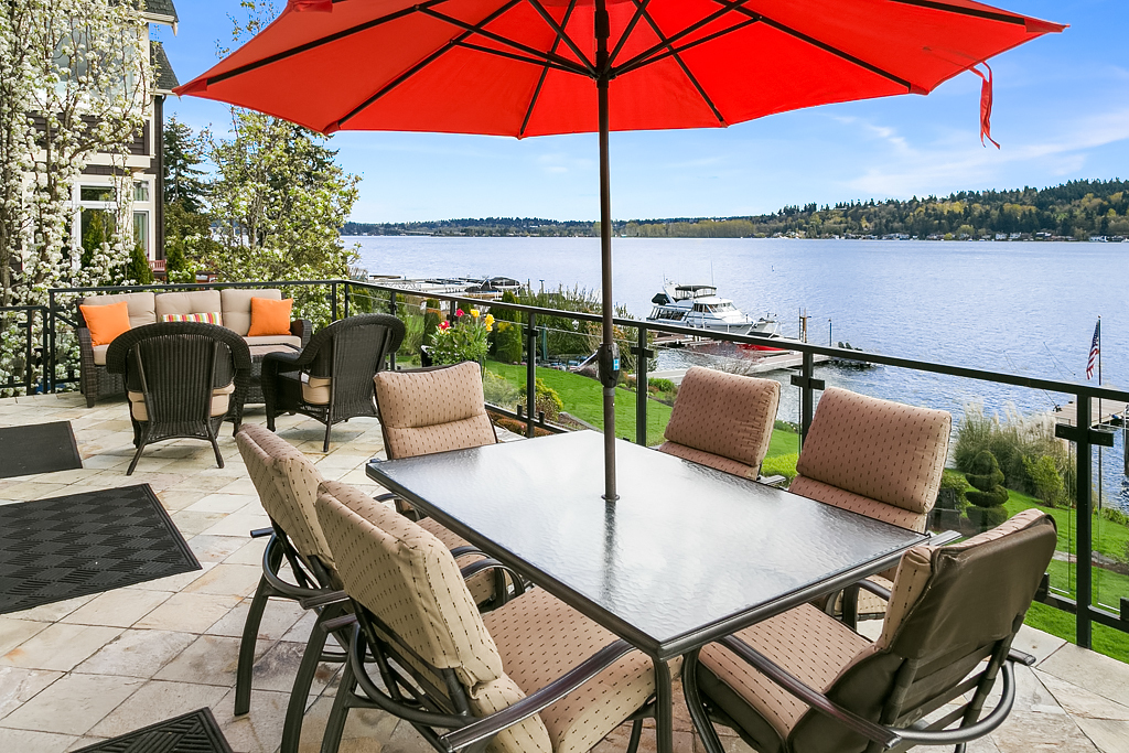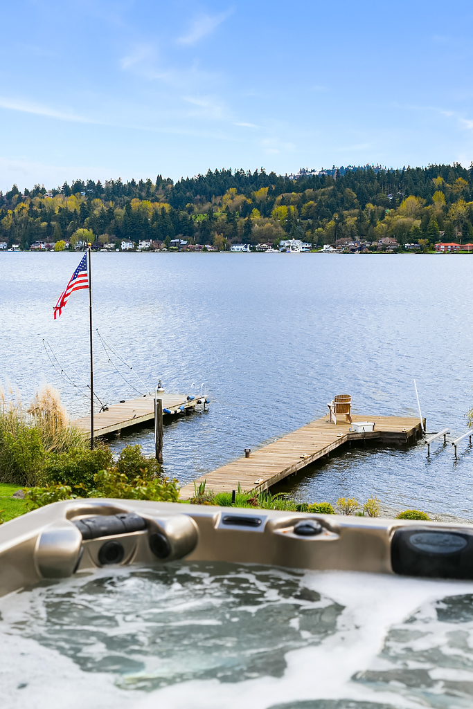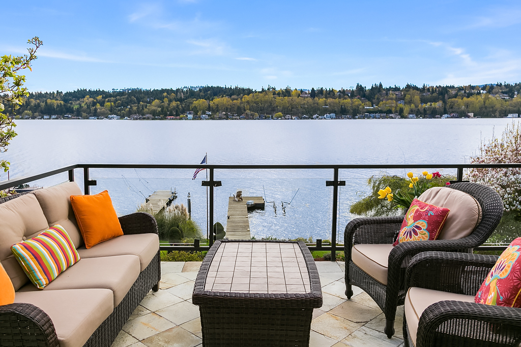 Lakeside Living at its best! Walls of windows frame stunning views of Lake WA and Mt. Rainier on 60 of waterfront. Ideal floorplan and smartly designed spaces: open great room w/ soaring ceilings flows into gourmet kitchen w/ eating bar and large entertaining deck. Main floor den and guest suite. Upstairs, 3 more en suite bedrooms including fabulous view master retreat. Host the crowd on the lower level for movies, hot tub or game night after enjoying a day on the lake. Radiant. Alluring. Exceptional.