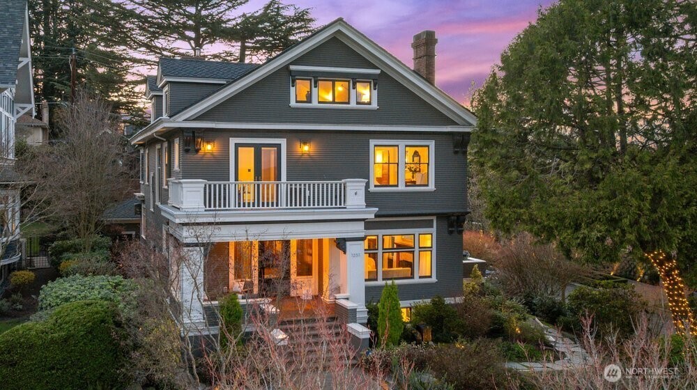 Wishing for a home of happiness, love and meticulous care, this stunning 1909 Bebb & Mendel residence prominently sited on a corner lot to capture Lake Washington and snowy Cascade Mountain views will entice. Rich in historic pedigree, timeless architecture and elegance, it is simultaneously updated for modern luxury. Garden-rich entrance features a structural water element, blooming daphne and the legendary Wishing Tree. Survey the engaging North Capitol Hill neighborhood from the welcoming front porch. Elegantly proportioned interiors are defined by high ceilings, an impressive entry with open stairwell, extraordinary original detailing and luminous stained-glass windows. The spectacular kitchen is anchored by a warm black walnut island, premium appliances, heated limestone floors, walk-in pantry, bar area and pet station. The primary suite offers a private sanctuary, with sparkling lake and mountain views, walls of custom closets, and a luxe bath with steam shower, soaking tub, heated floors, and adjoining sitting room with view balcony. All bedrooms are located on second and third floors. A wonderfully usable third-level ballroom includes a guest suite. Gracious outdoor living spaces feature a bluestone patio with firepit, hot tub, pizza oven, BBQ deck, and lush mature landscaping to create an exceptional setting for entertaining. The high-ceilinged lower level includes recreation space, gym and laundry. Two car detached garage complete this story of this remarkable home!