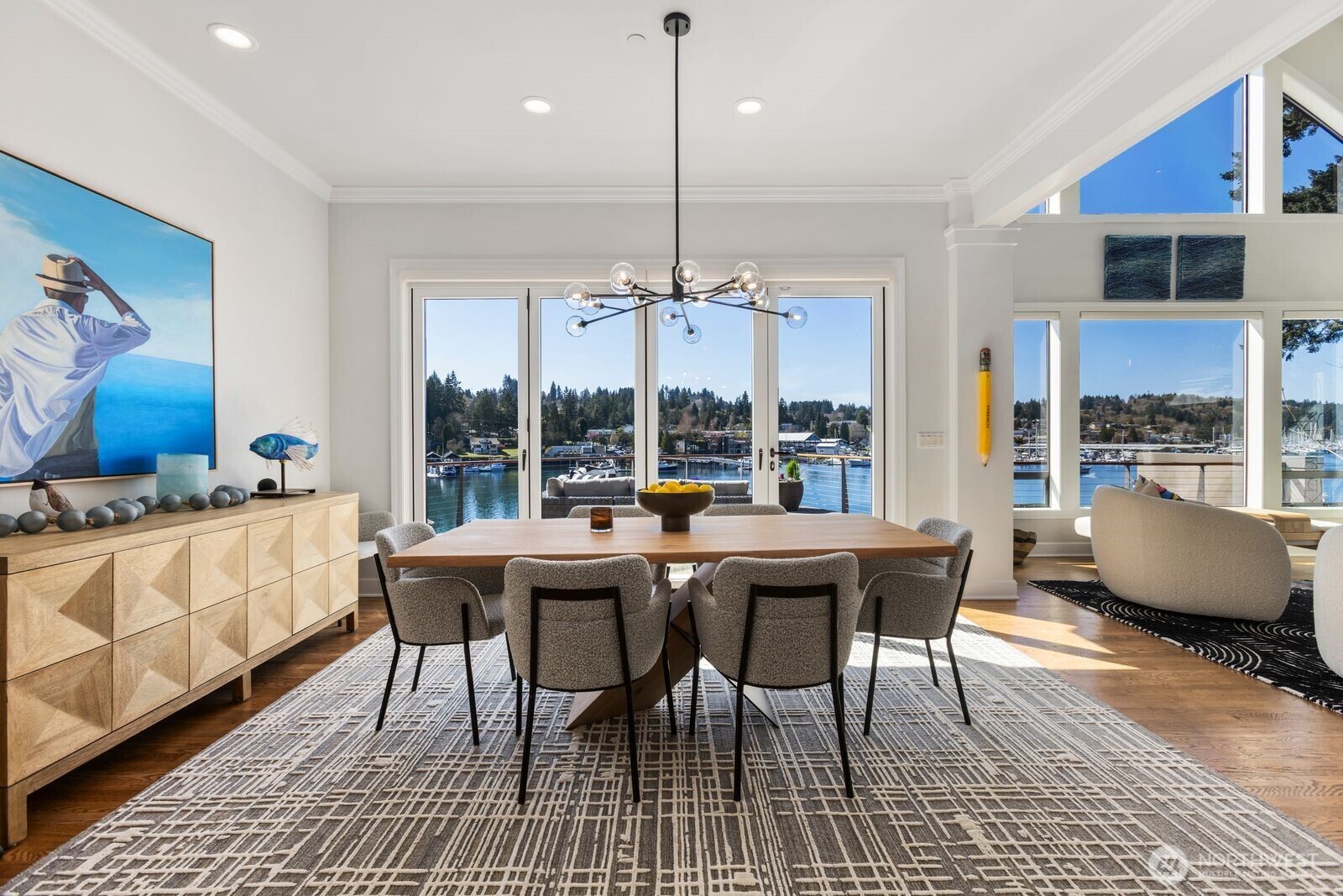 This stunning NW Contemporary waterfront retreat, perfectly positioned along the coveted shores of Gig Harbor Bay. Blending timeless design with effortless luxury, this exceptional 4-bedroom residence offers 50ft of low-bank waterfront & an unparalleled connection to the vibrant maritime lifestyle just beyond your patio. Boating enthusiasts will appreciate not one, but two docks—a 44ft shared dock & a 34ft private dock—ideal for accommodating your yacht, sailboat, or wend watercraft. Here, the harbor truly becomes an extension of your home, where morning coffee pairs with gentle waves & evenings are framed by glowing sunsets over the water. Inside, walls of windows capture sweeping 180-degree harbor views, filling every space w/ natural light & a sense of serenity. The main-level primary suite is a private sanctuary, featuring breathtaking views, walk-in closet, & a beautifully remodeled bath complete with radiant heated floors, an elegant shower, & a freestanding soaking tub. Designed for both comfort and entertaining, the home continues to impress on the lower level with a generous family room anchored by a cozy gas fireplace, as well as a temperature-controlled wine room—perfect for collectors and don't miss the over sized garage. A stylishly updated ¾ bath adds convenience and flexibility for guests. This is more than a home—it’s a lifestyle. Experience the charm & beauty of waterfront living in the PNW. Move-in ready ~ just bring your suitcases. Selling fully furnished!