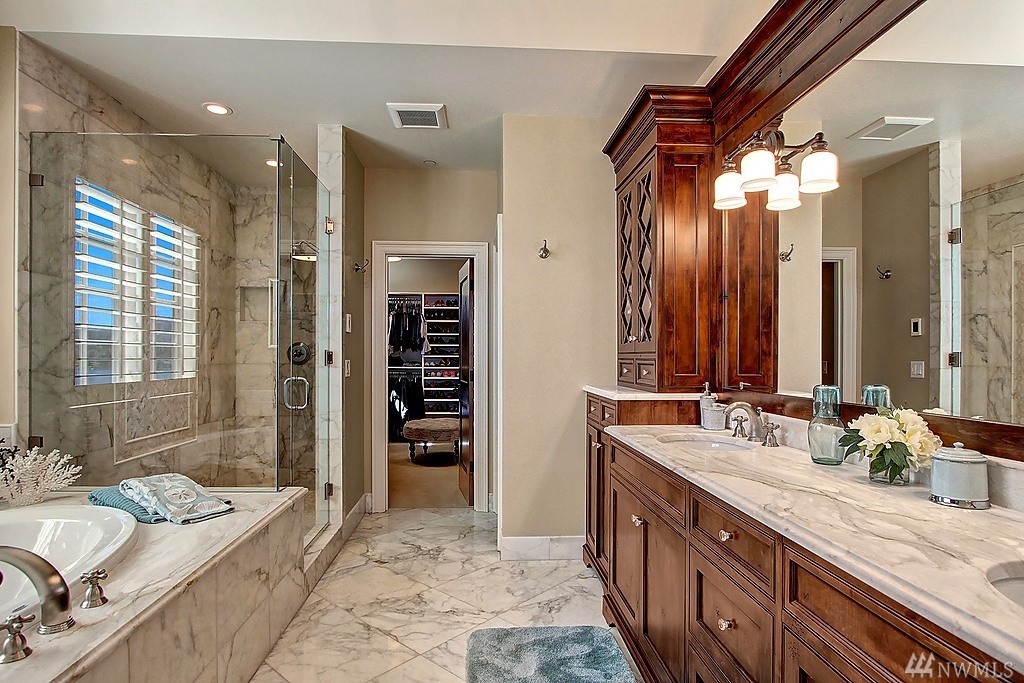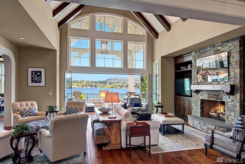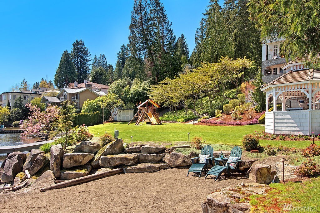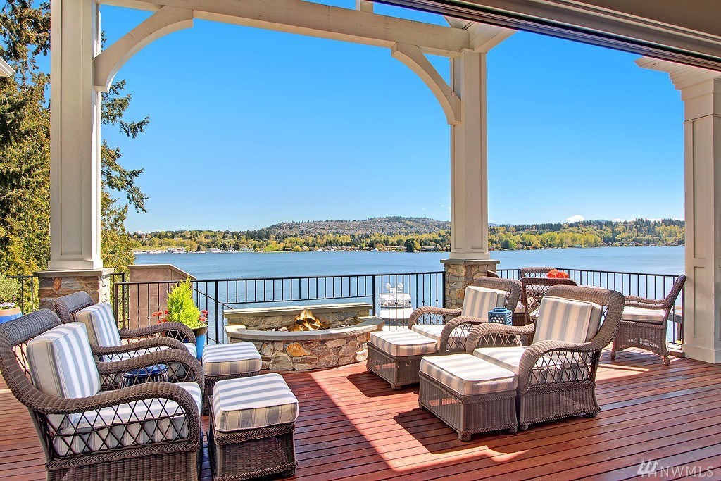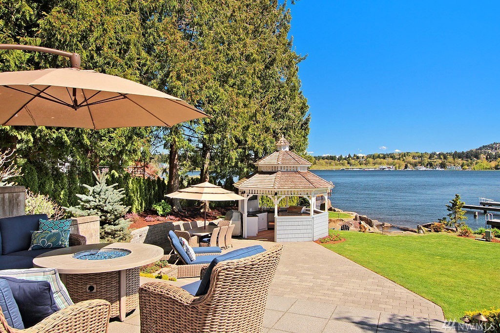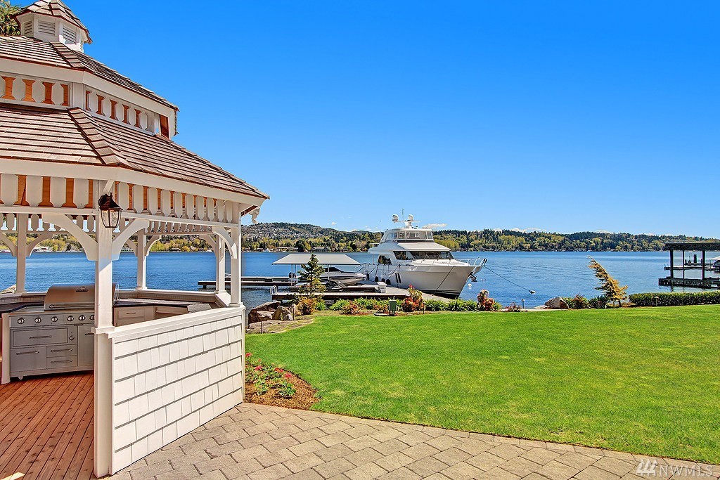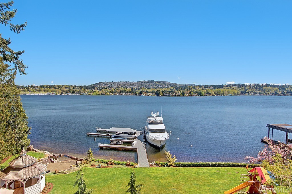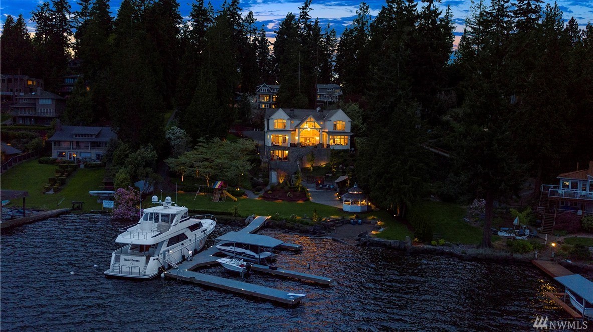 An Exceptional Beachside Estate has come available! 2 tax parcels, 1.04 acres, a sprawling lawn, coveted sandy beach and 150 ft of Prime Northend Wtfrnt. A Dramatic Great Room Concept w/ commanding Lk and Mt Rainier views. Entertain in your Epicureans Ktchn and flow out the Nano doors to gather at the built in firepit. Richly appointed Den. Luxurious Mster suite reminiscent of a 5 star resort. Lower level w/media, bonus and wine cellar. Fully equipped cabana. Big dock w/3 slips, 4 lfts + yacht moorage.